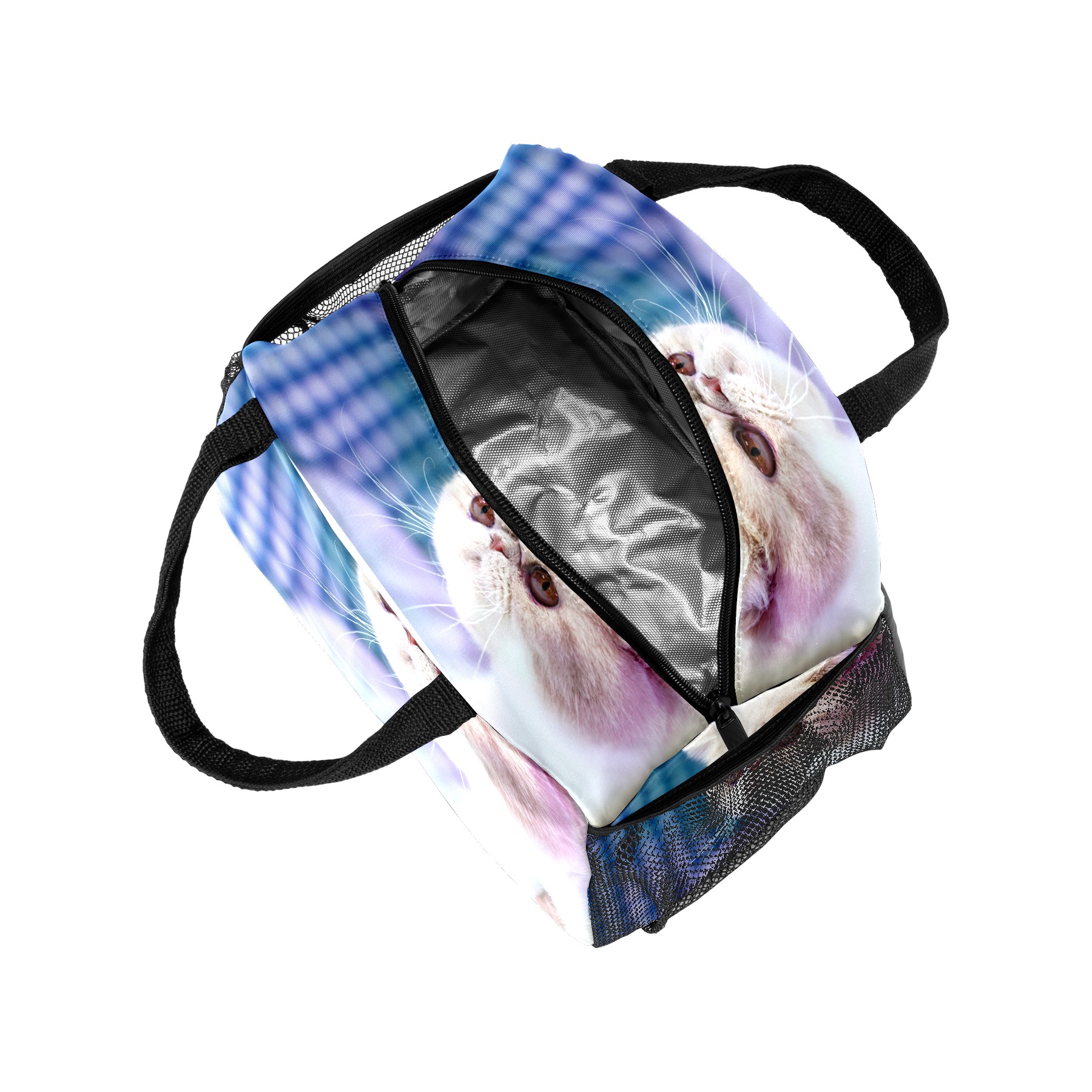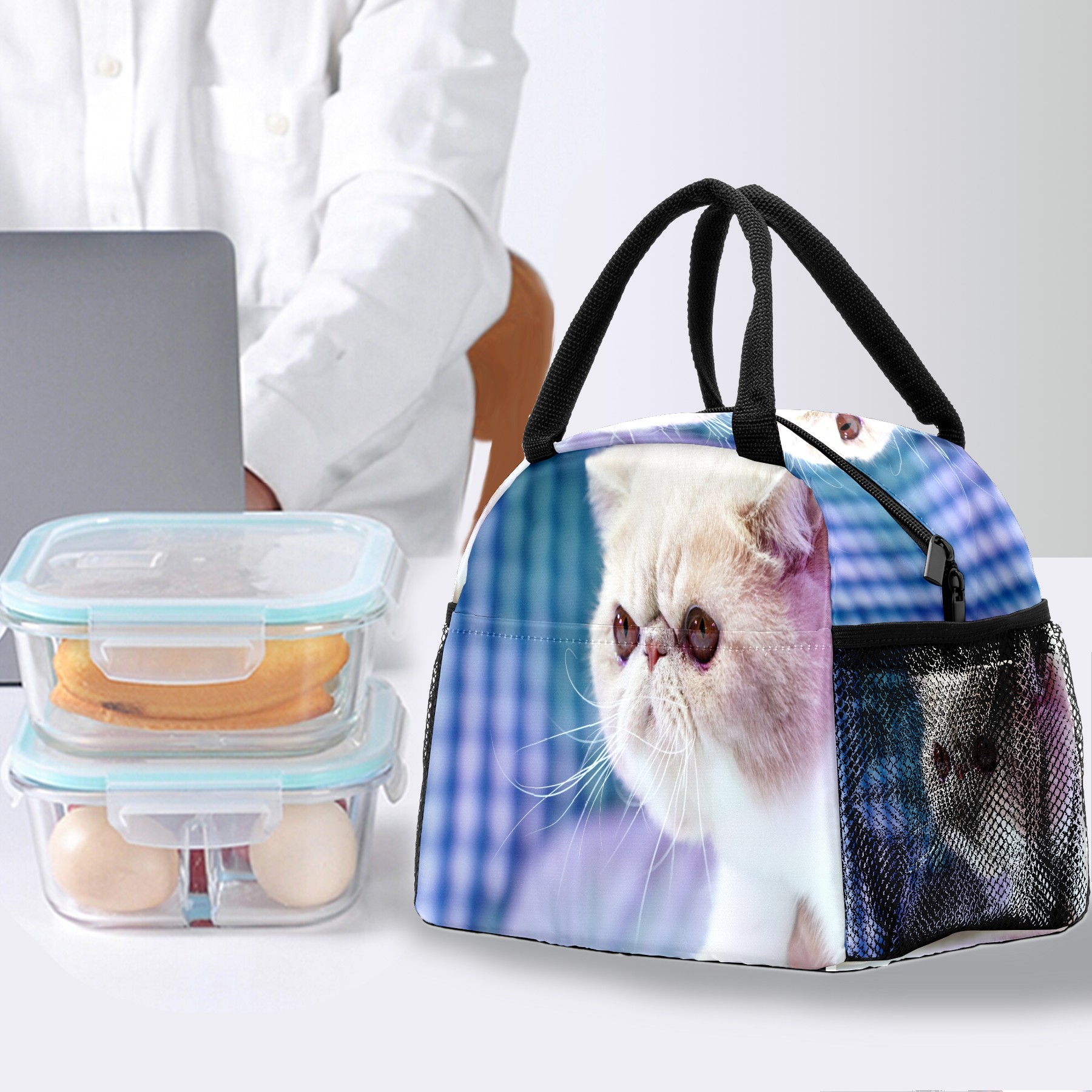 Lunch Bag for Women Men, Funny Cate Insulated Reusable Lunch Box Thermal Cooler Tote Bag for Work Picnic Hiking Travel Beach