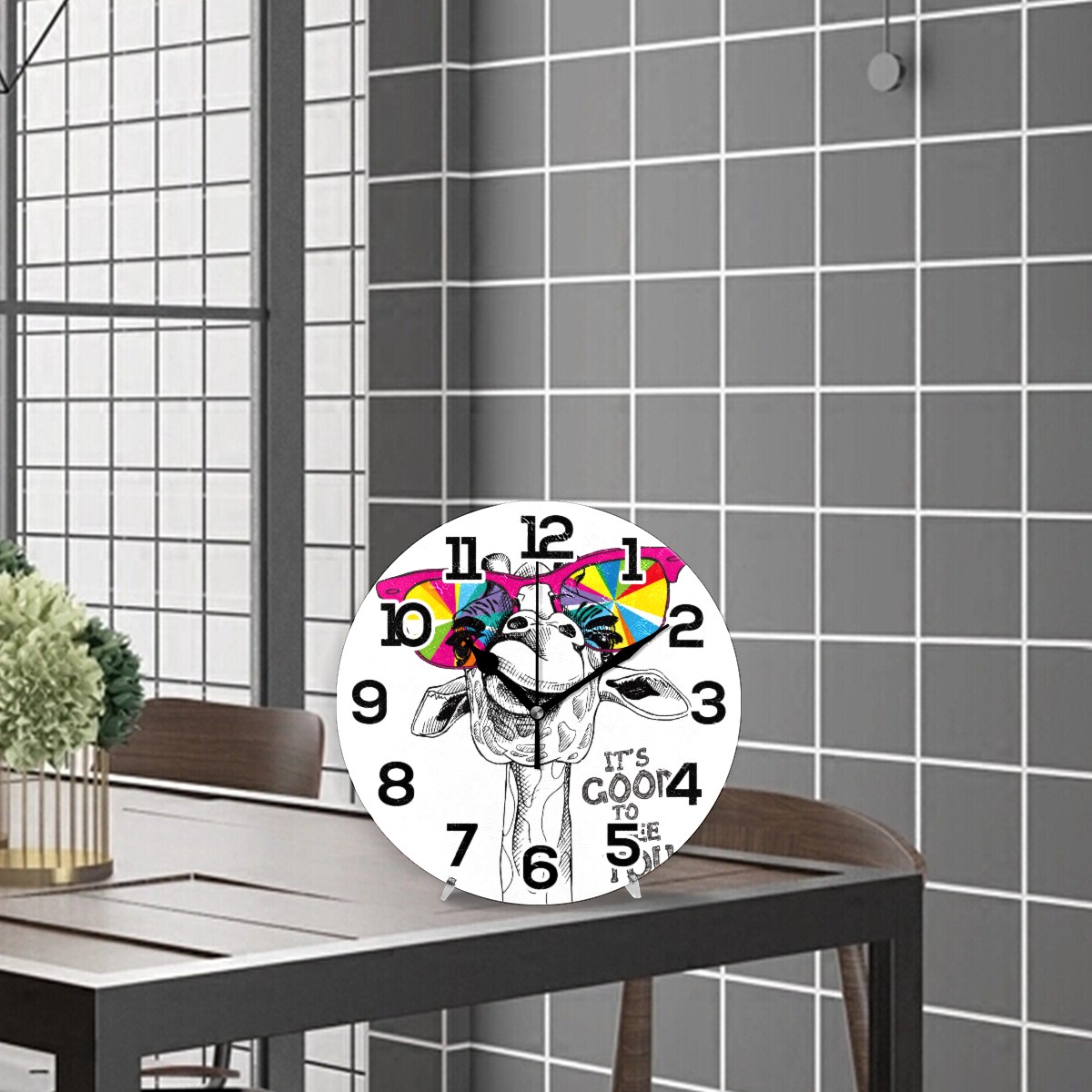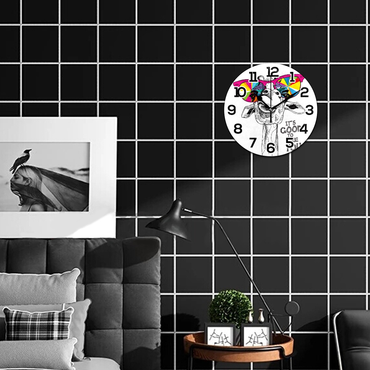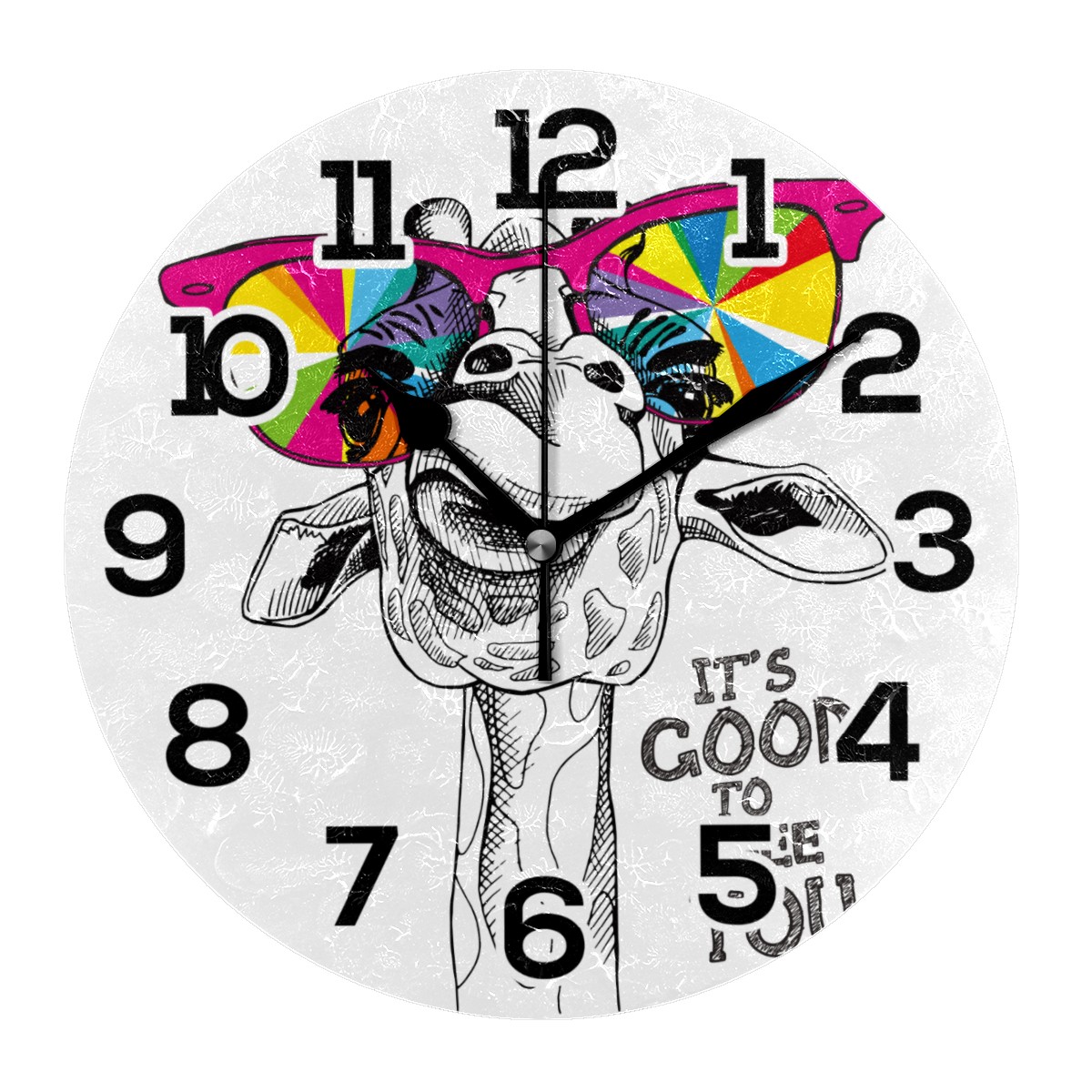 Funny Deer With Colorful Glasses Clock Wall Decor Acrylic Decorative Round Battery Operated Wall Clocks for Home Bedroom Living Room Decor Silent Non Ticking