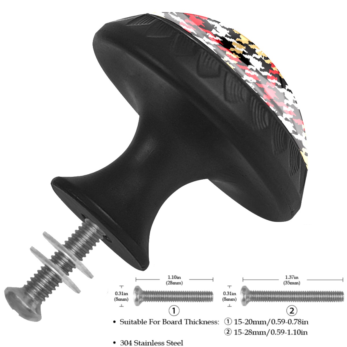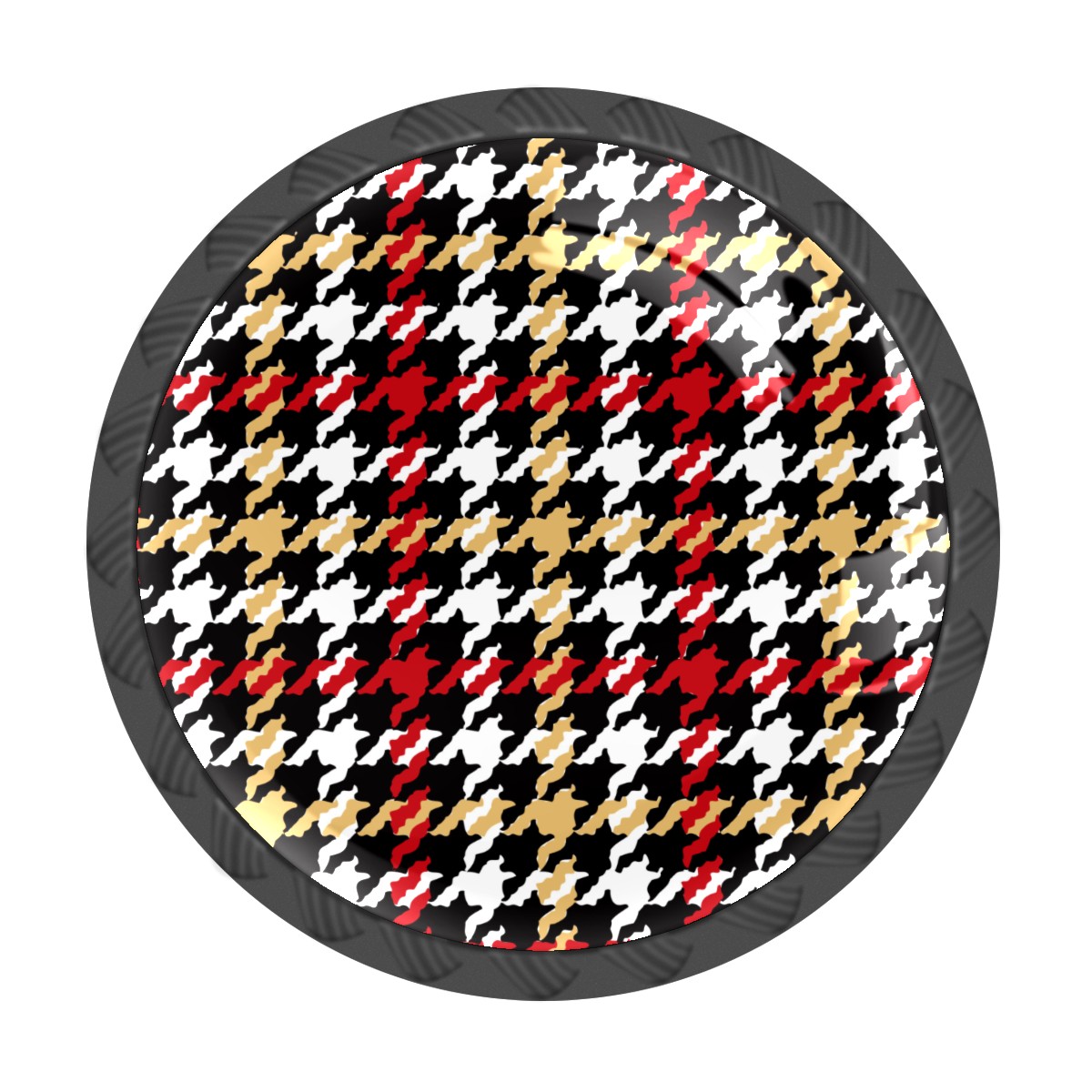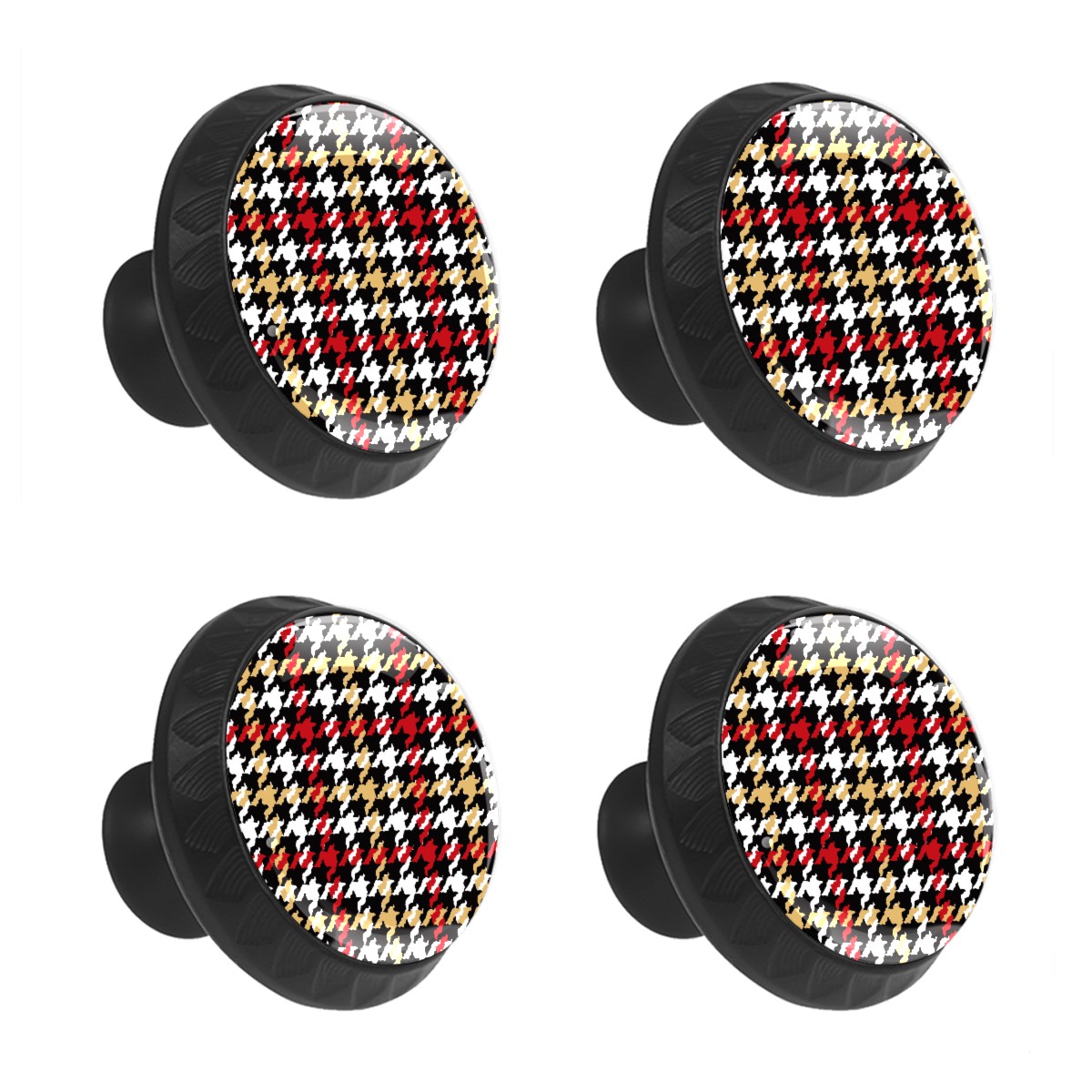 Cabinet Drawer Knobs Set of 4 Houndstooth Red Black White Yellow Cabinet Furniture Knobs Drawer Pulls Handle Crystal Glass Round Cupboard Knobs with Screws for Cabinets Kitchen Dresser Wardrobe DIY