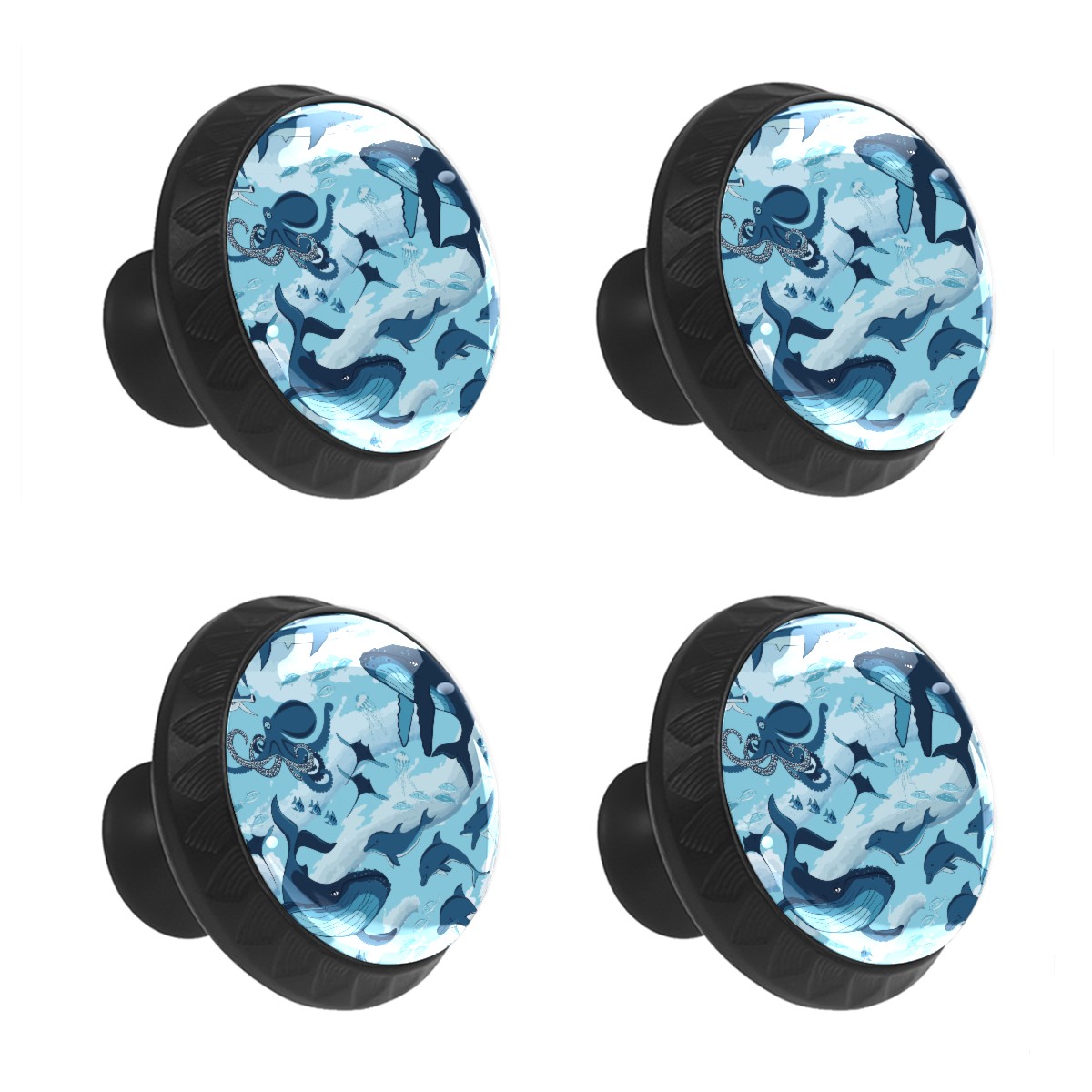 Cabinet Drawer Knobs Set of 4 Navy Sea Wave Dolphin Shark Octopus Cabinet Furniture Knobs Drawer Pulls Handle Crystal Glass Round Cupboard Knobs with Screws for Cabinets Kitchen Dresser Wardrobe DIY