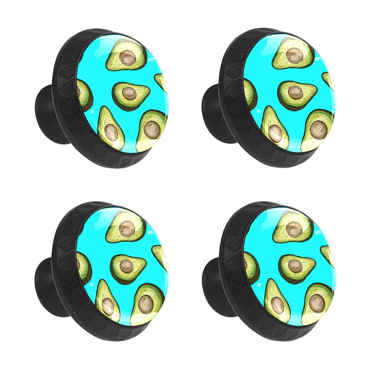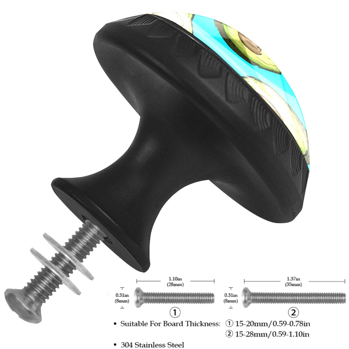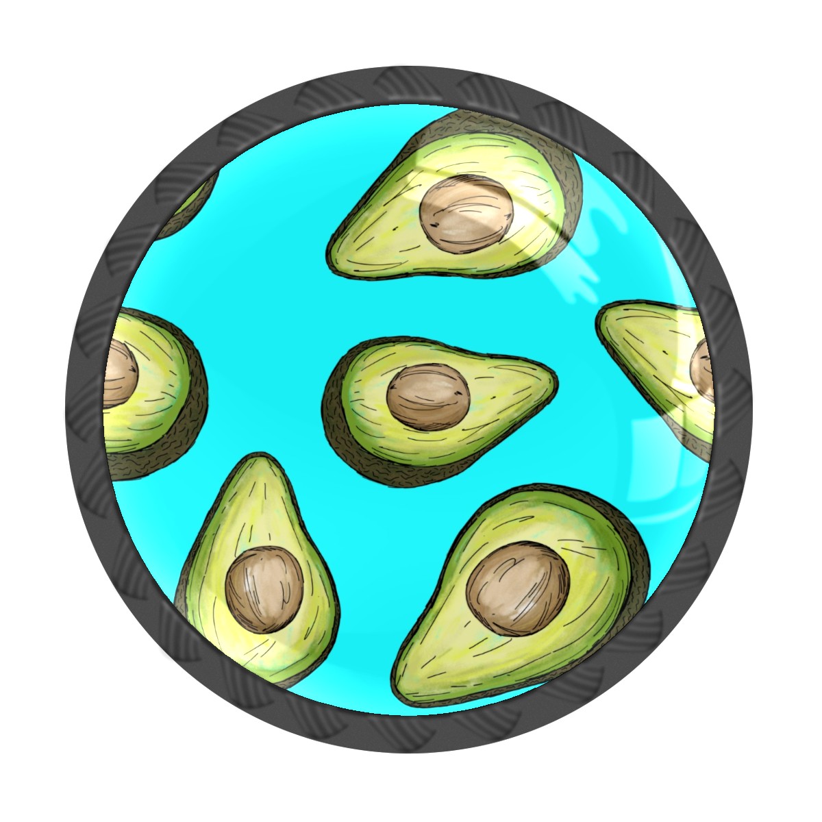 Cabinet Drawer Knobs Set of 4 Fruit Avocado Pattern Blue Background Cabinet Furniture Knobs Drawer Pulls Handle Crystal Glass Round Cupboard Knobs with Screws for Cabinets Kitchen Dresser Wardrobe DIY