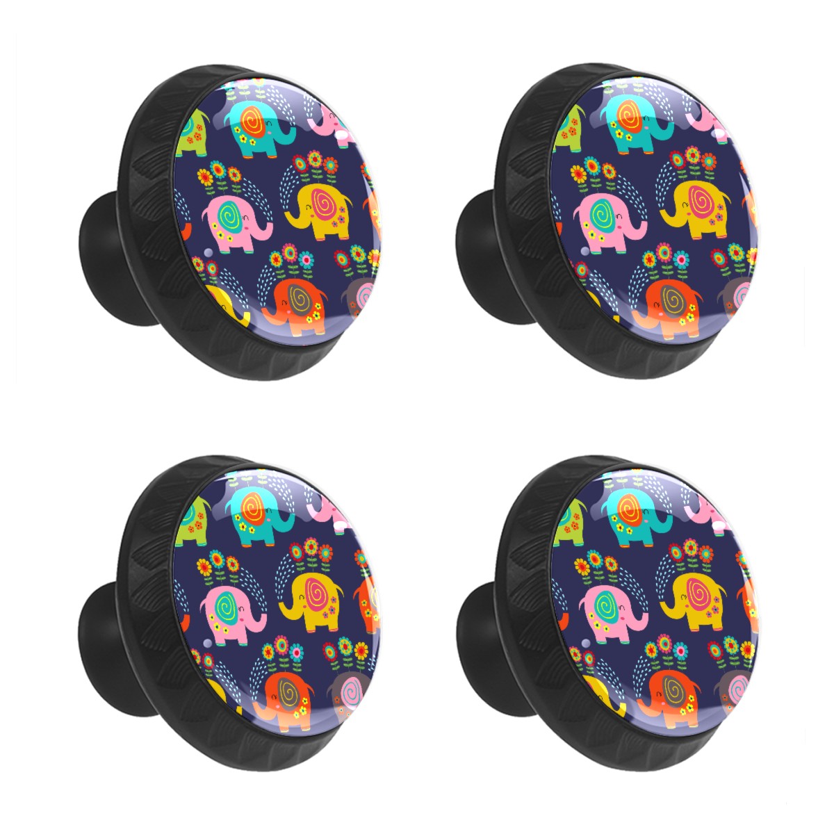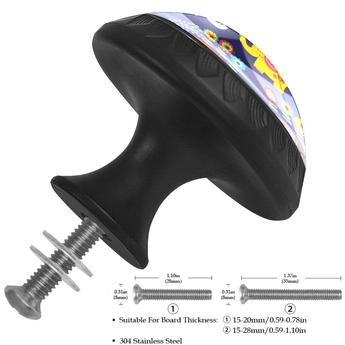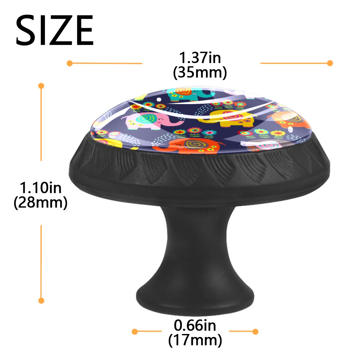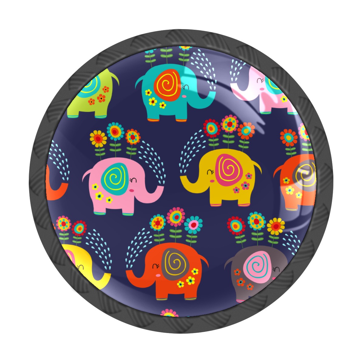 Cabinet Drawer Knobs Set of 4 Elephant Watering Flowers Cartoon Cabinet Furniture Knobs Drawer Pulls Handle Crystal Glass Round Cupboard Knobs with Screws for Cabinets Kitchen Dresser Wardrobe DIY
