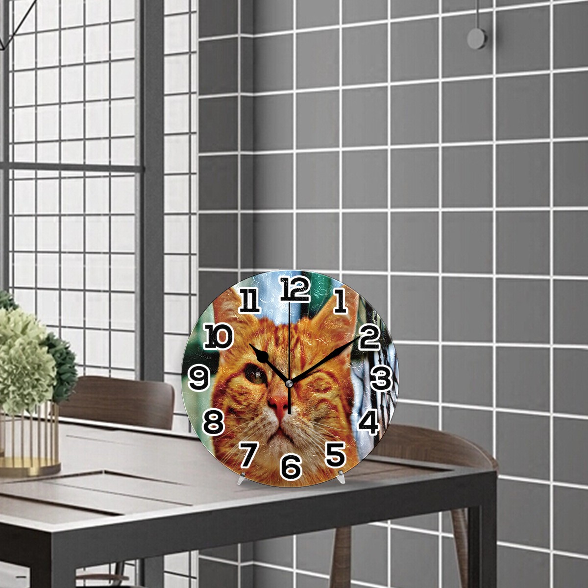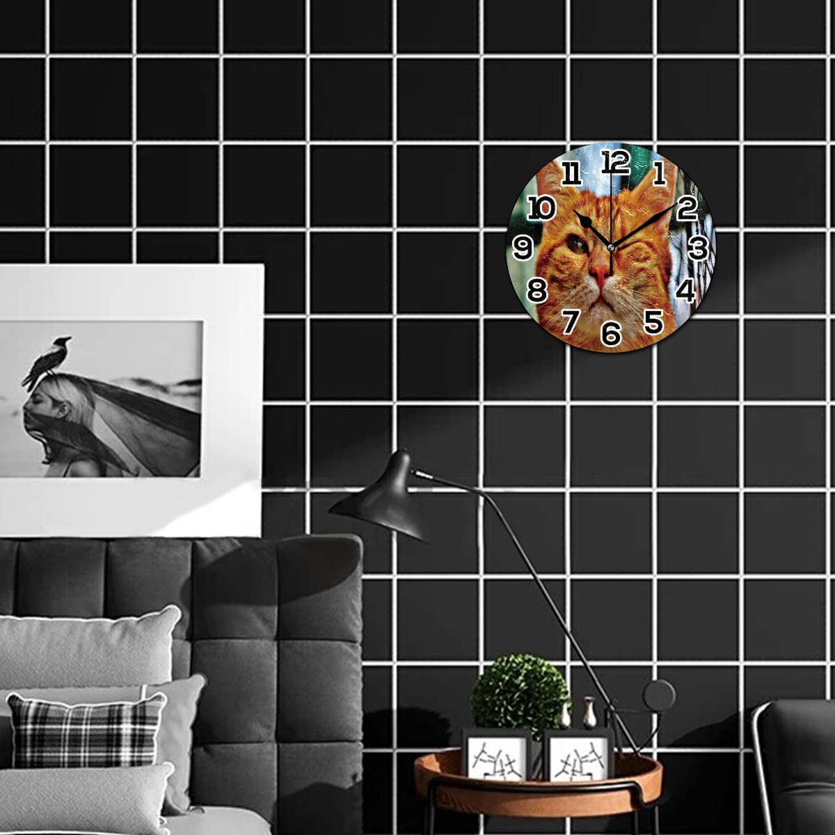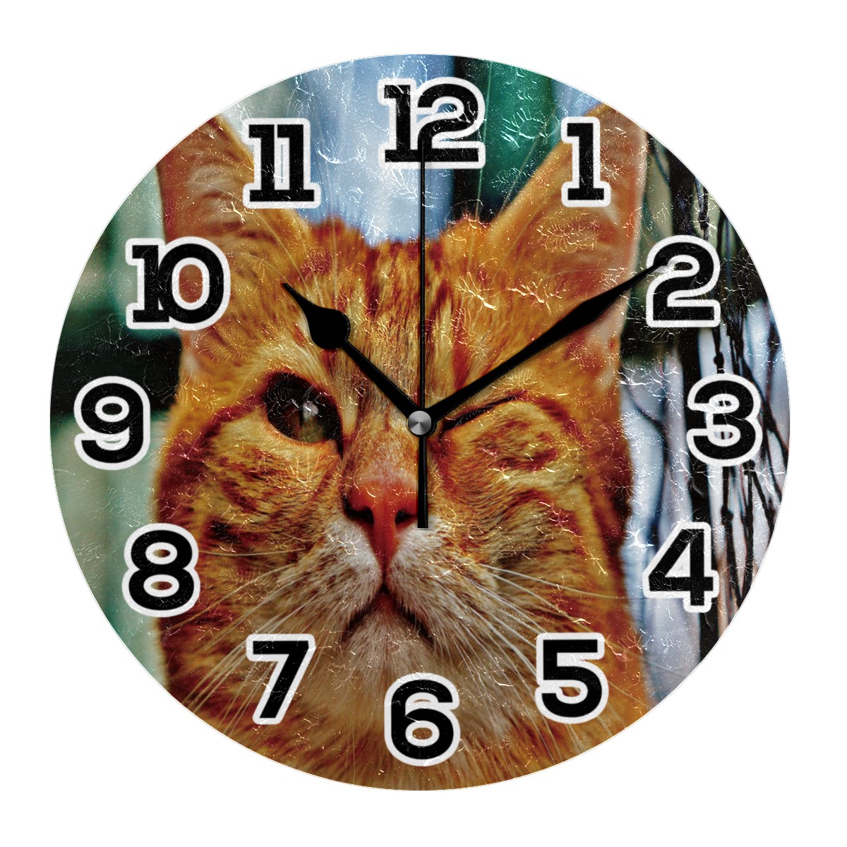 Cute Wink Cat Clock Wall Decor Acrylic Decorative Round Battery Operated Wall Clocks for Home Bedroom Living Room Decor Silent Non Ticking