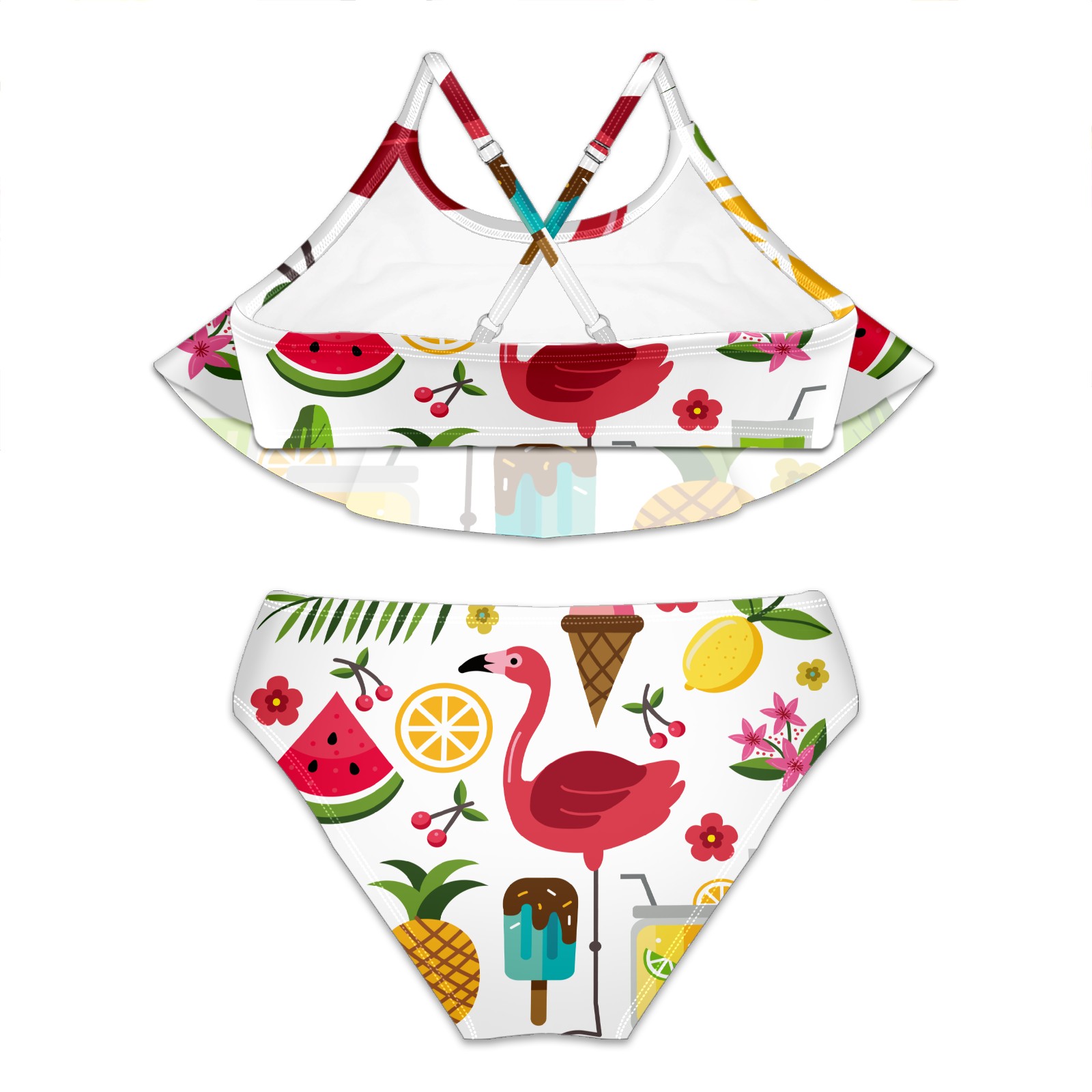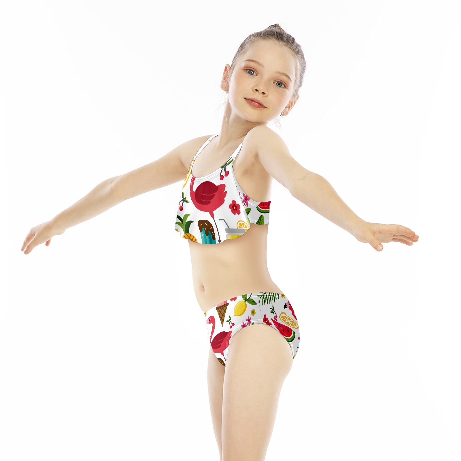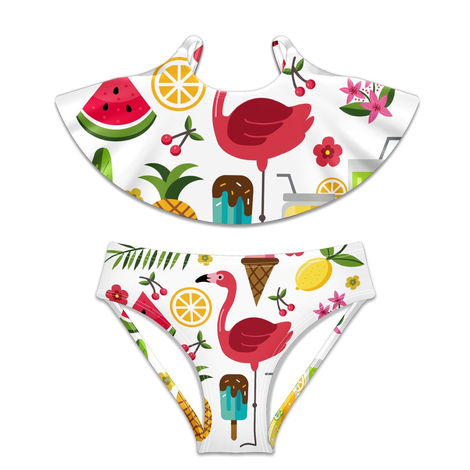 Swimsuits for Girls Two Pieces Bathing Suit Quick Dry Swimwear Summer Fruits Flamingos S