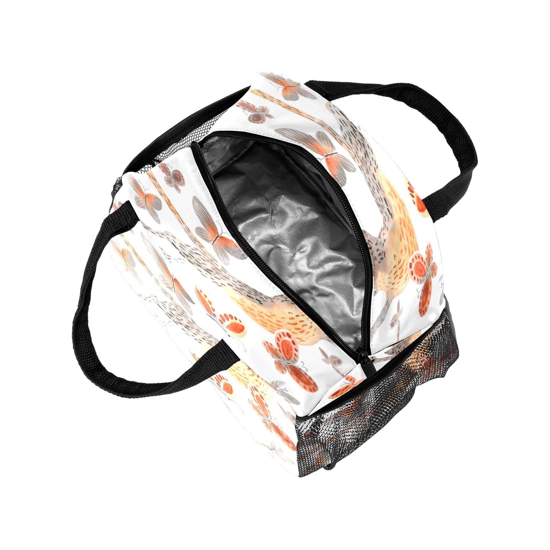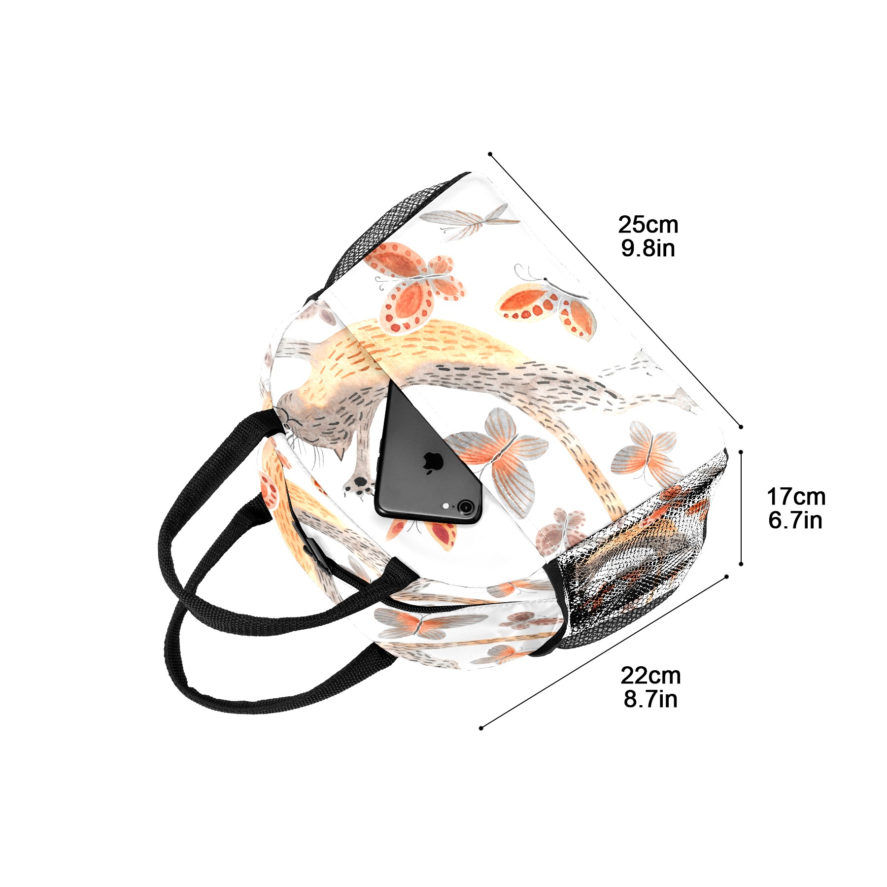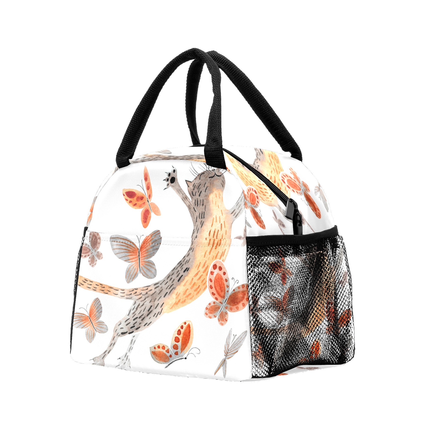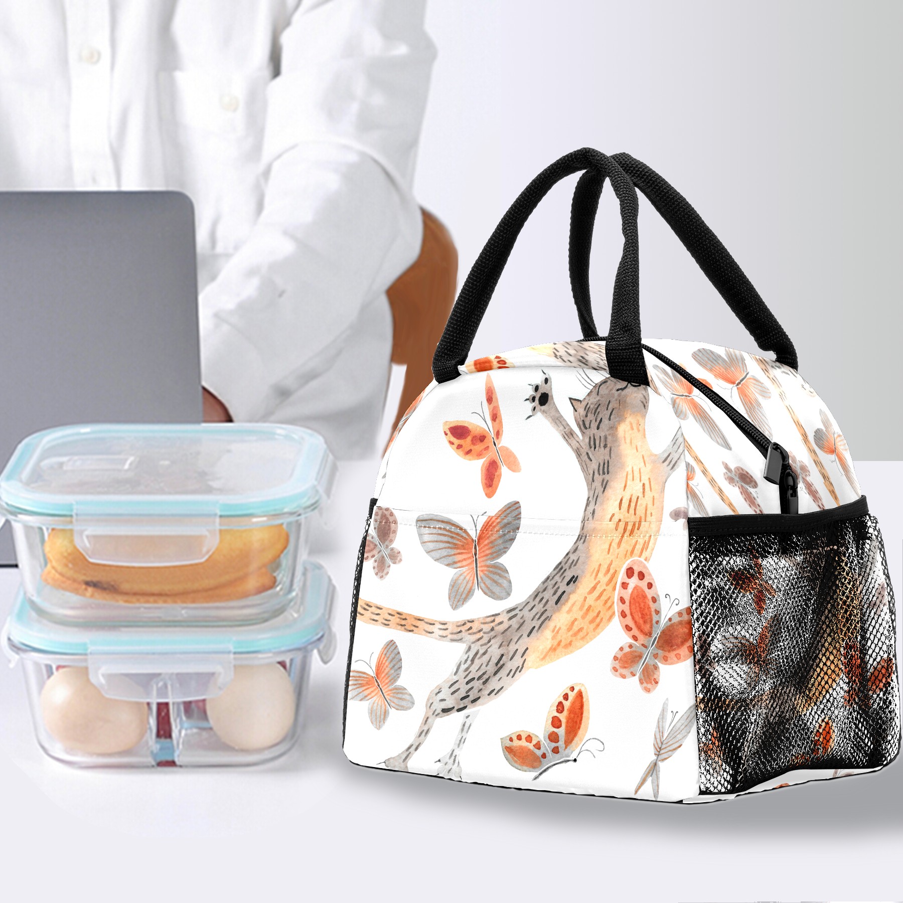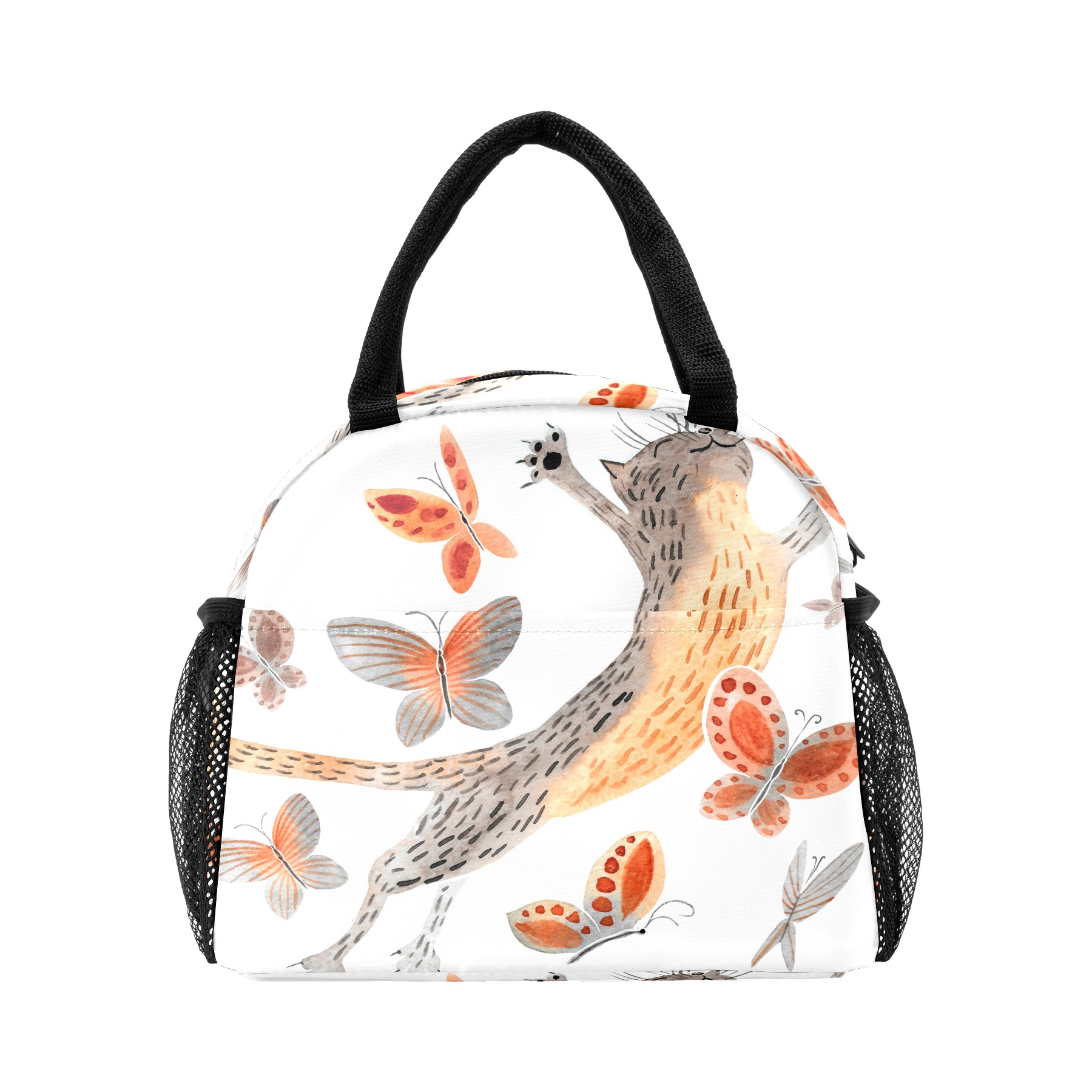 Lunch Bag for Women Men, Funny Cat With Butterfly Insulated Reusable Lunch Box Thermal Cooler Tote Bag for Work Picnic Hiking Travel Beach