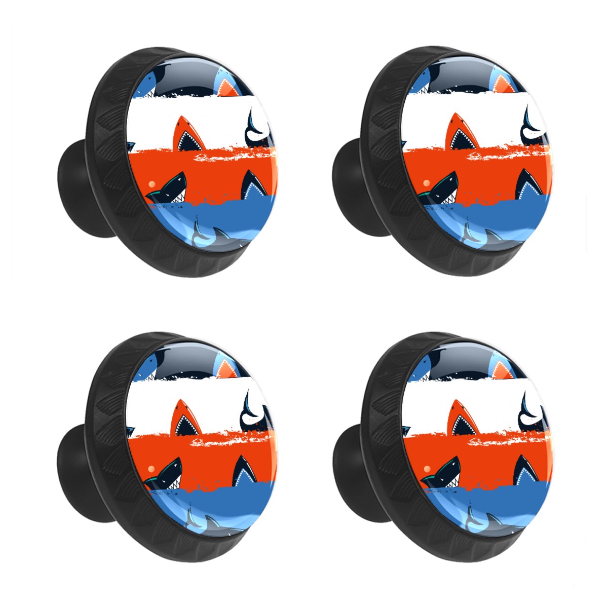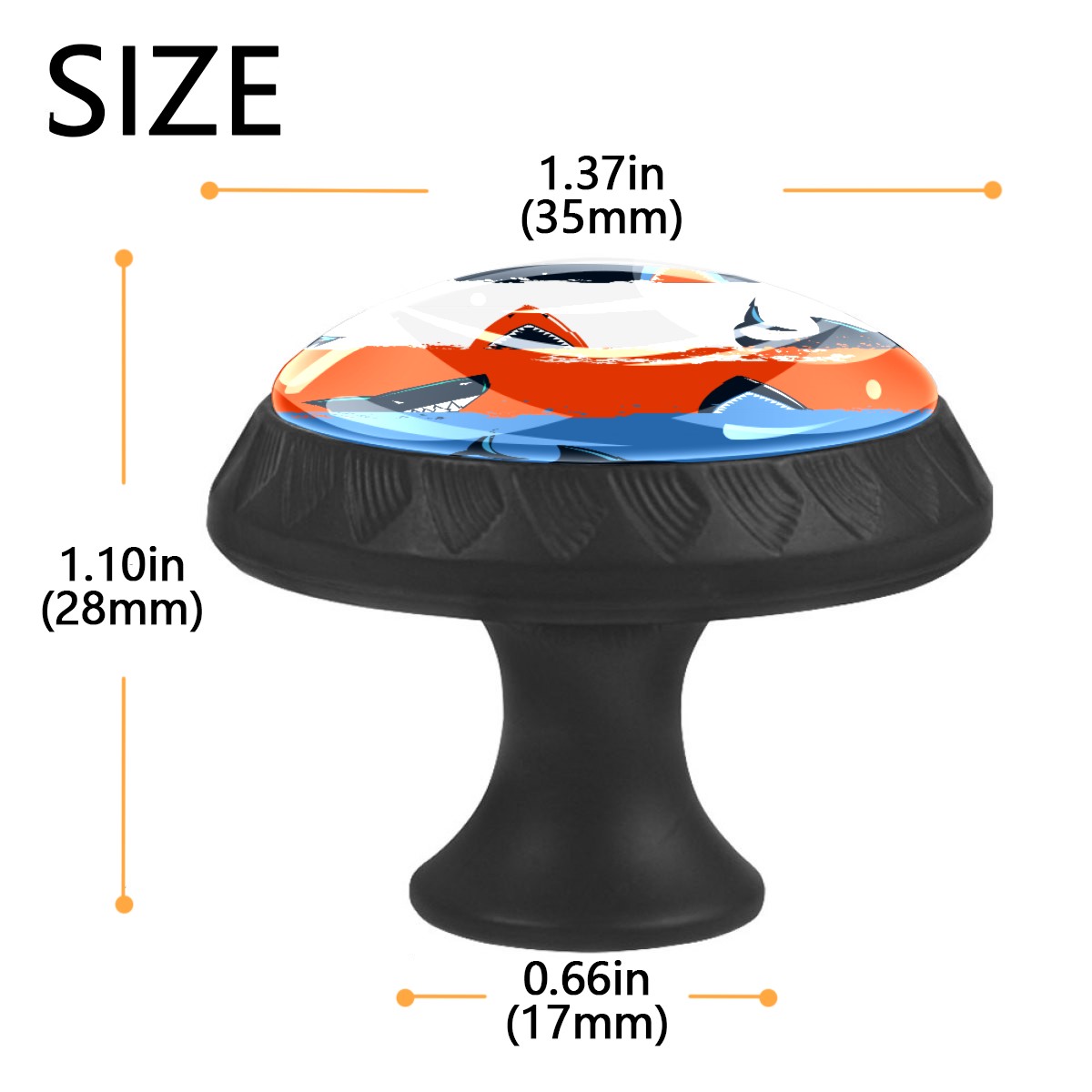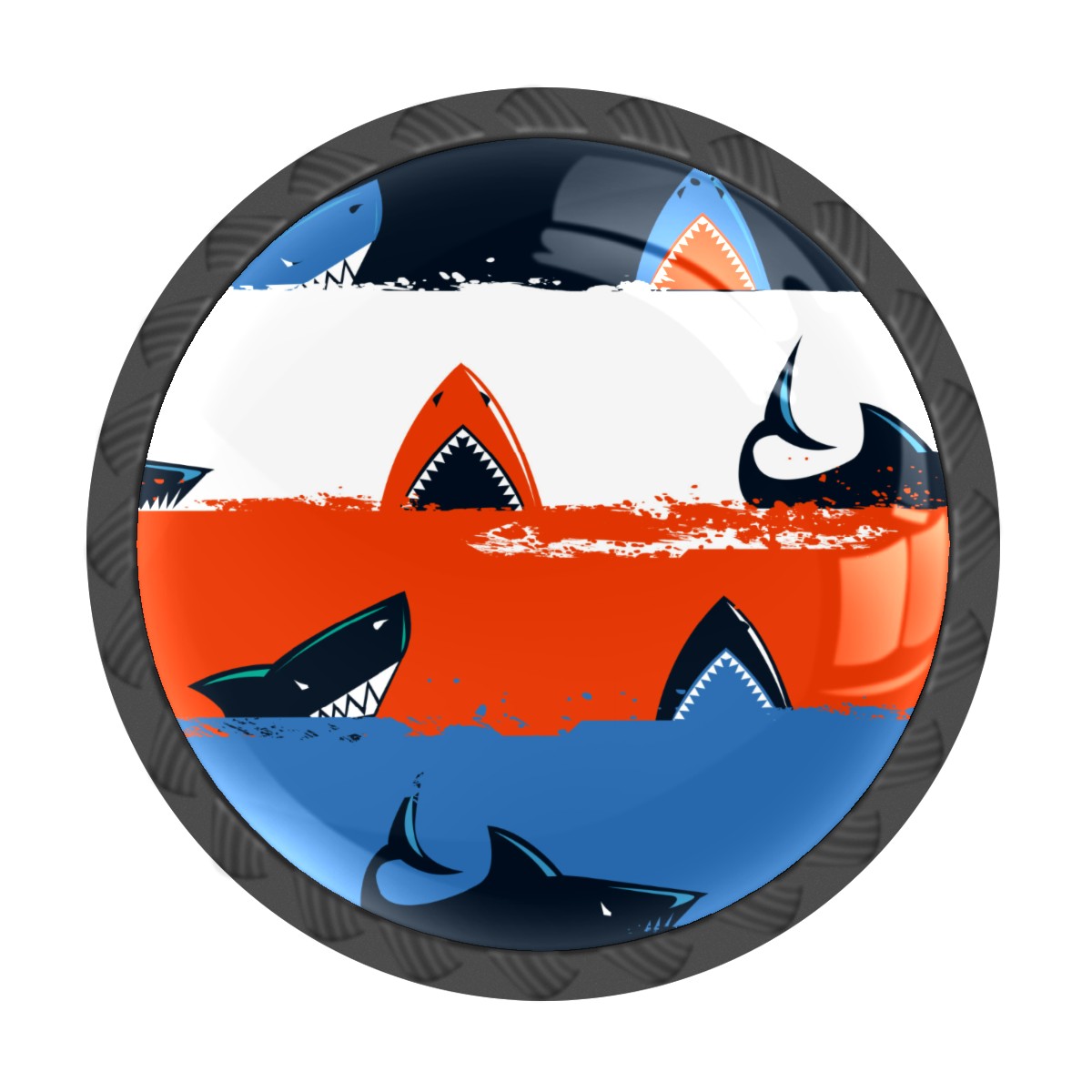 Cabinet Drawer Knobs Set of 4 Blue Orange Shark Pattern Sea Cabinet Furniture Knobs Drawer Pulls Handle Crystal Glass Round Cupboard Knobs with Screws for Cabinets Kitchen Dresser Wardrobe DIY