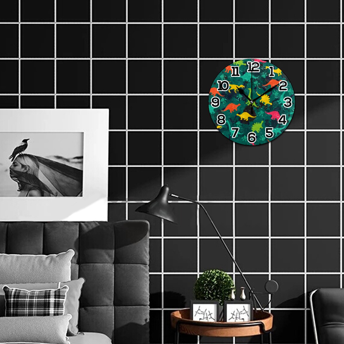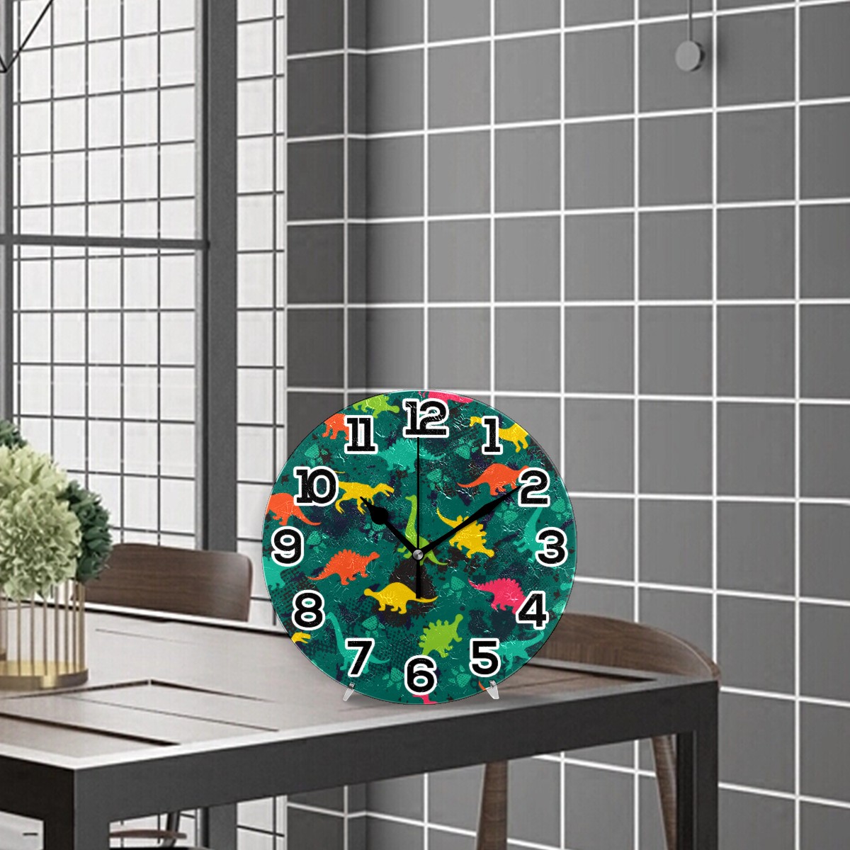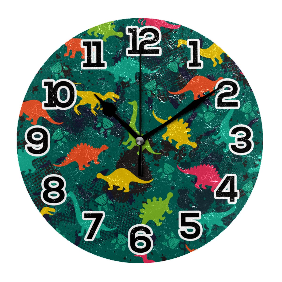 Dinosaur Footprint Pattern Clock Wall Decor Acrylic Decorative Round Battery Operated Wall Clocks for Home Bedroom Living Room Decor Silent Non Ticking