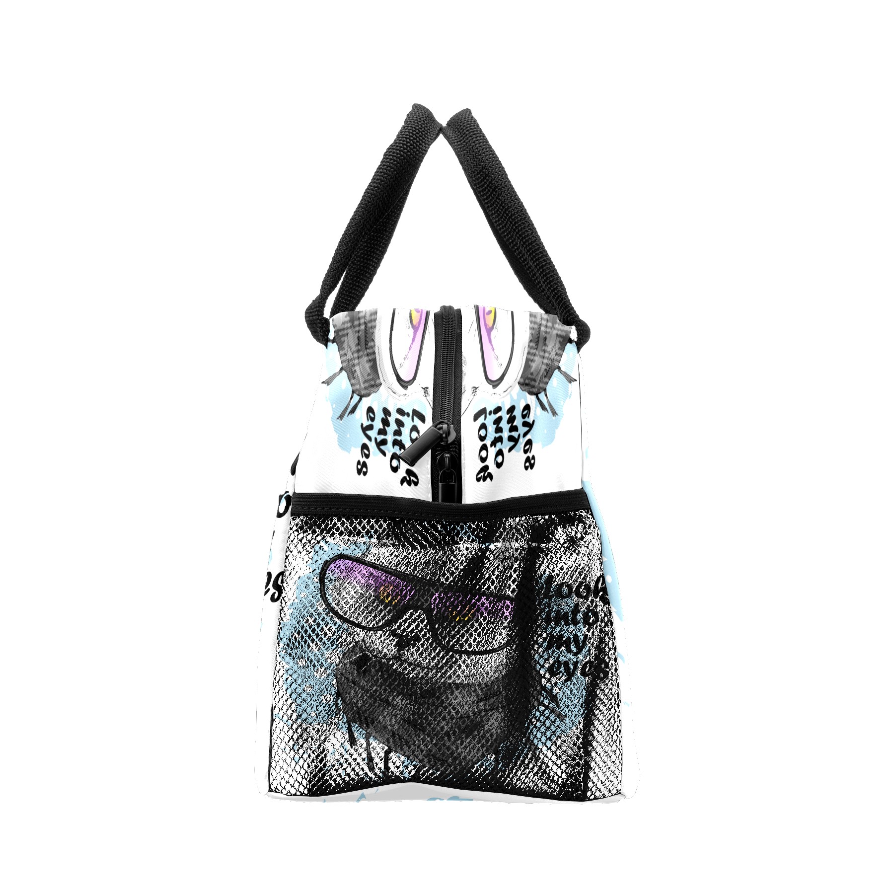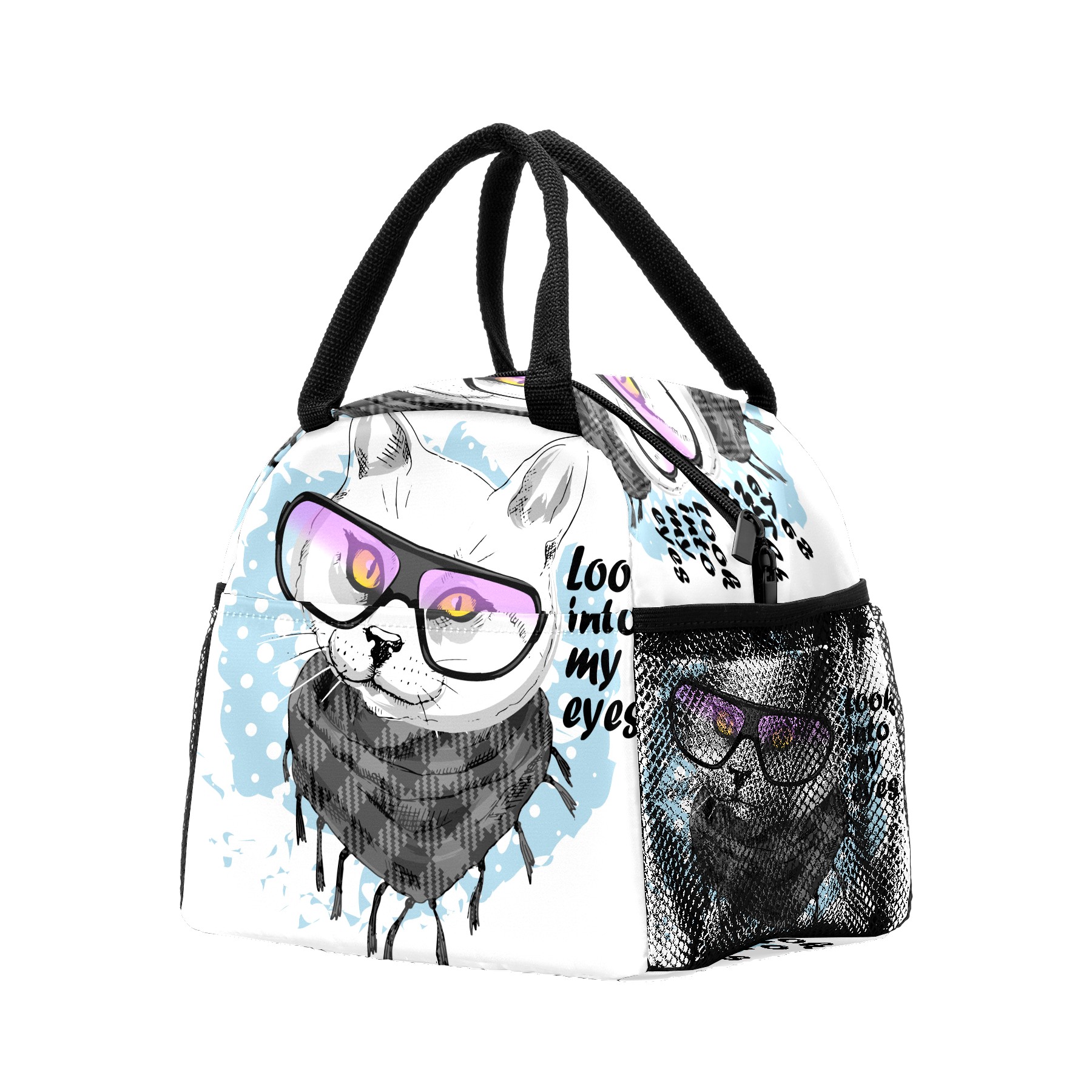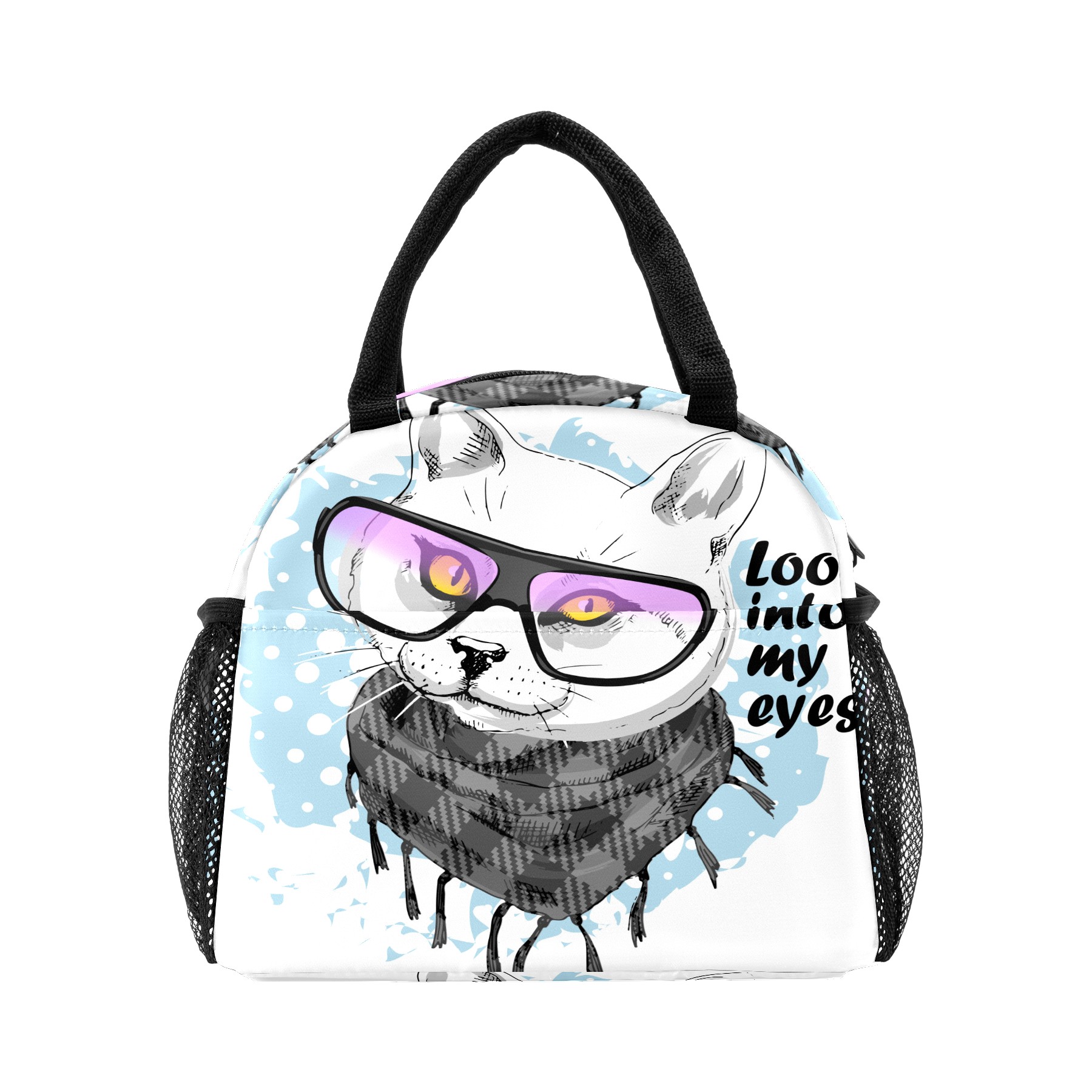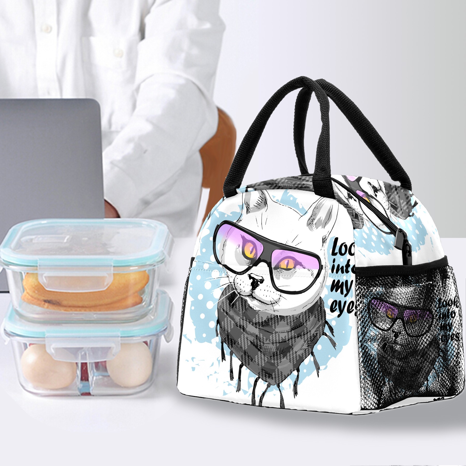 Lunch Bag for Women Men, Funny Cat With Scarf Glasses Insulated Reusable Lunch Box Thermal Cooler Tote Bag for Work Picnic Hiking Travel Beach