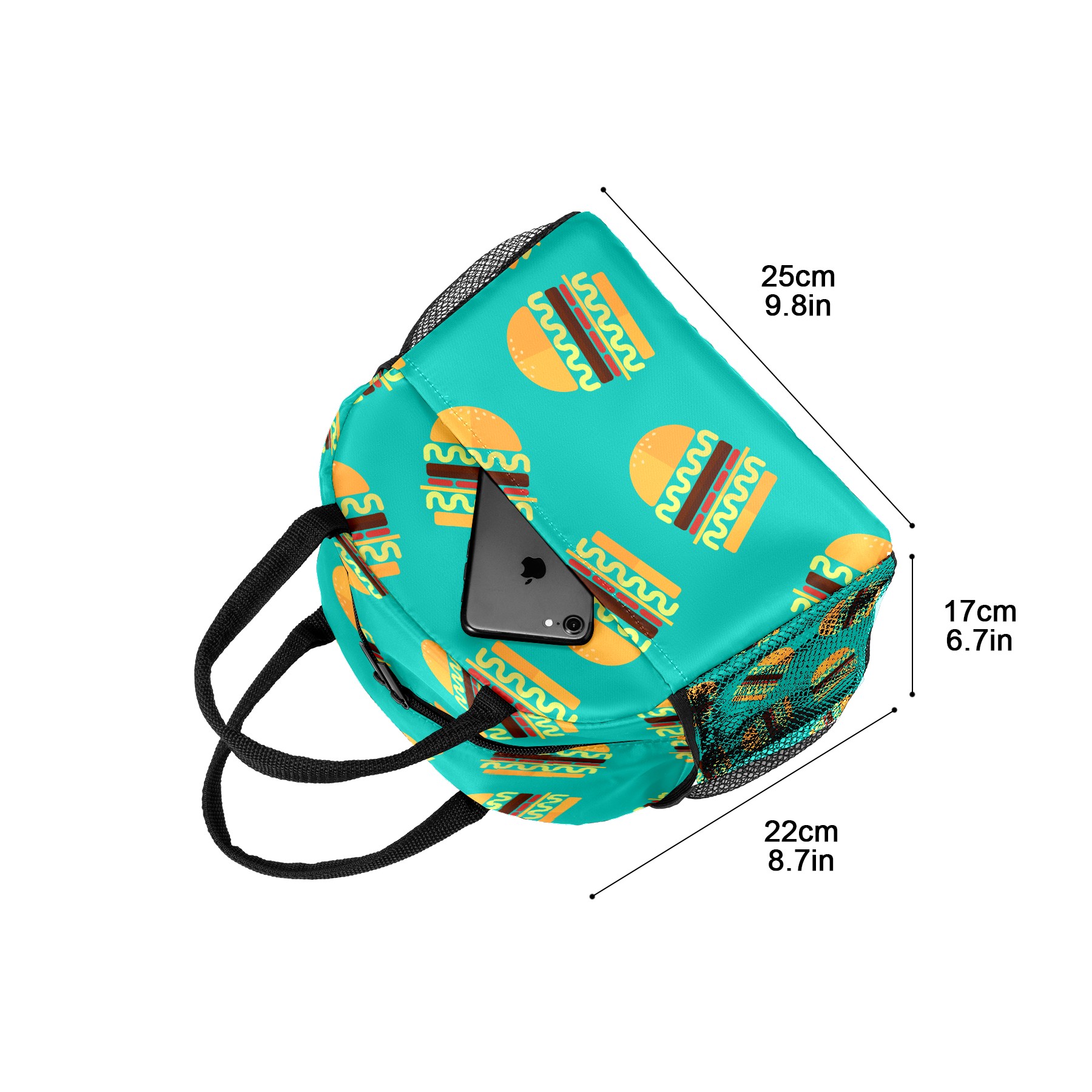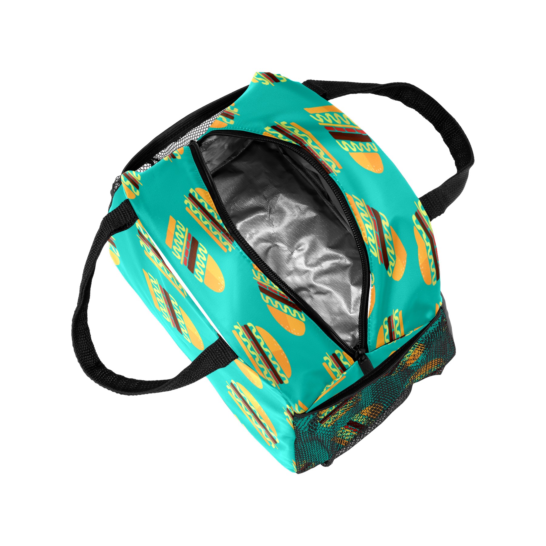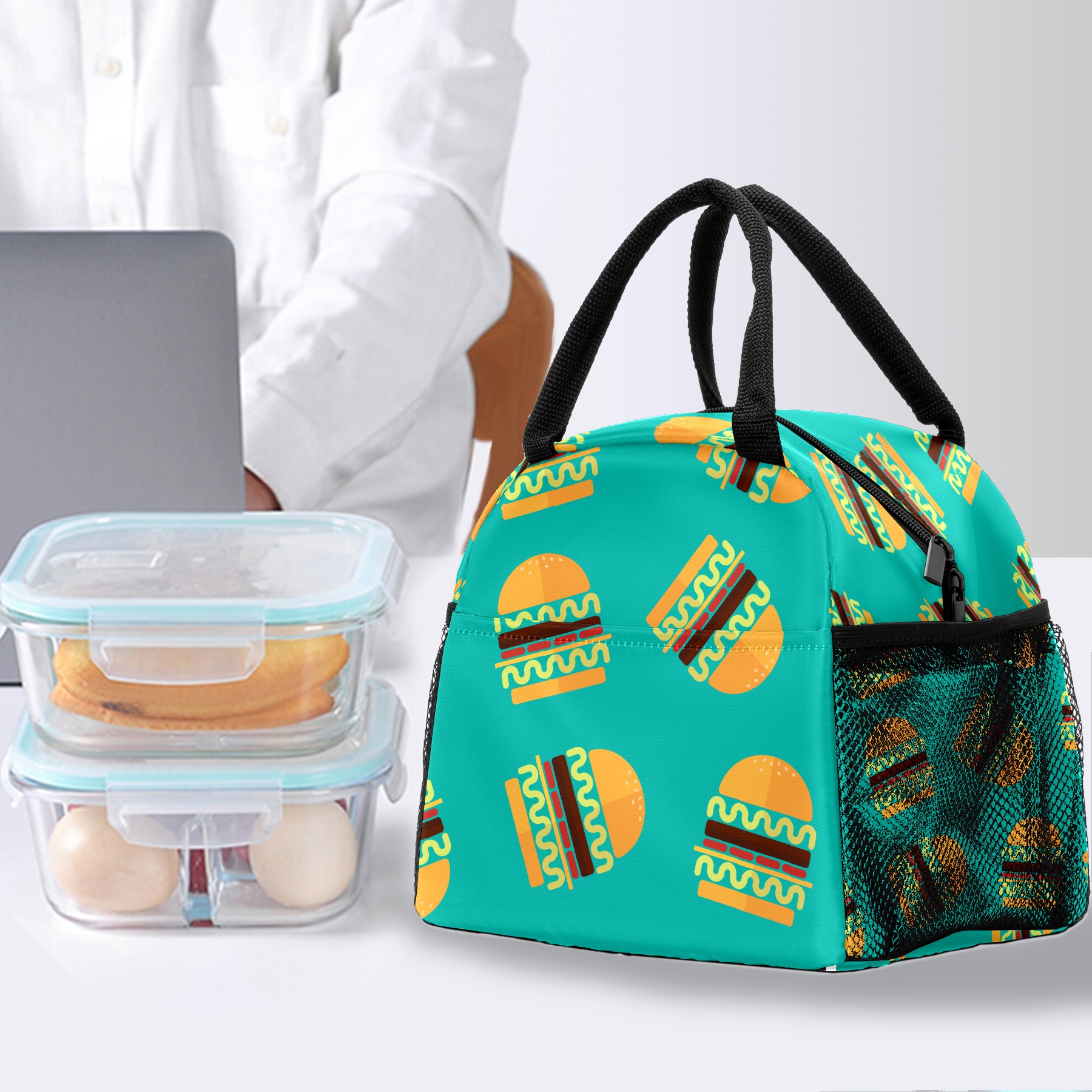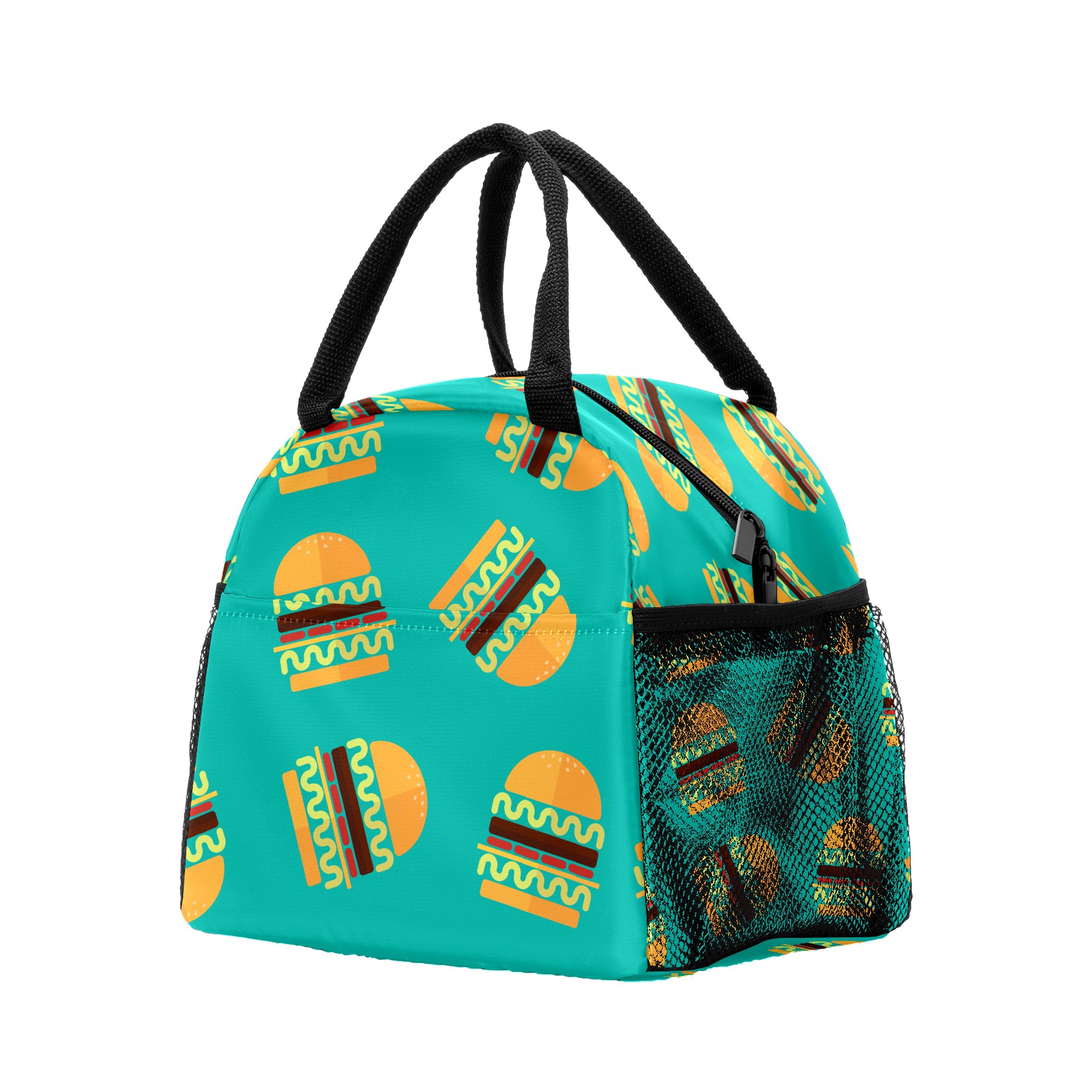 Lunch Bag for Women Men, Hamburger Food Pattern Insulated Reusable Lunch Box Thermal Cooler Tote Bag for Work Picnic Hiking Travel Beach