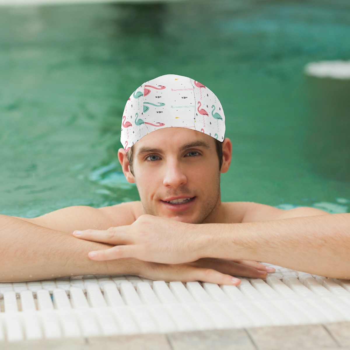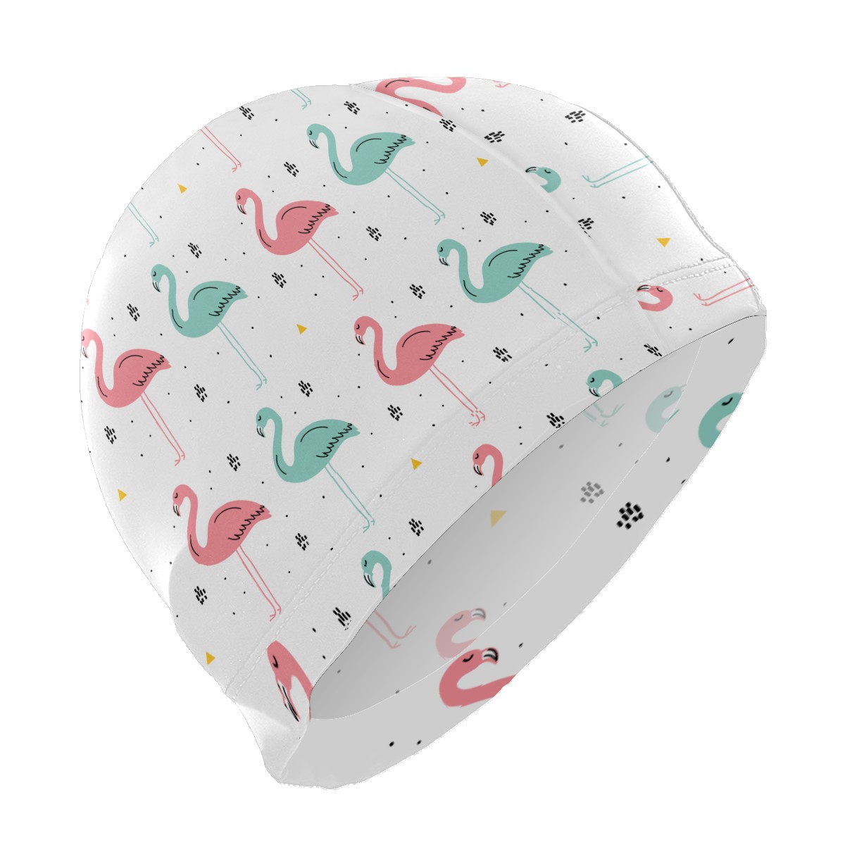 Swim Cap, Polyster High Elasticity Swimming Cap Fit Both Long Hair Short Hair, Green & Red Flamingo Pattern-01 Swim Caps Woman Men Teenagers Non-Waterproof One Size Hat