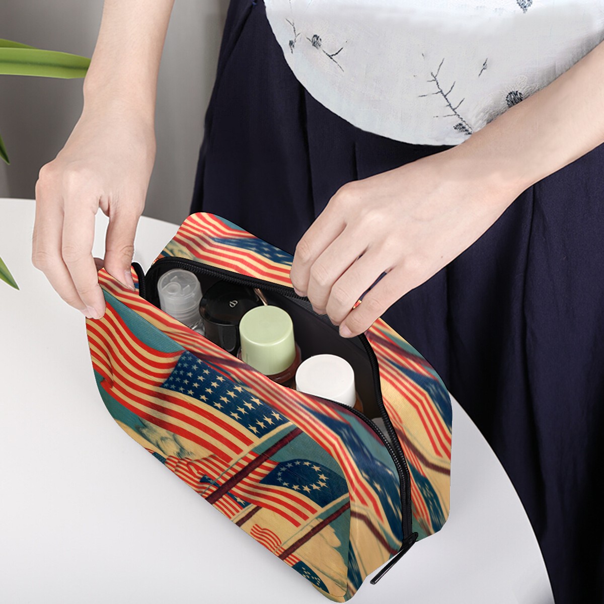 Cosmetic Bag for Women Girls Trave Makeup Bag Toiletry Case Pouch Accessories Organizer Vintage Patriotic American Flag