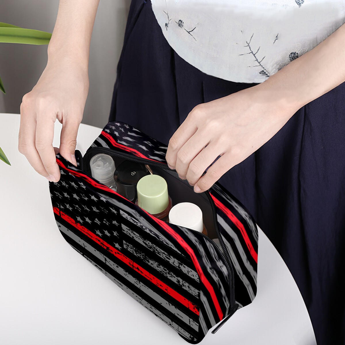Cosmetic Bag for Women Girls Trave Makeup Bag Toiletry Case Pouch Accessories Organizer Vintage Independence Day American Flag