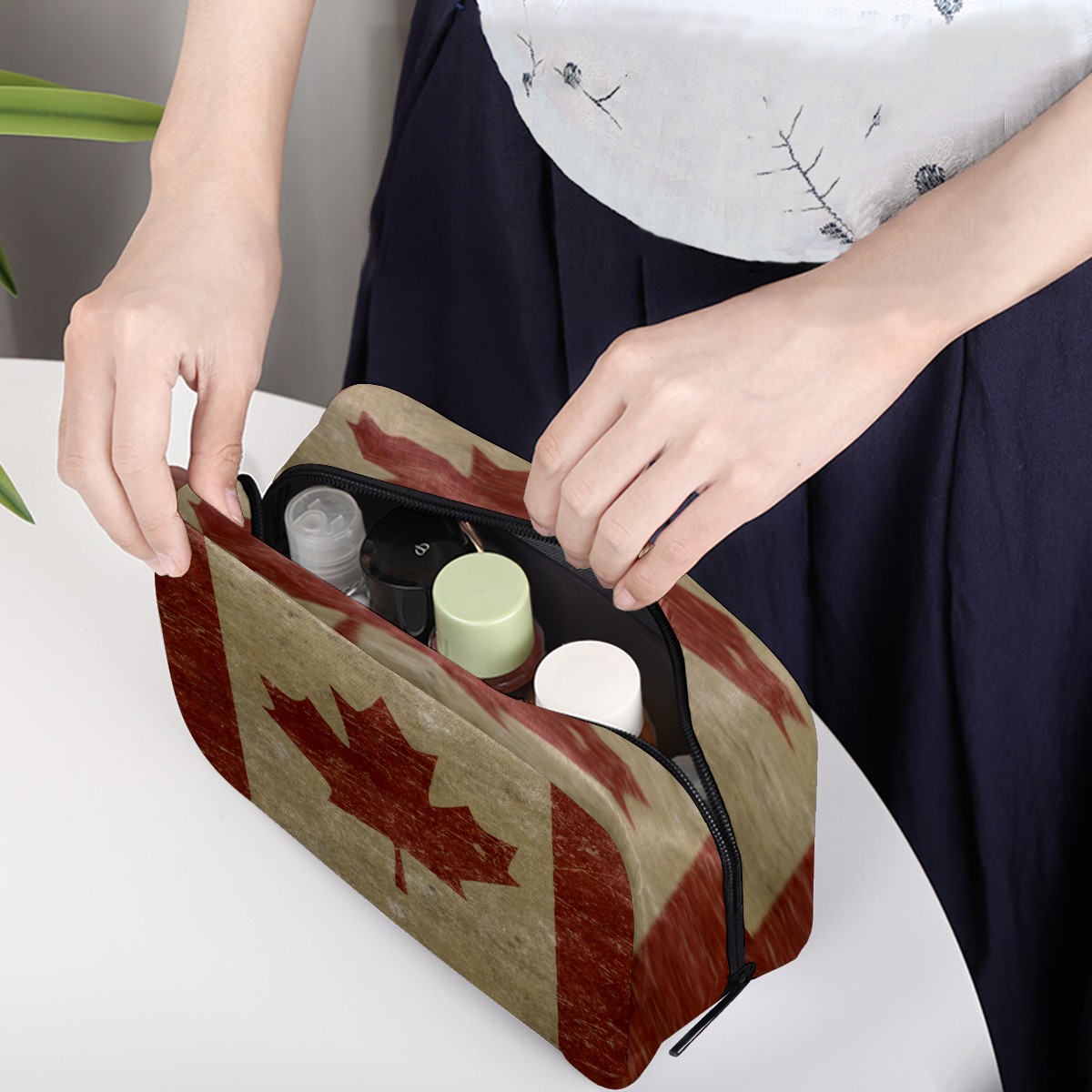 Cosmetic Bag for Women Girls Trave Makeup Bag Toiletry Case Pouch Accessories Organizer Vintage Canada Flag