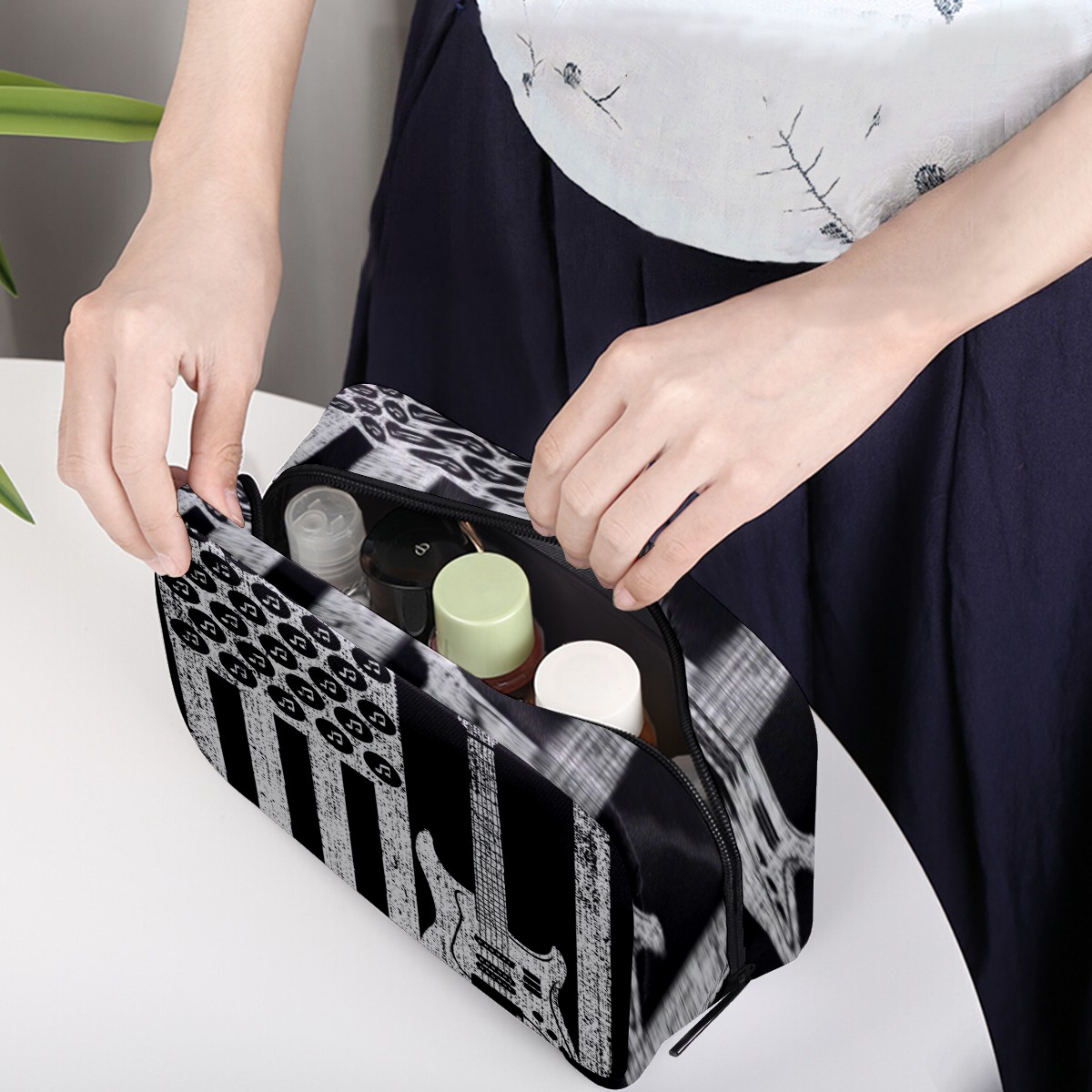 Cosmetic Bag for Women Girls Trave Makeup Bag Toiletry Case Pouch Accessories Organizer Vintage Electric Bass Guitar USA American