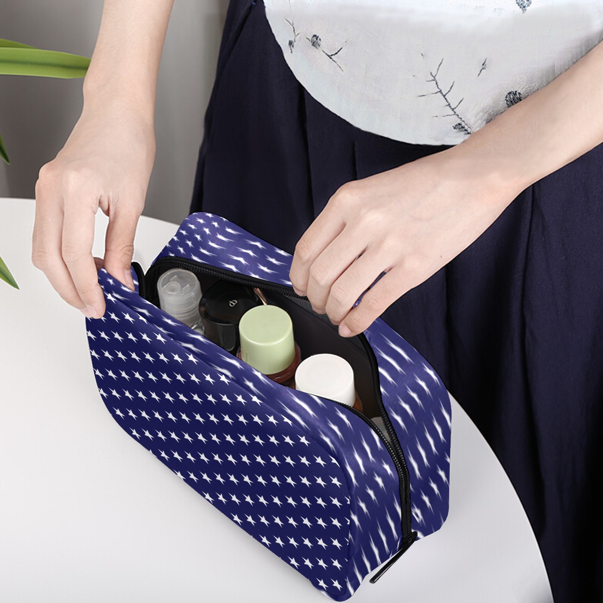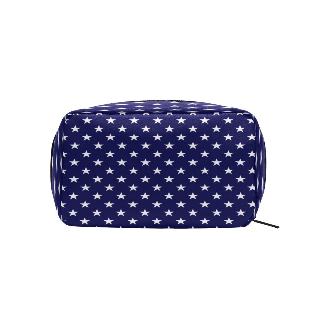 Cosmetic Bag for Women Girls Trave Makeup Bag Toiletry Case Pouch Accessories Organizer USA Flag White Stars On Flag Blue