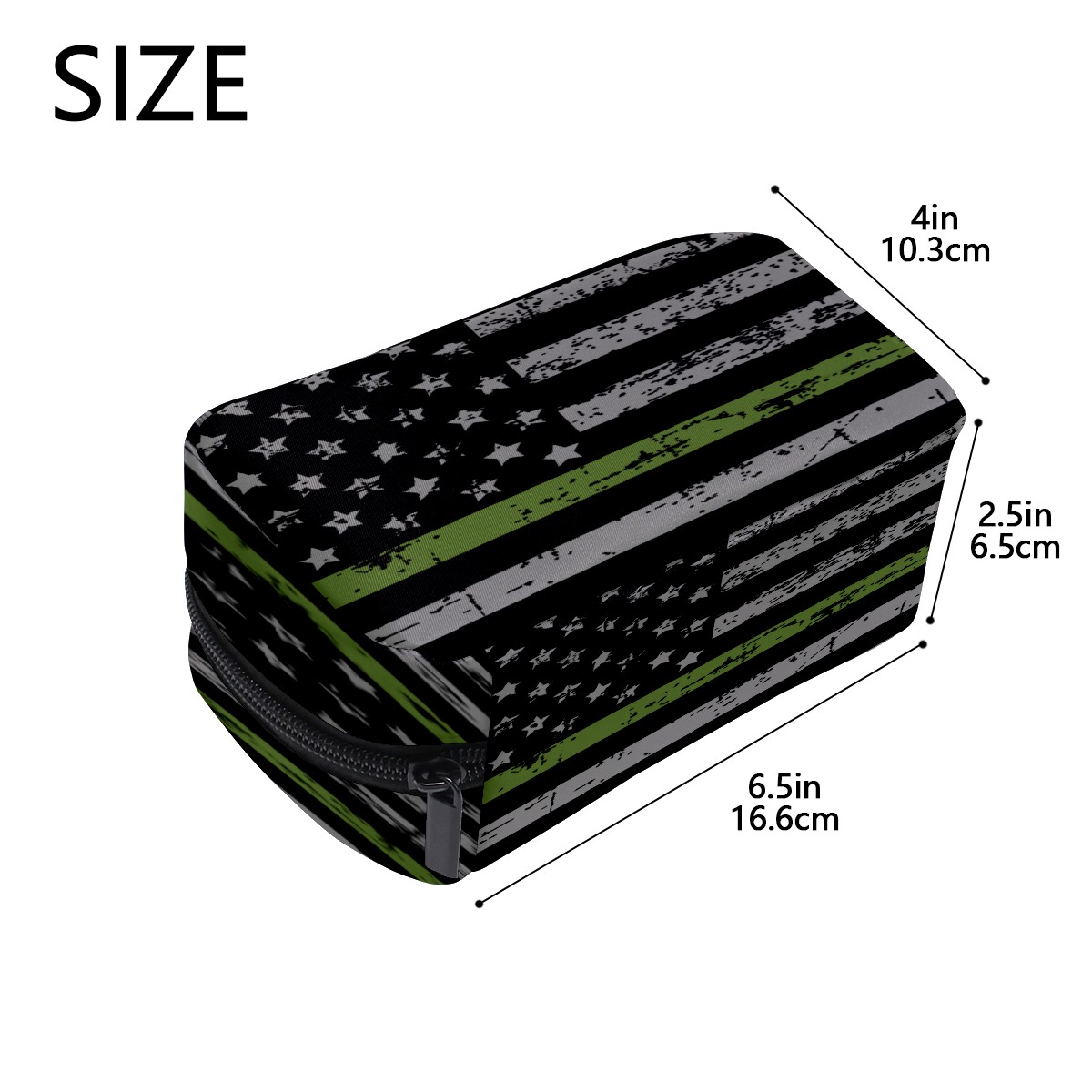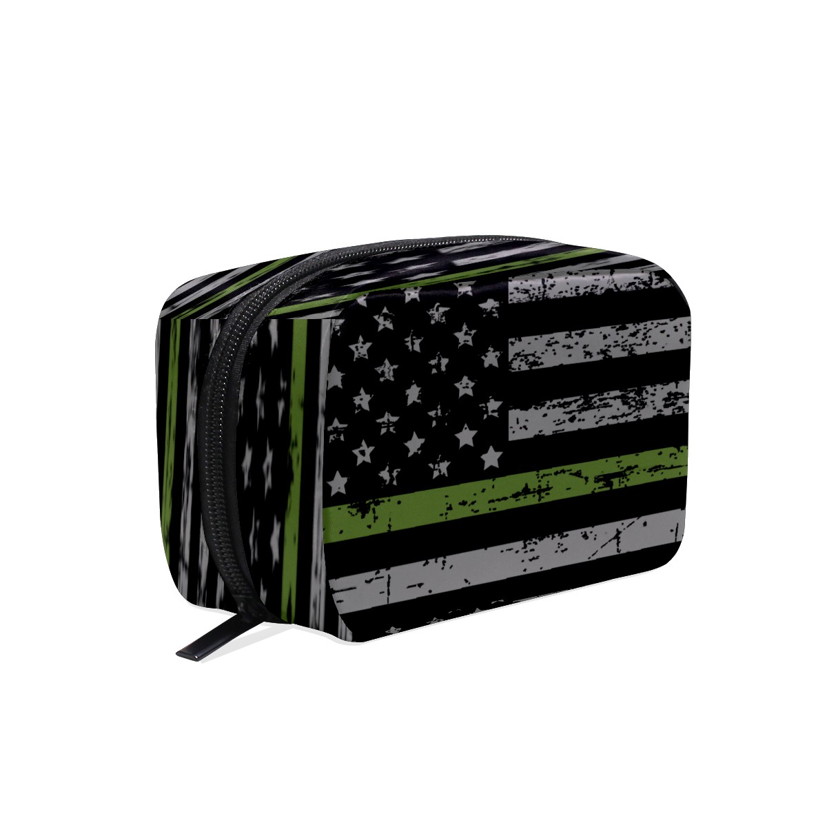 Cosmetic Bag for Women Girls Trave Makeup Bag Toiletry Case Pouch Accessories Organizer Thin Green Line American Flag