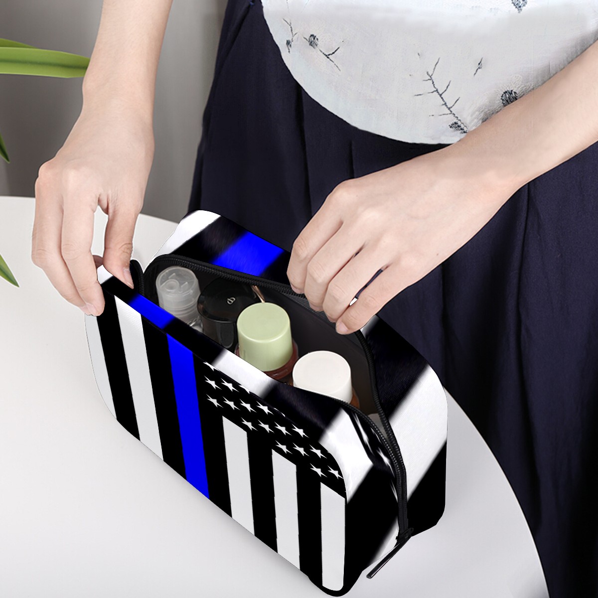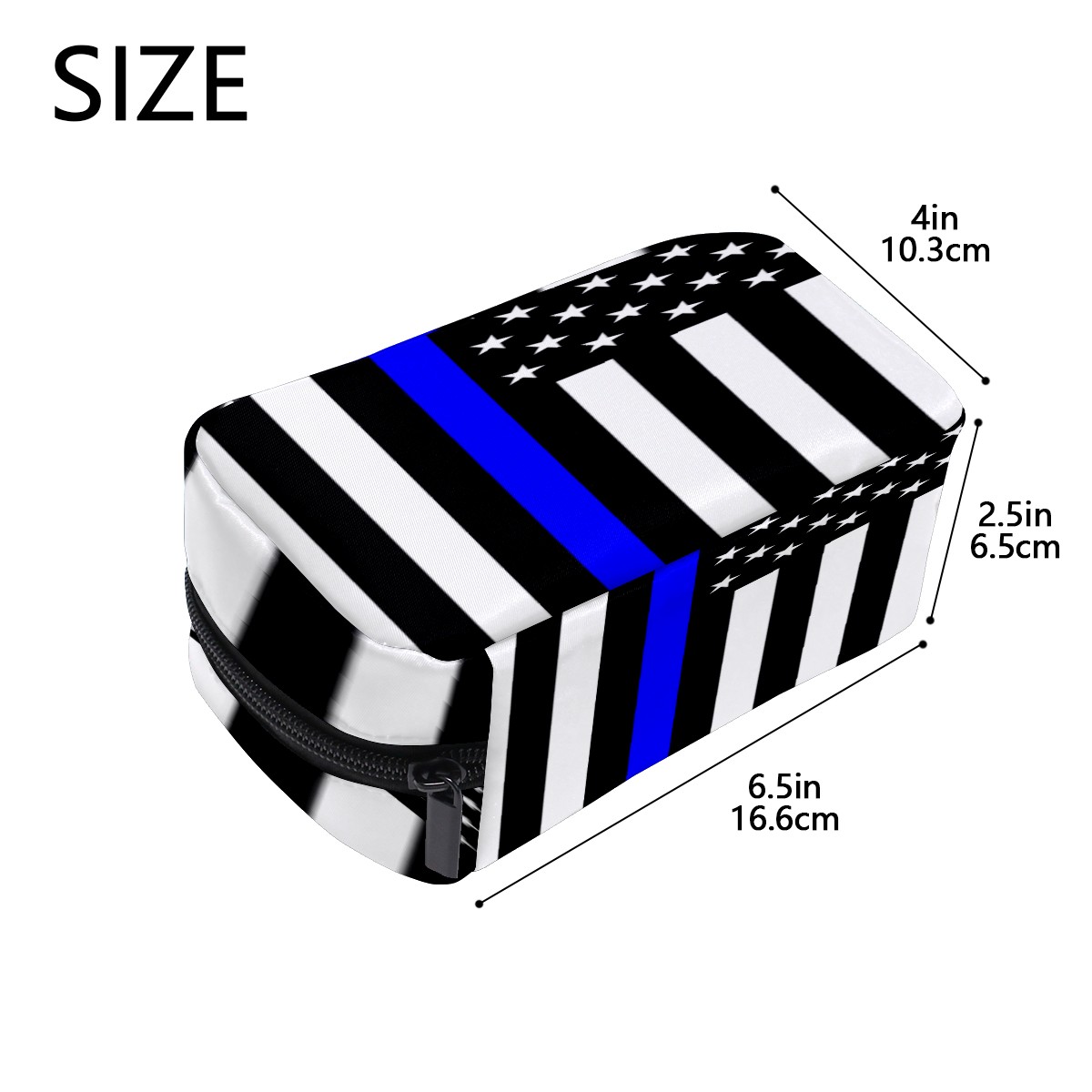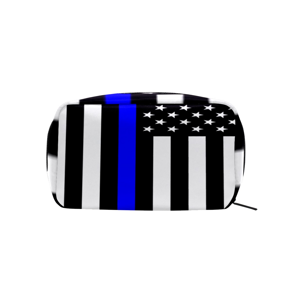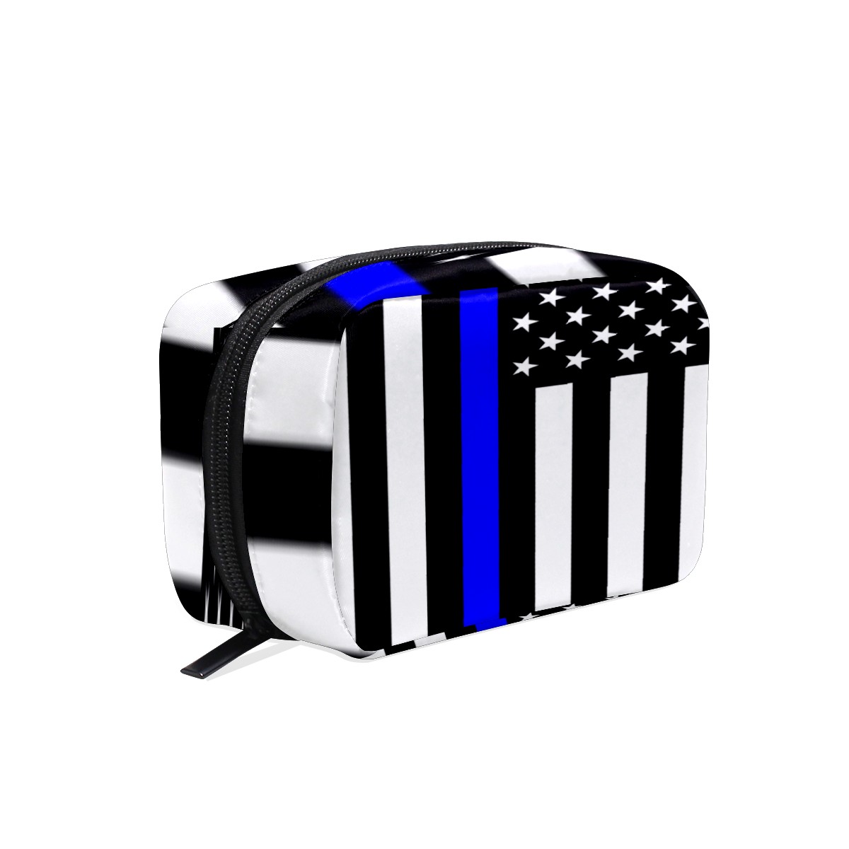 Cosmetic Bag for Women Girls Trave Makeup Bag Toiletry Case Pouch Accessories Organizer USA American Thin Blue Line Bunting Flags