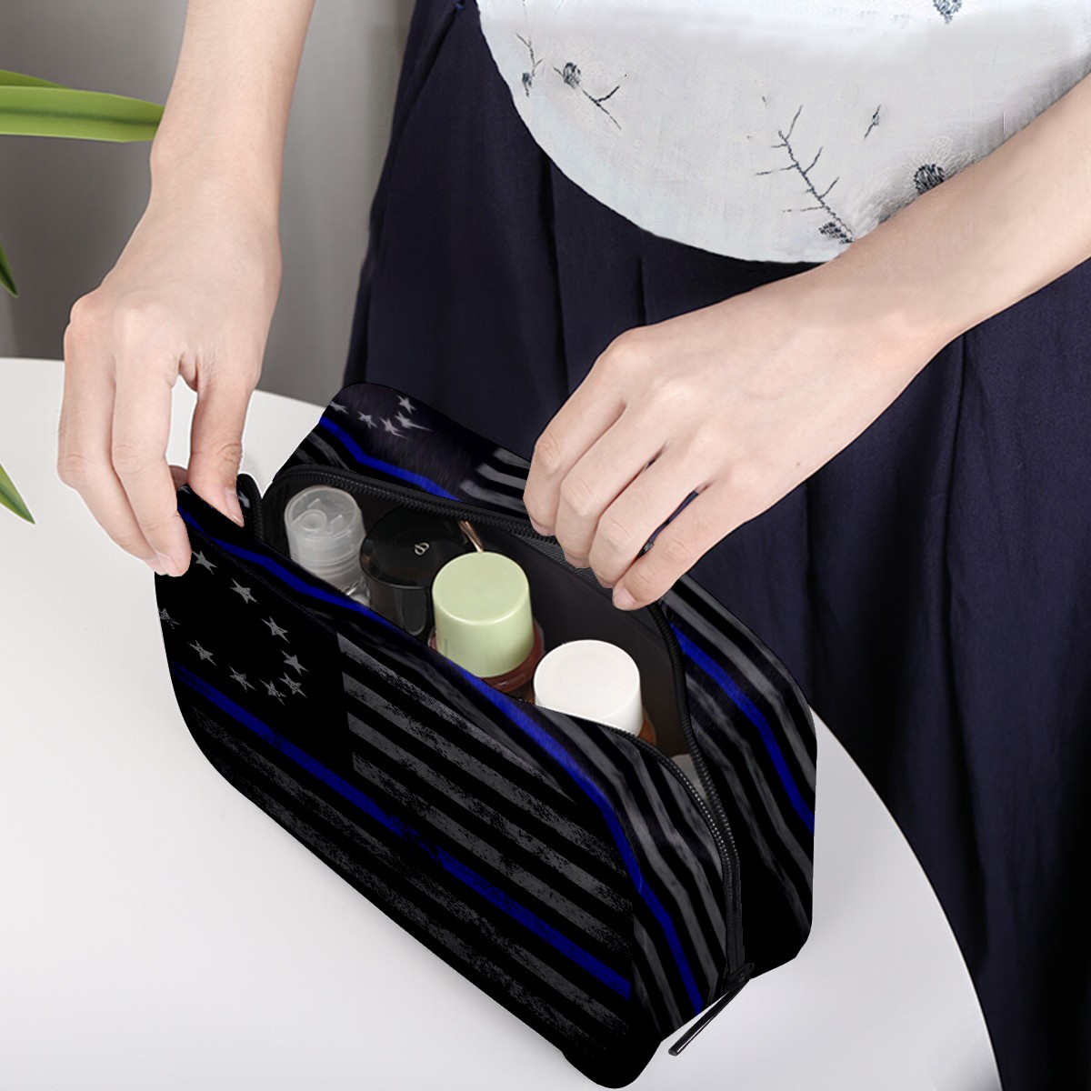 Cosmetic Bag for Women Girls Trave Makeup Bag Toiletry Case Pouch Accessories Organizer Thin Blue Line Vintge Betsy Ross Flag