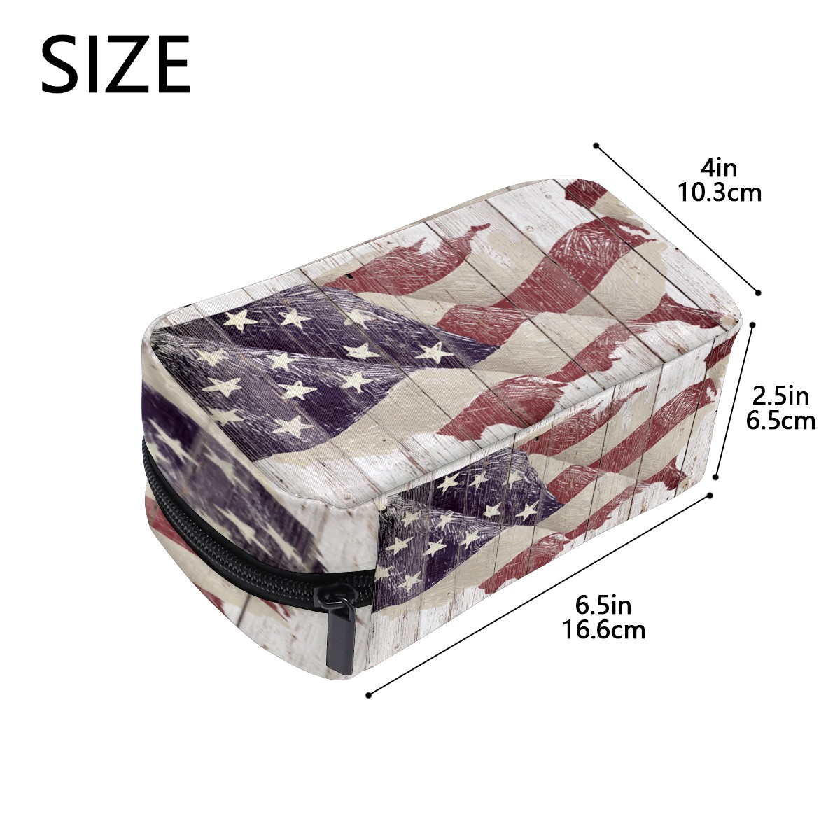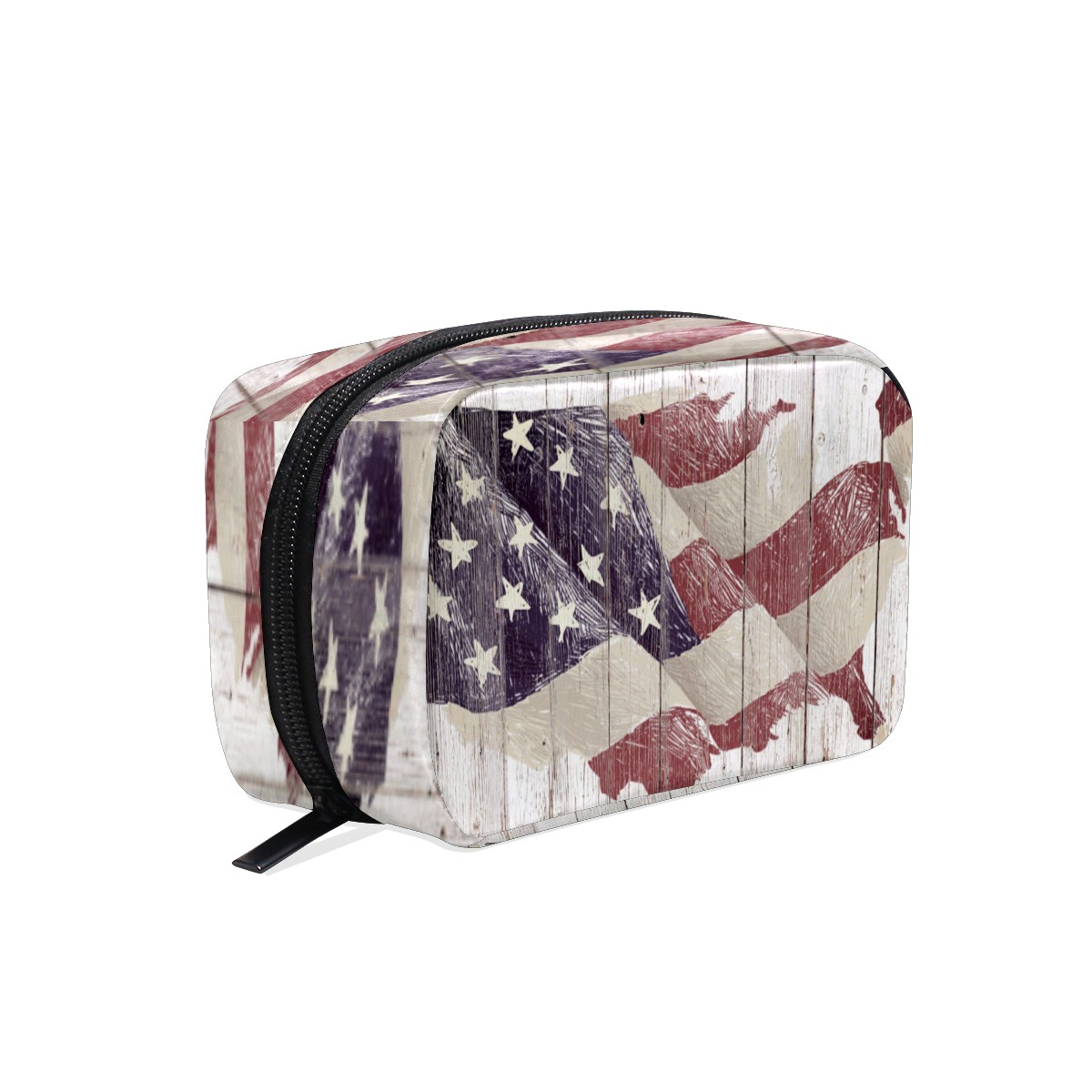 Cosmetic Bag for Women Girls Trave Makeup Bag Toiletry Case Pouch Accessories Organizer Rustic American Flag Wood