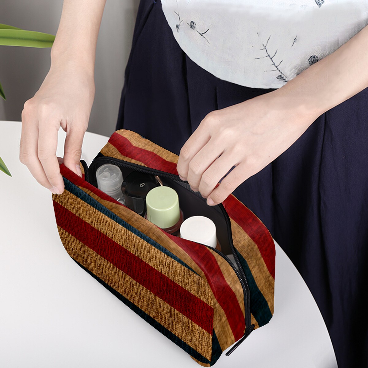 <p><br /></p><p><b>Cosmetic Bag Toiletry Travel Makeup Case Pouch Multi-function Organizer for Women</b></p><p><b>Size:</b> &nbsp;6.5 x 4 x 2.5 inches(LxWxH) / 16.6 x 10.3 x 6.5 cm</p><p><b>Material: </b>Twill Weave + Elastic Band</p><p><br /></p><p><b>Features:</b></p><p><br /></p><p>- High Quality:These makeup bags are Lightweight, Durable, Waterproof and made out of Light and Twill Weave. Size: 8" x 2.5" x 5.5" / 20.3 x 6.35 x 14cm (LxWxH)</p><p><i>- </i>Multiple compartments for different requests of storage: Have 1 main compartment and 2 lipstick pockets and 3 inner pockets, convenient to store your lipstick, brushes, eyebrow pencils, mascara, air cushion and powder</p><p><i>- </i>Multifuncation: Each makeup bag have One Main Bag and five Compartments, can hold your Lipstick, tweezers, eyebow pencils, perfume£¬brush or other grooming items in place,good for sorting cosmetics and it's easy to find the items you need.</p><p>- New Design:Simple, compact and lightweight design is easily held in handbag.With High-quality Zipper,nice stitching and sewing ensure smooth opening and closing</p><p>-The travel makeup case, also can be a travel toiletry bag, electronic accessories bag, small camera bag, suitable for taking exactly what you need, anywhere, at any time</p><p><b>If you have any question, please feel free to contact us!</b></p><p><br /></p>