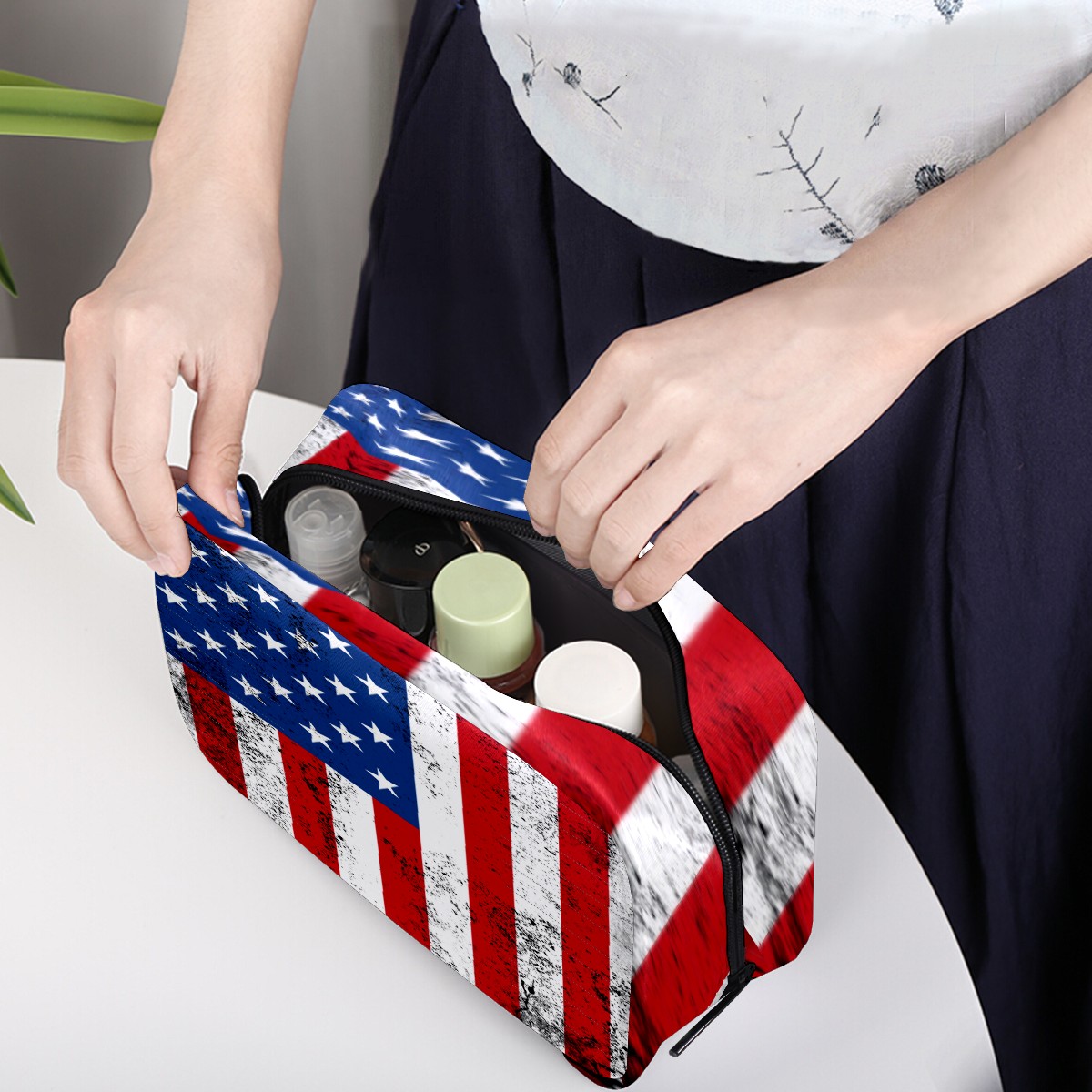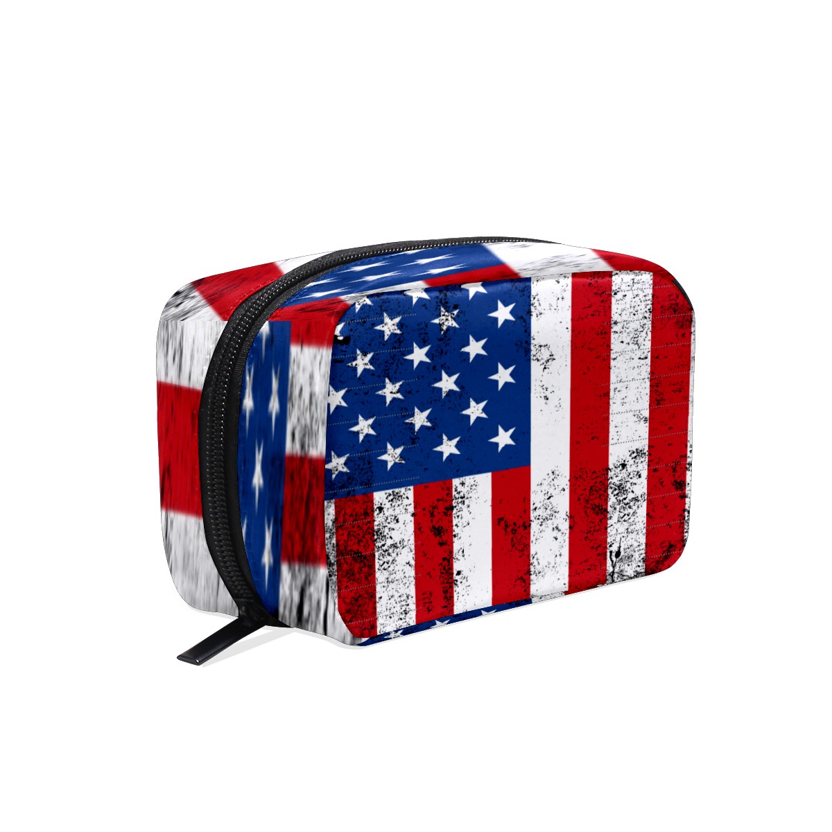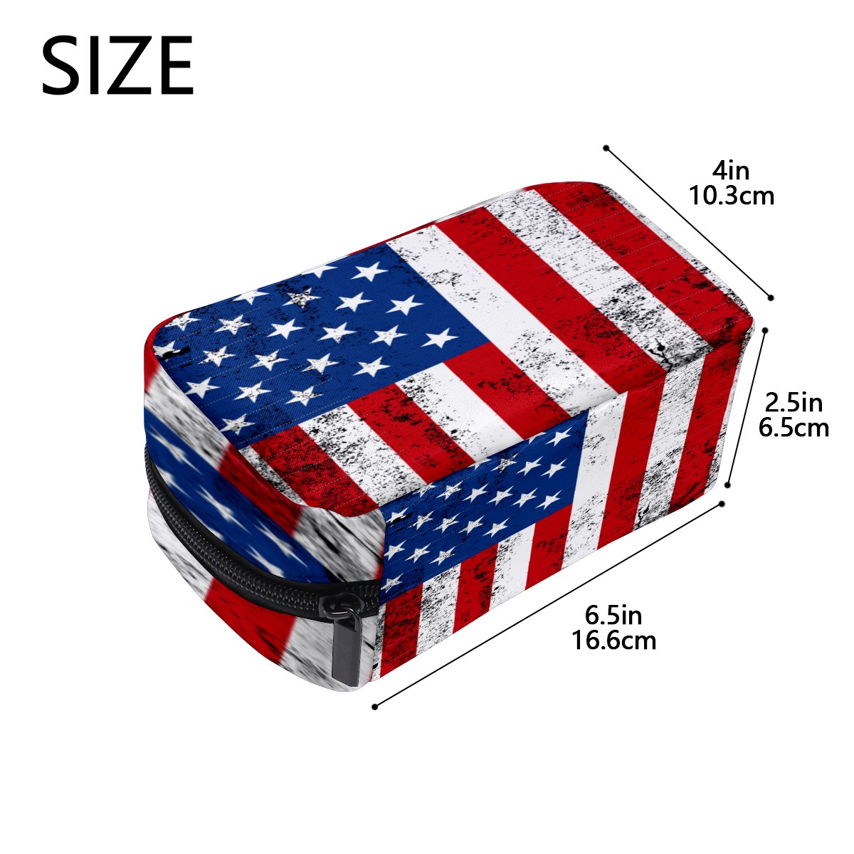 Cosmetic Bag for Women Girls Trave Makeup Bag Toiletry Case Pouch Accessories Organizer Independence Day American Flag Vintage