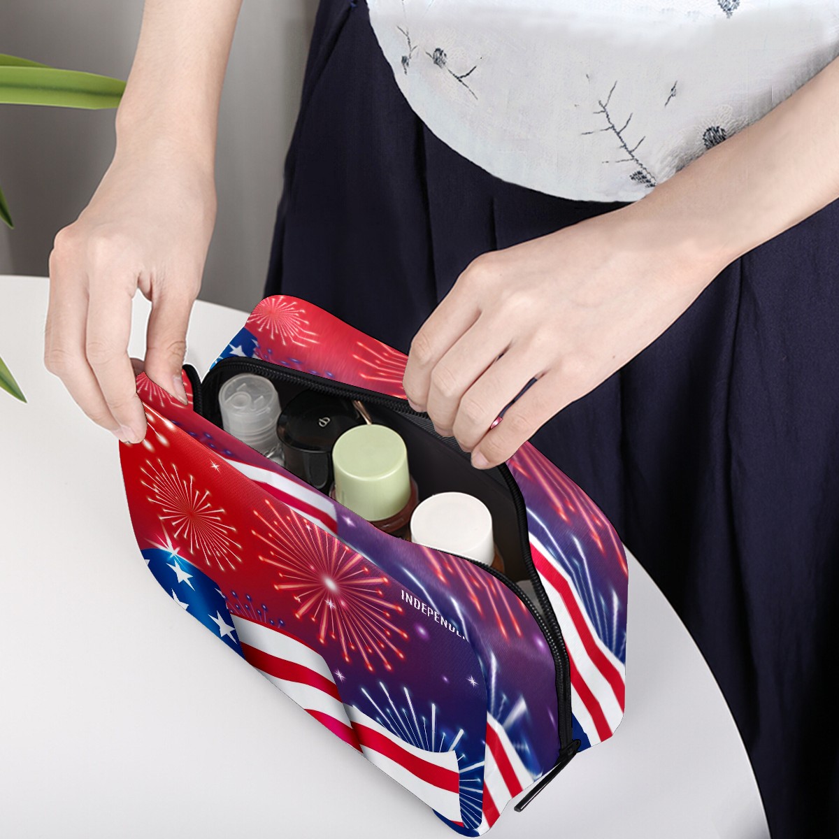 Cosmetic Bag for Women Girls Trave Makeup Bag Toiletry Case Pouch Accessories Organizer Independence Day