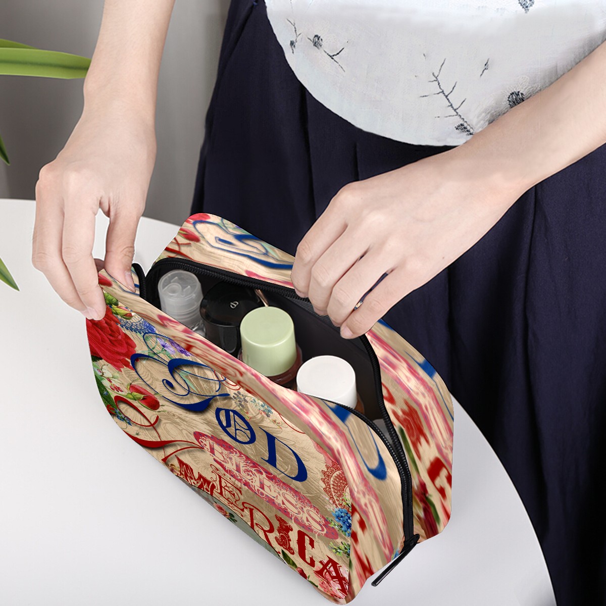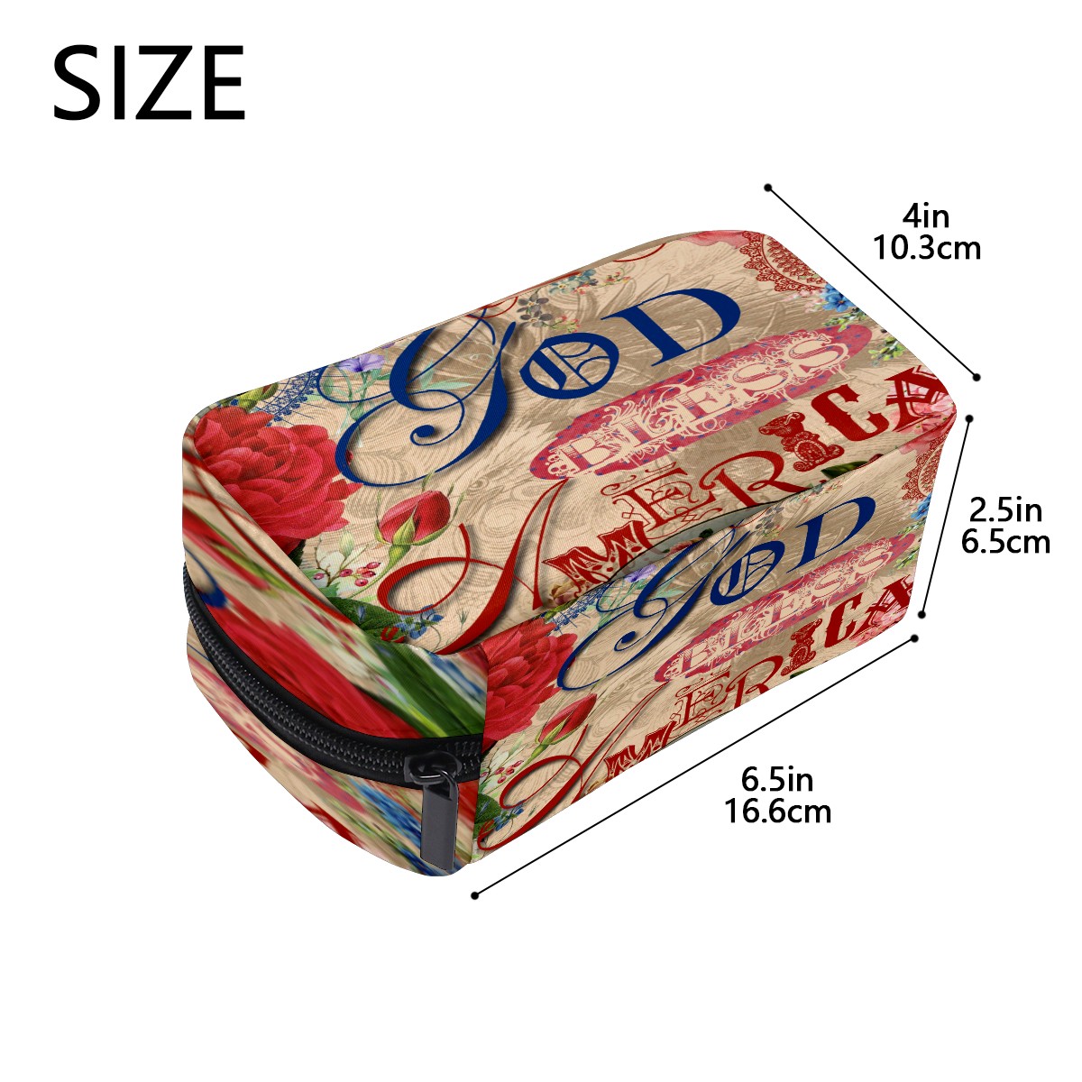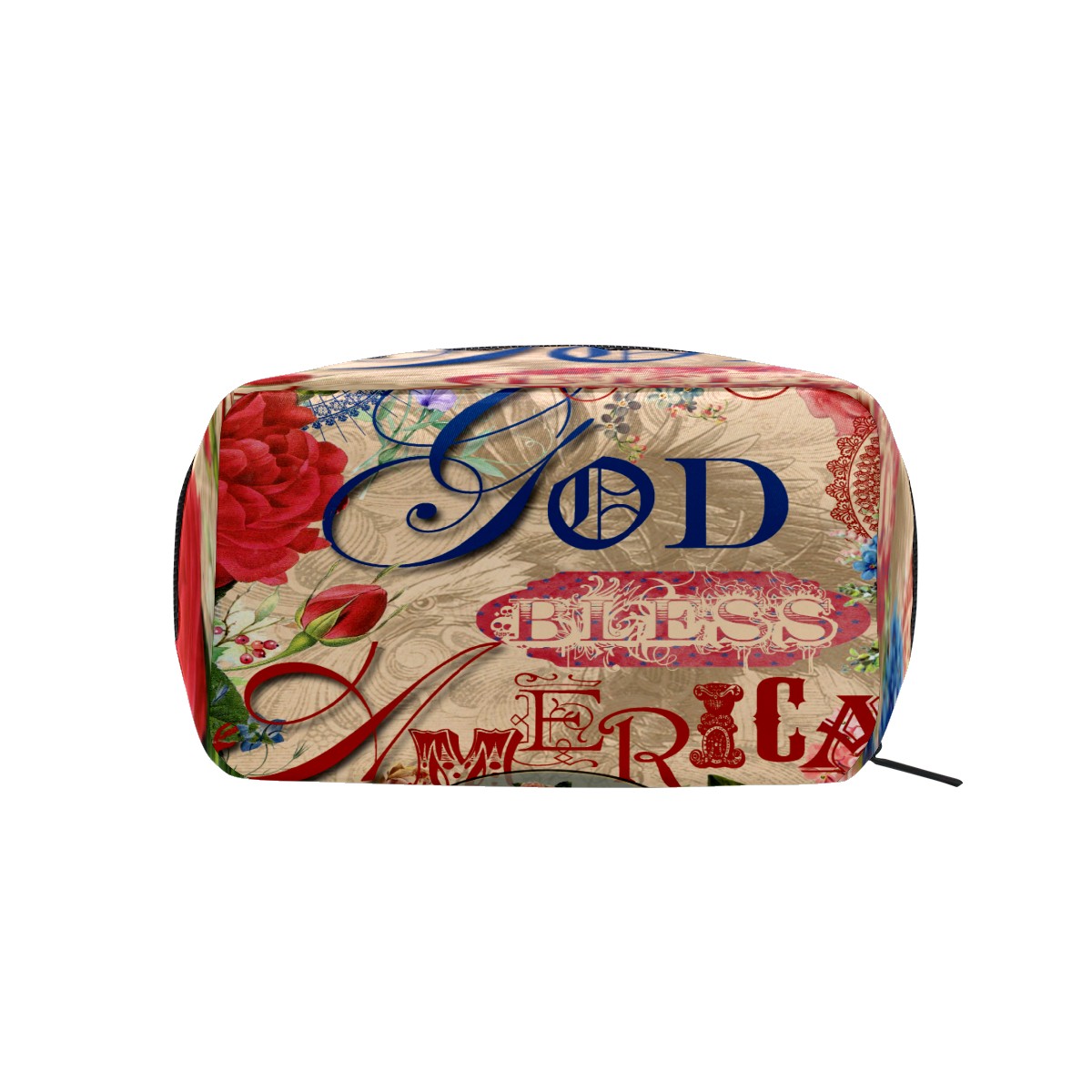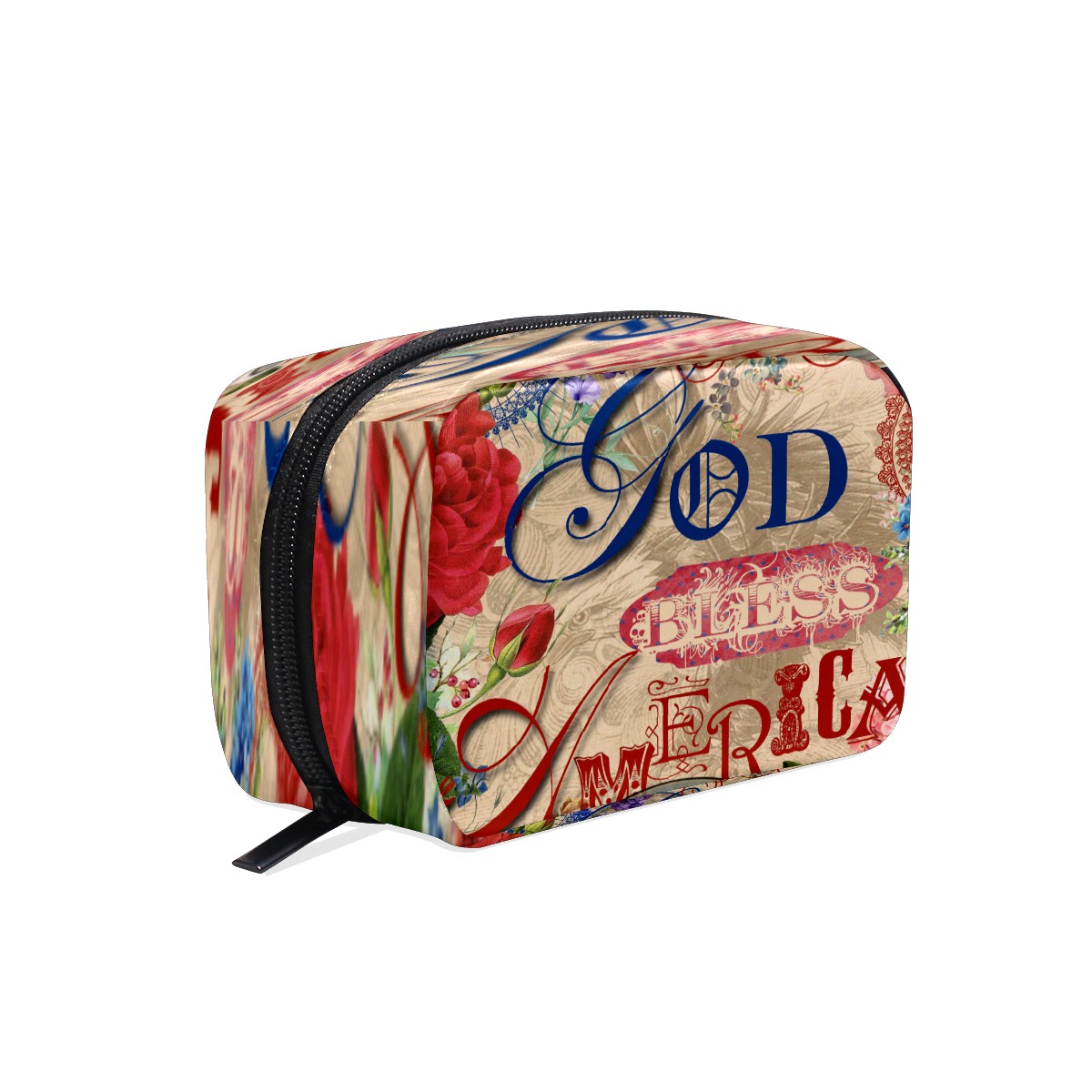 Cosmetic Bag for Women Girls Trave Makeup Bag Toiletry Case Pouch Accessories Organizer God Bless American Rose Flower