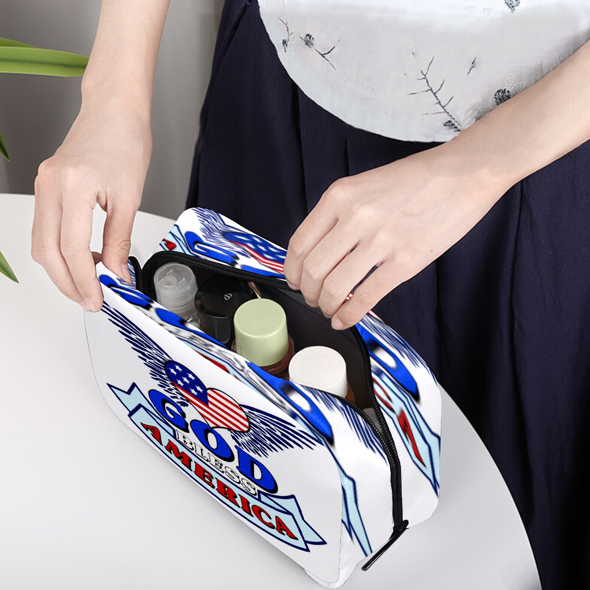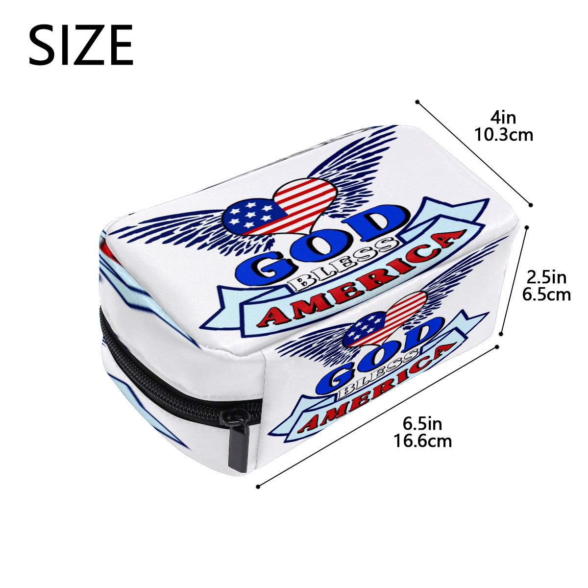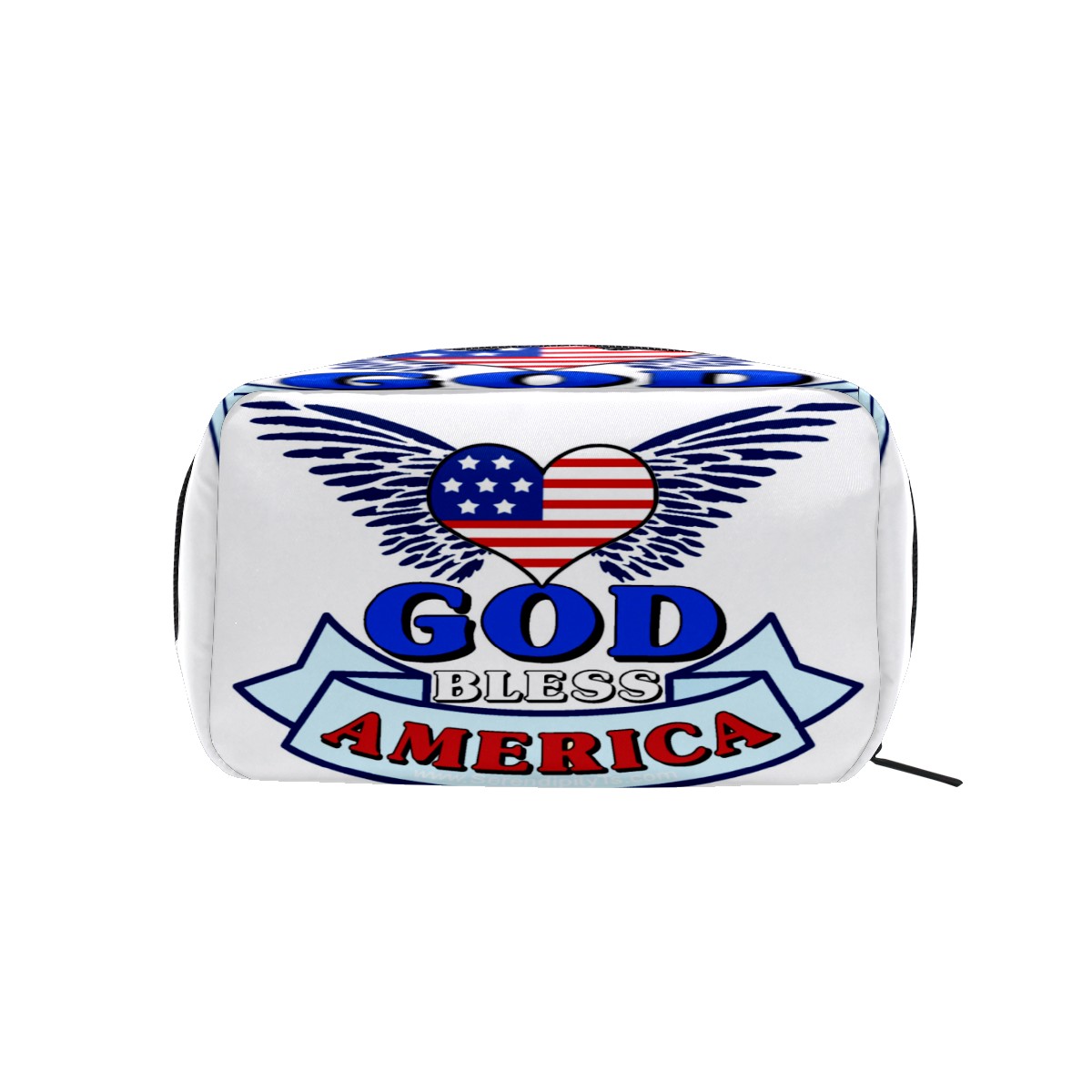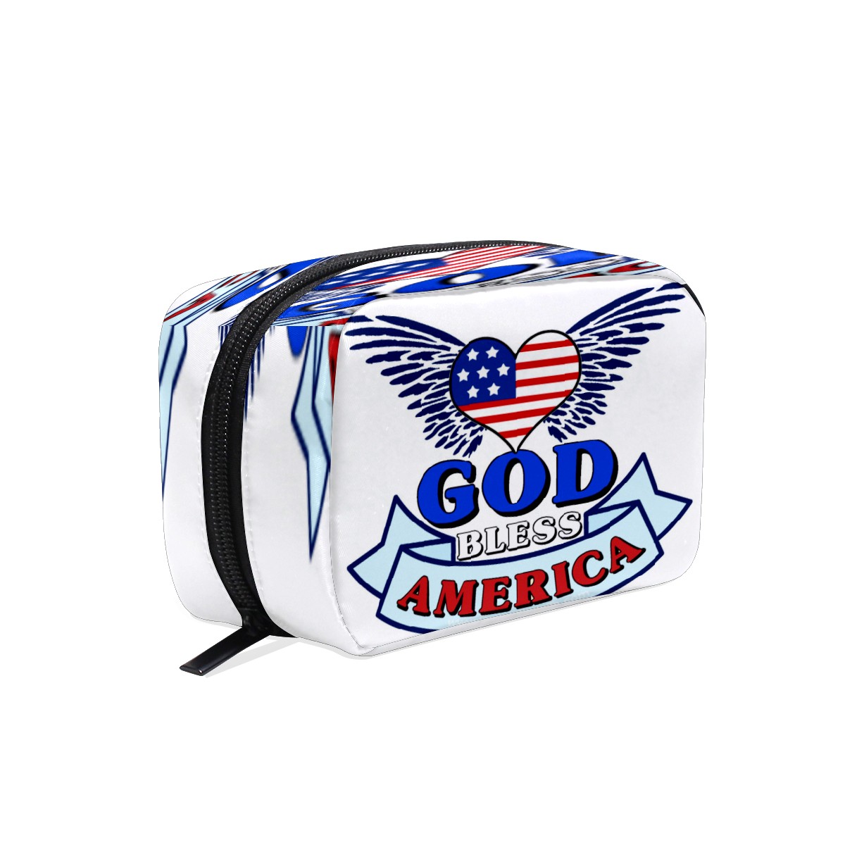Cosmetic Bag for Women Girls Trave Makeup Bag Toiletry Case Pouch Accessories Organizer God Bless American With Heart Flag
