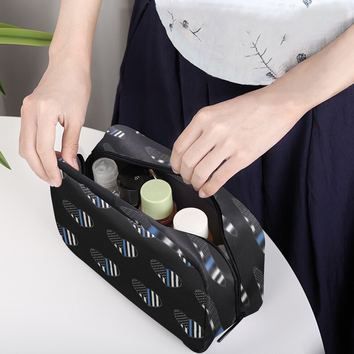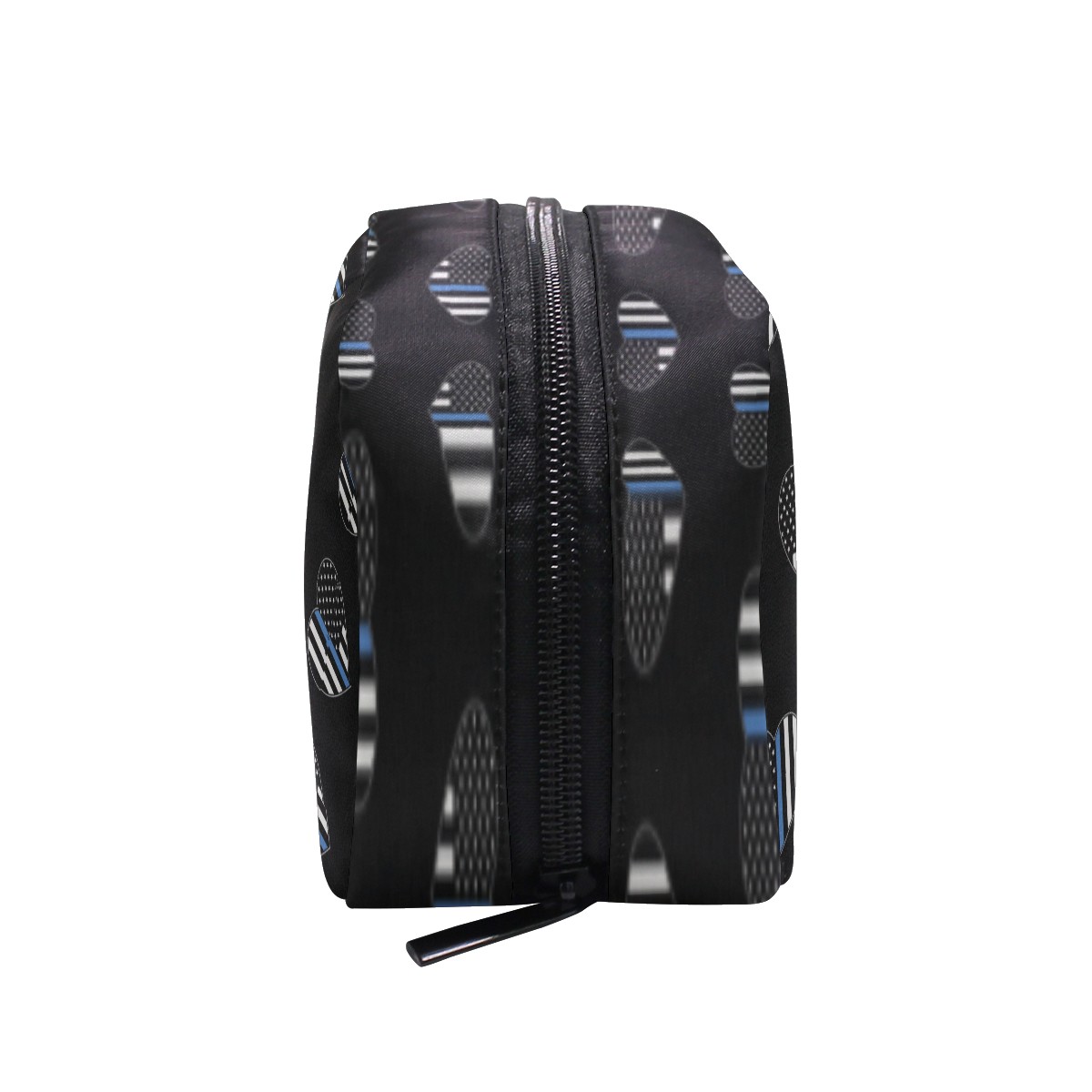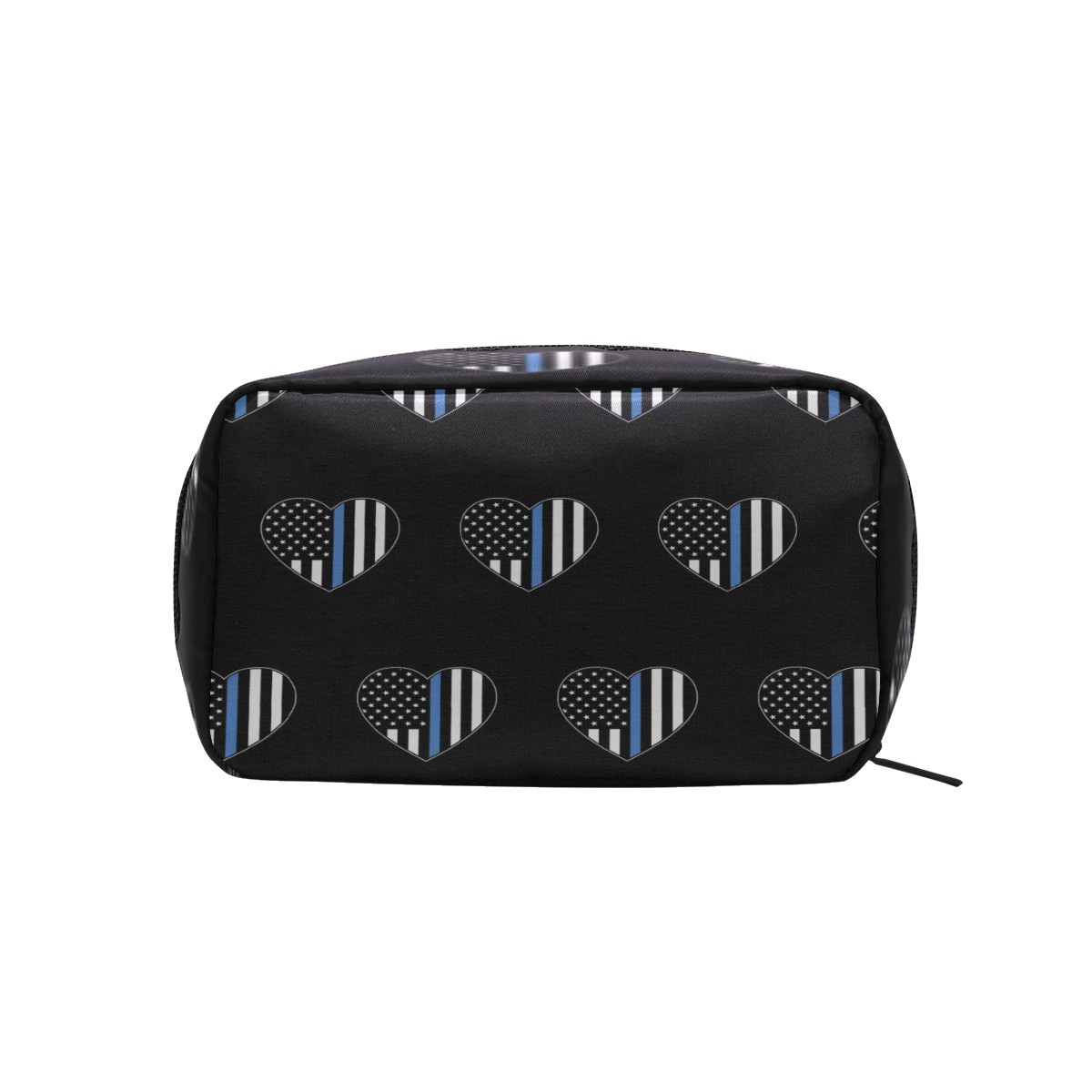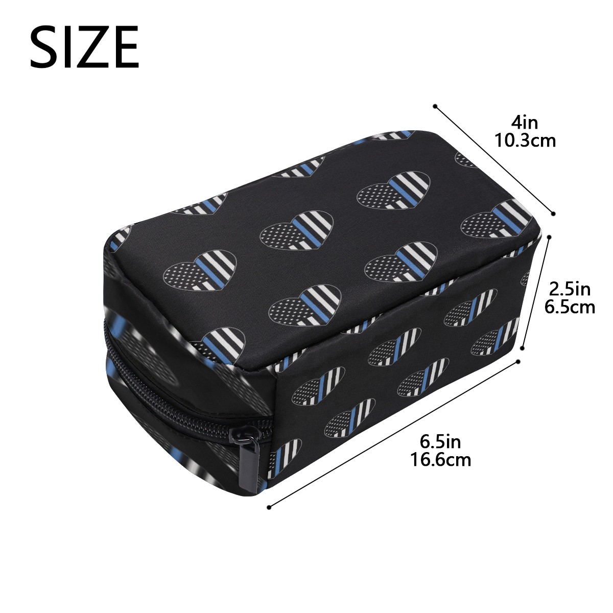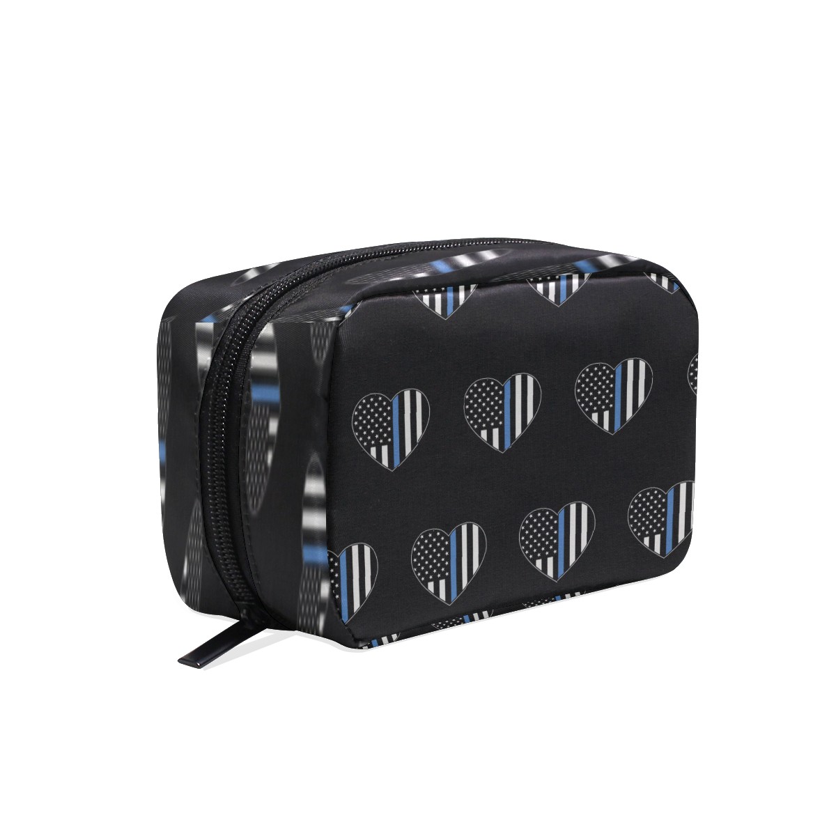 Cosmetic Bag for Women Girls Trave Makeup Bag Toiletry Case Pouch Accessories Organizer Blue Thin Line American Flag Heart