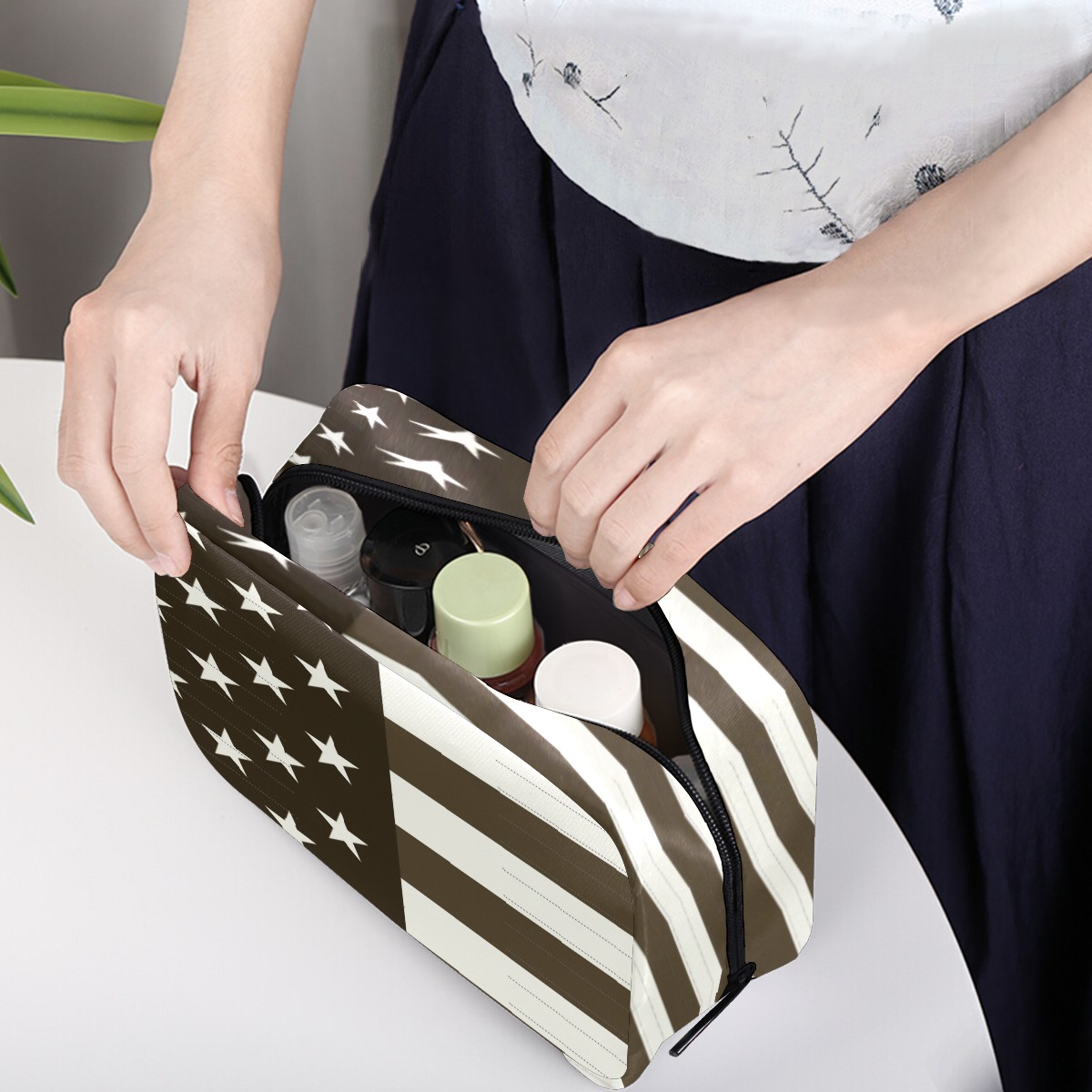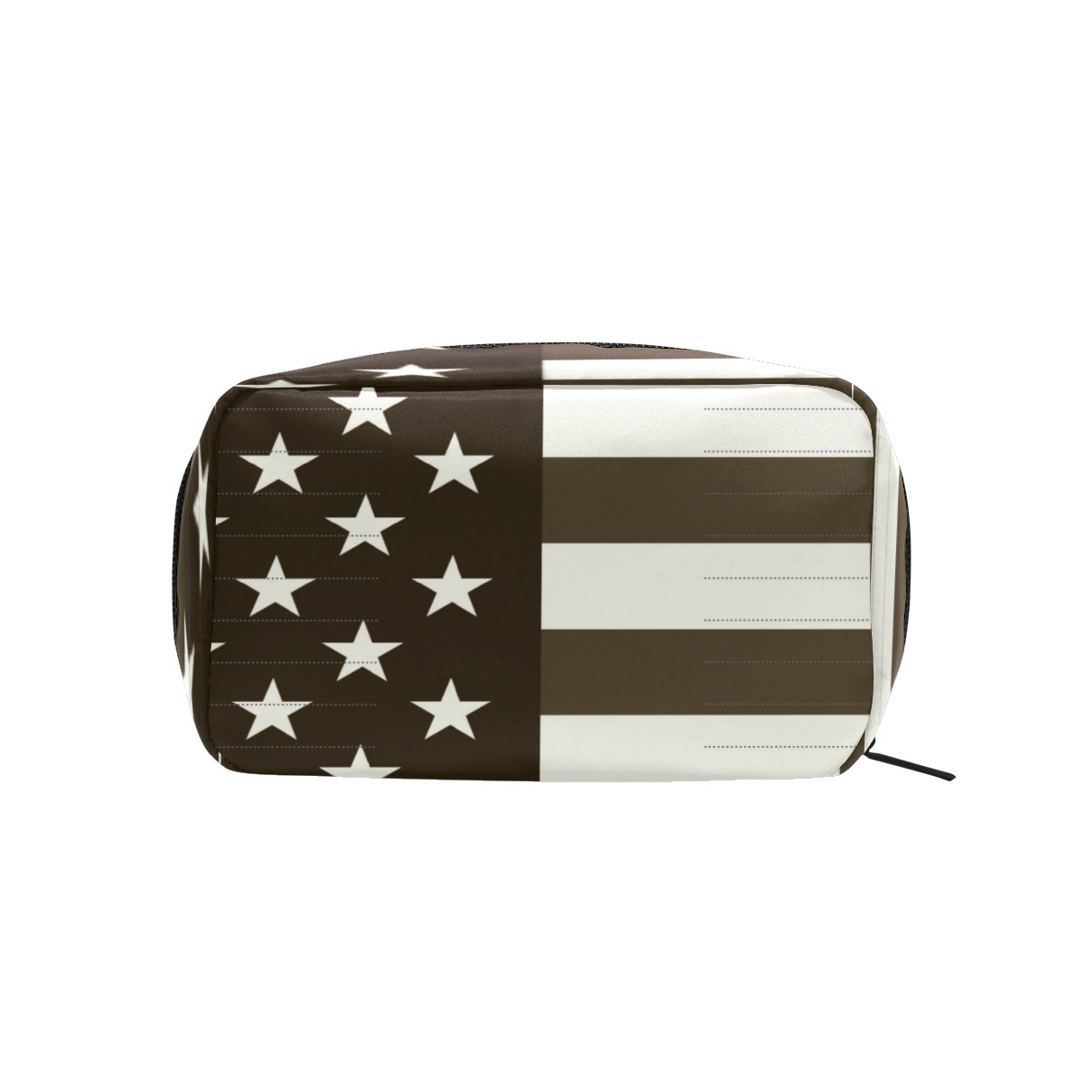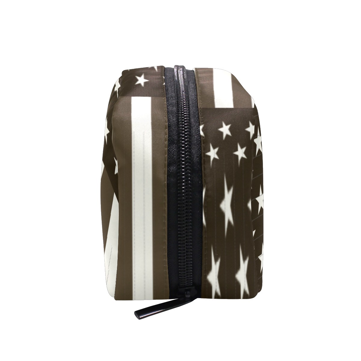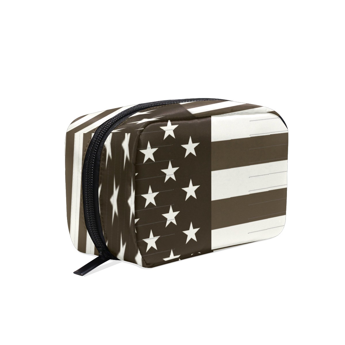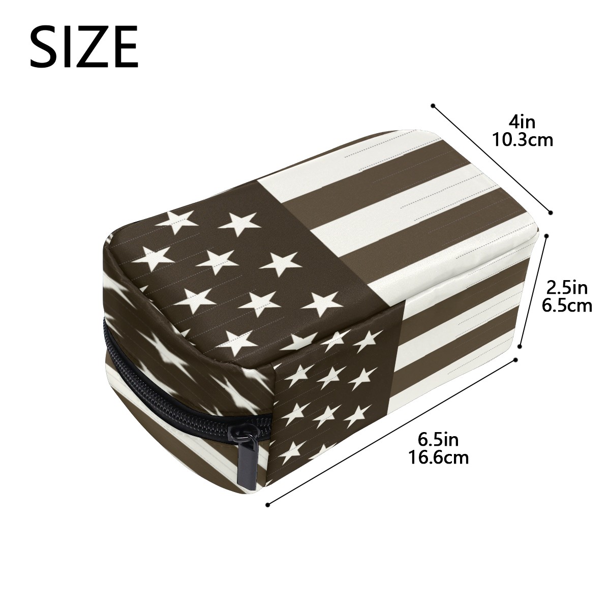 Cosmetic Bag for Women Girls Trave Makeup Bag Toiletry Case Pouch Accessories Organizer Brown American Flag