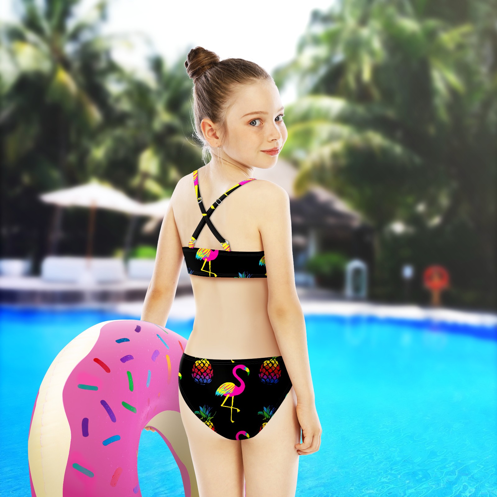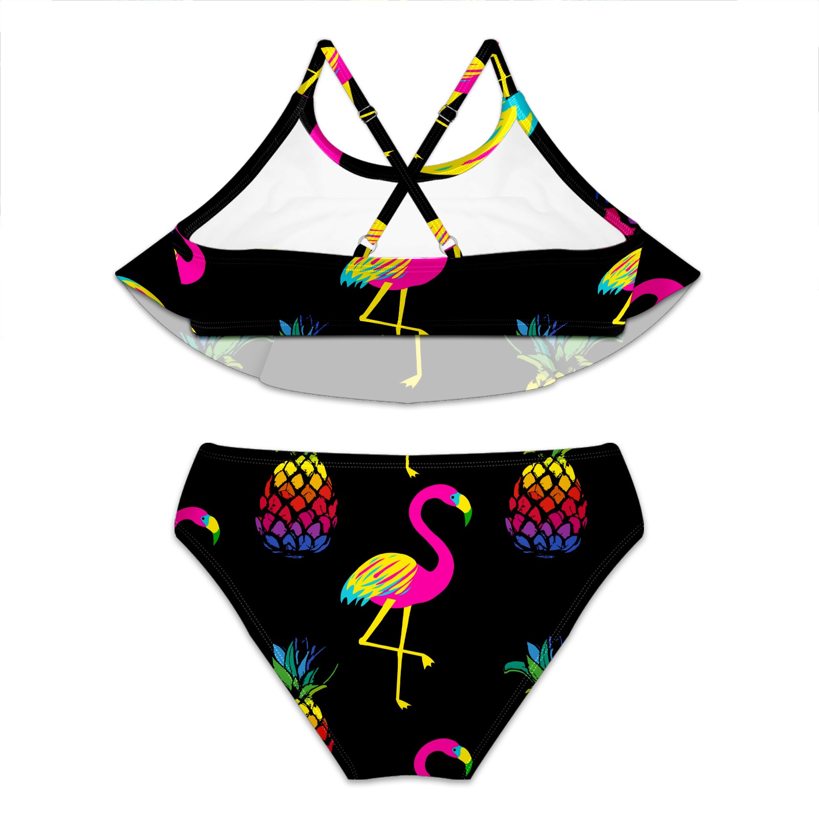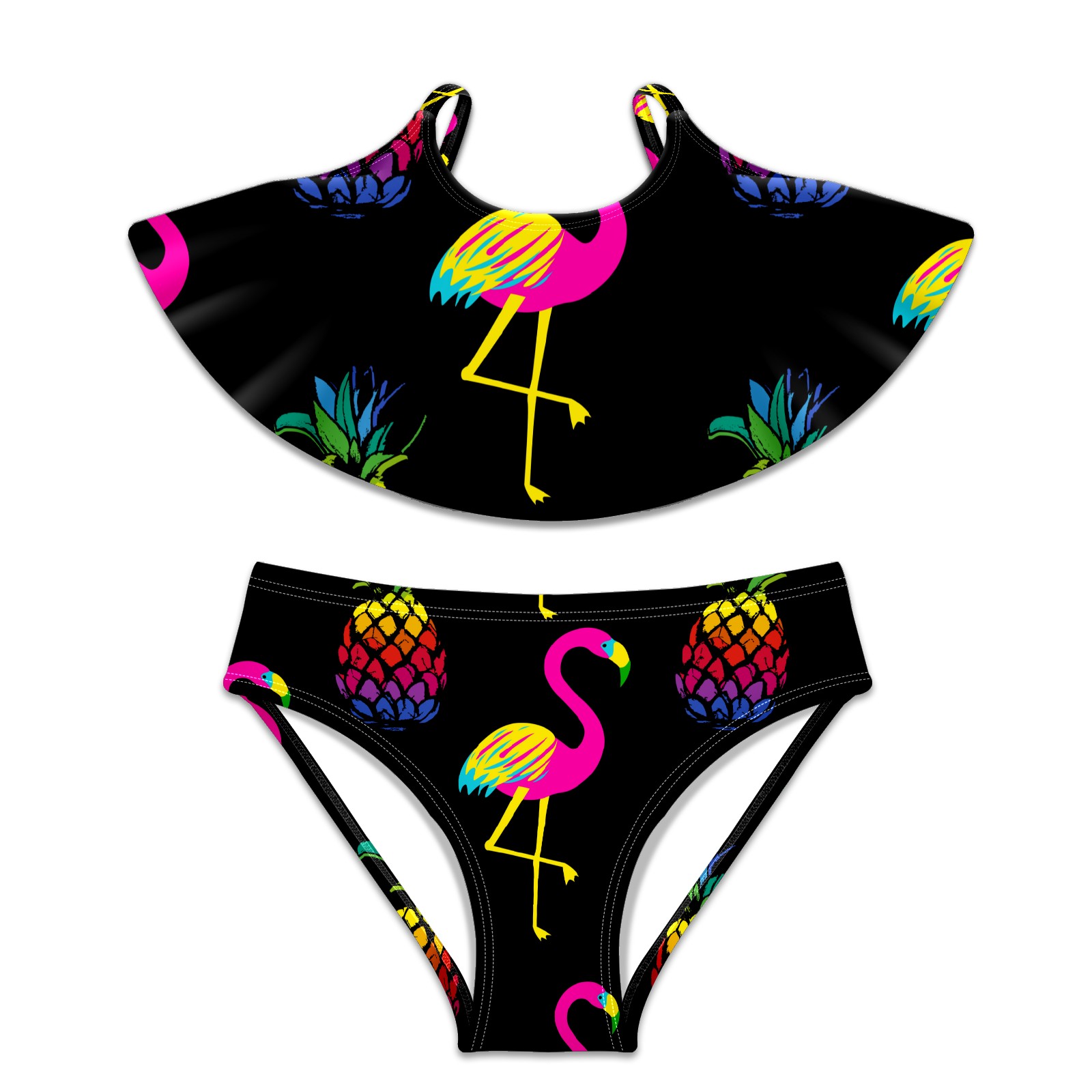 Swimsuits for Girls Two Pieces Bathing Suit Quick Dry Swimwear Tropical Flamingos Pineapple S
