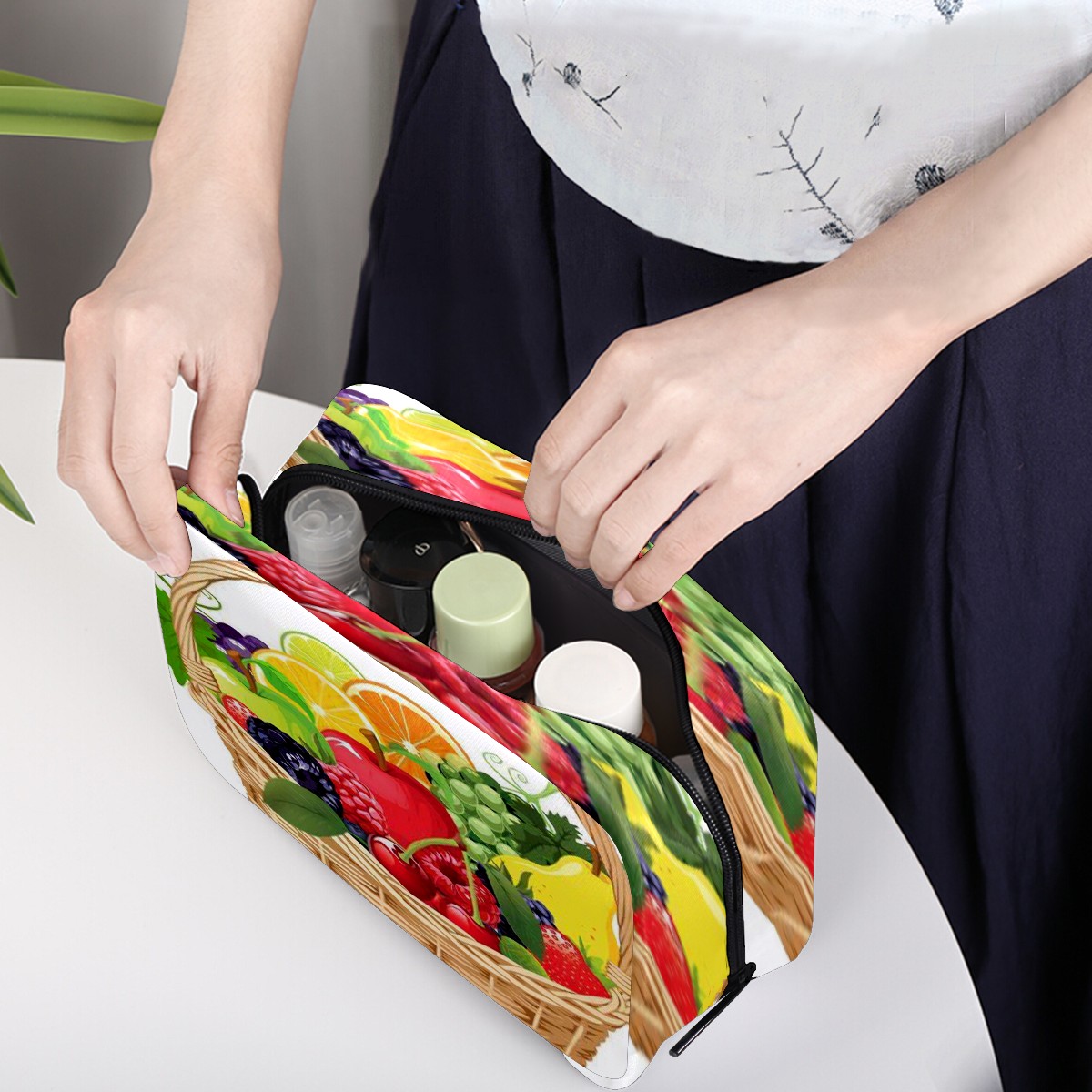 Cosmetic Bag for Women Girls Trave Makeup Bag Toiletry Case Pouch Accessories Organizer Tropical Colorful Fruit Basket