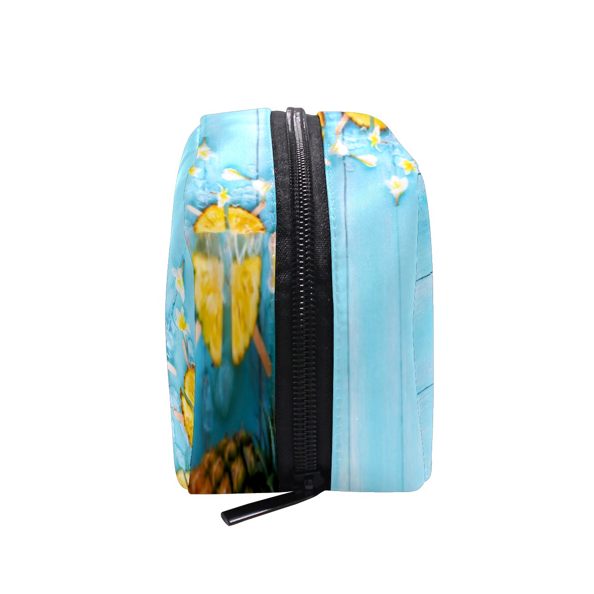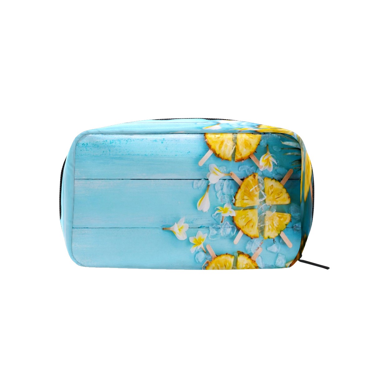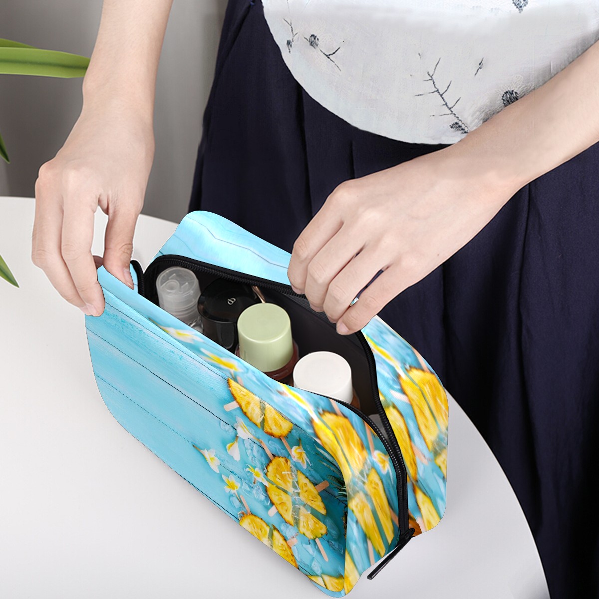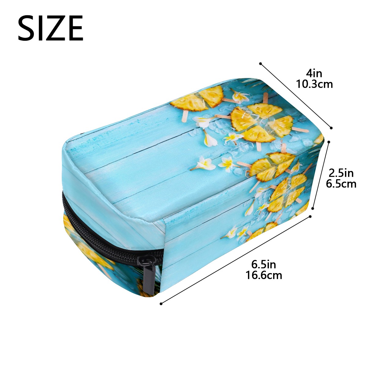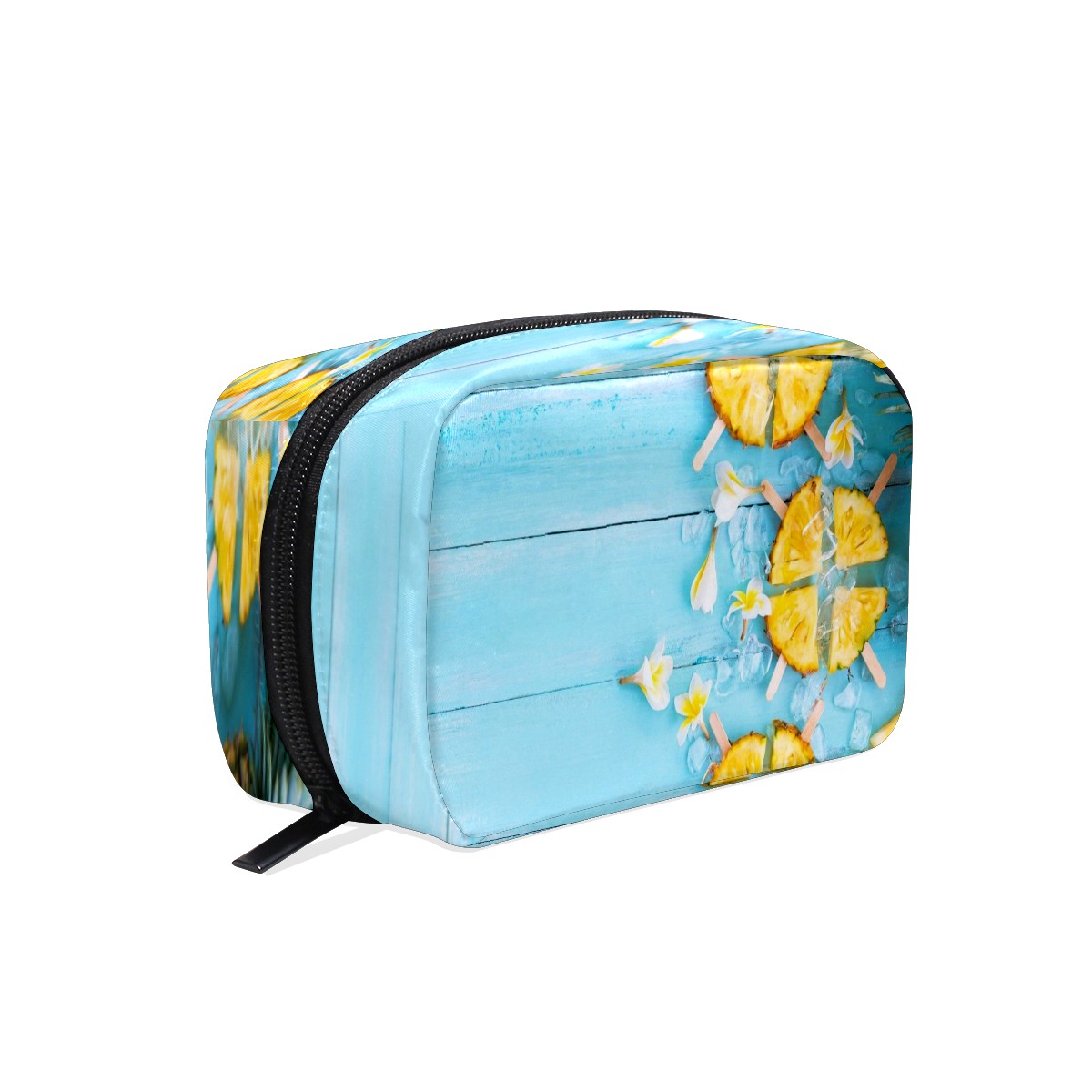 Cosmetic Bag for Women Girls Trave Makeup Bag Toiletry Case Pouch Accessories Organizer Summer Fruit Pineapple On Wood