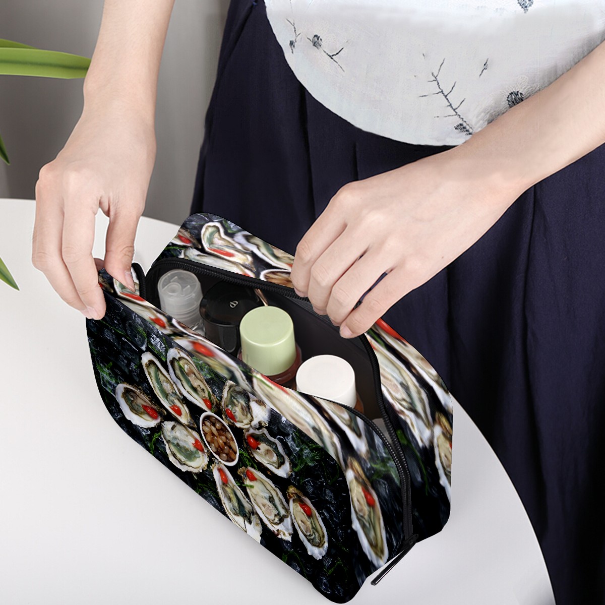 Cosmetic Bag for Women Girls Trave Makeup Bag Toiletry Case Pouch Accessories Organizer Seafood Oyster