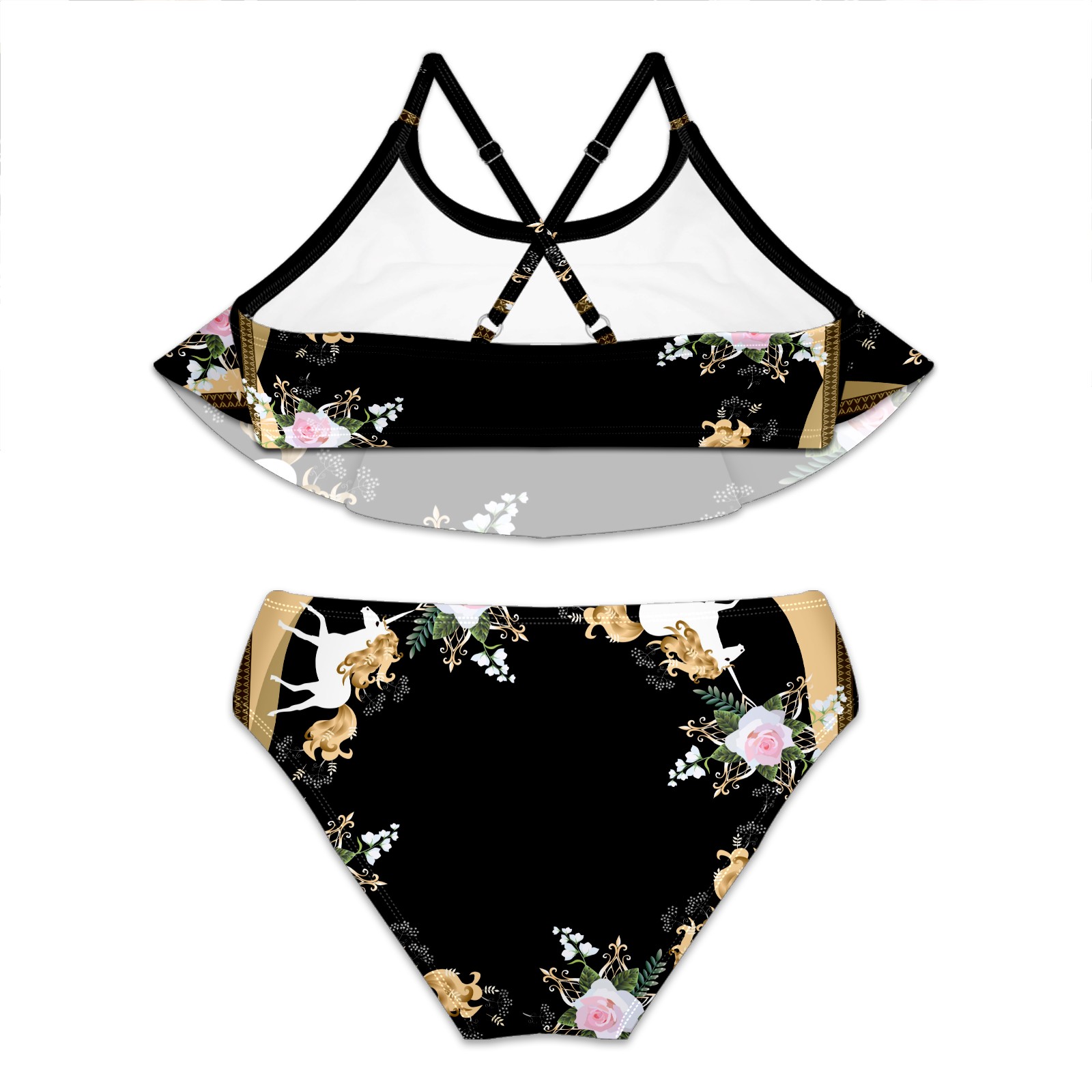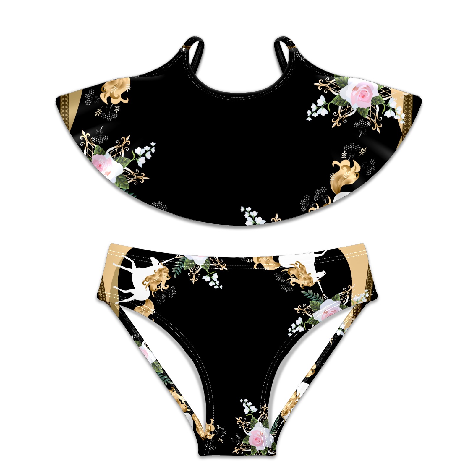 Swimsuits for Girls Two Pieces Bathing Suit Quick Dry Swimwear Unicorn With Flowers S