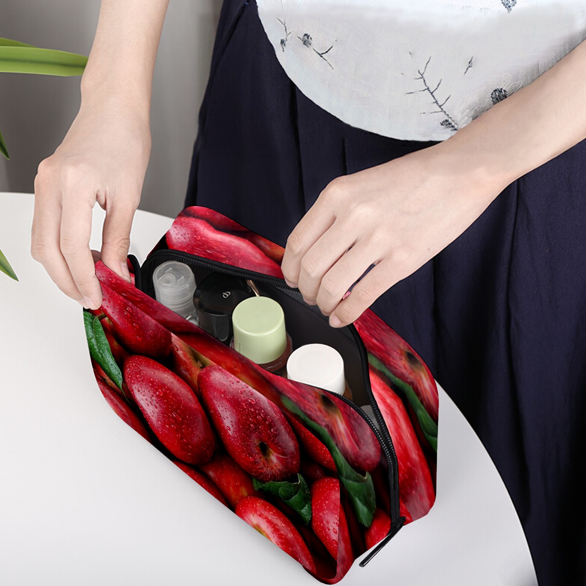 Cosmetic Bag for Women Girls Trave Makeup Bag Toiletry Case Pouch Accessories Organizer Red Apples Fruit Pattern