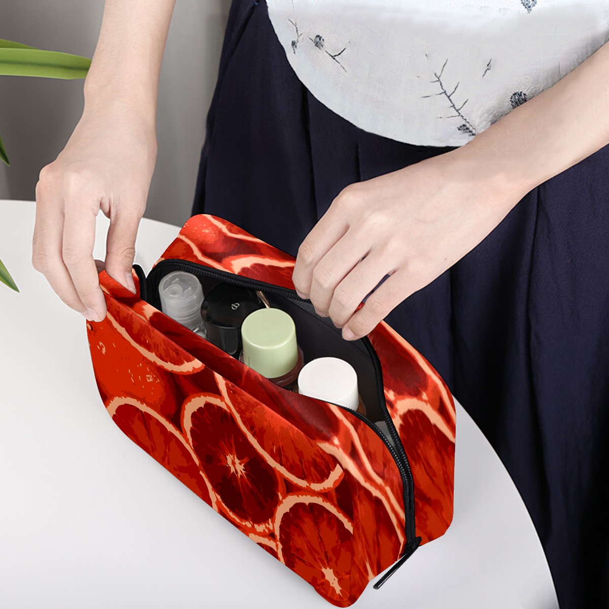 Cosmetic Bag for Women Girls Trave Makeup Bag Toiletry Case Pouch Accessories Organizer Orange Fuit Painting