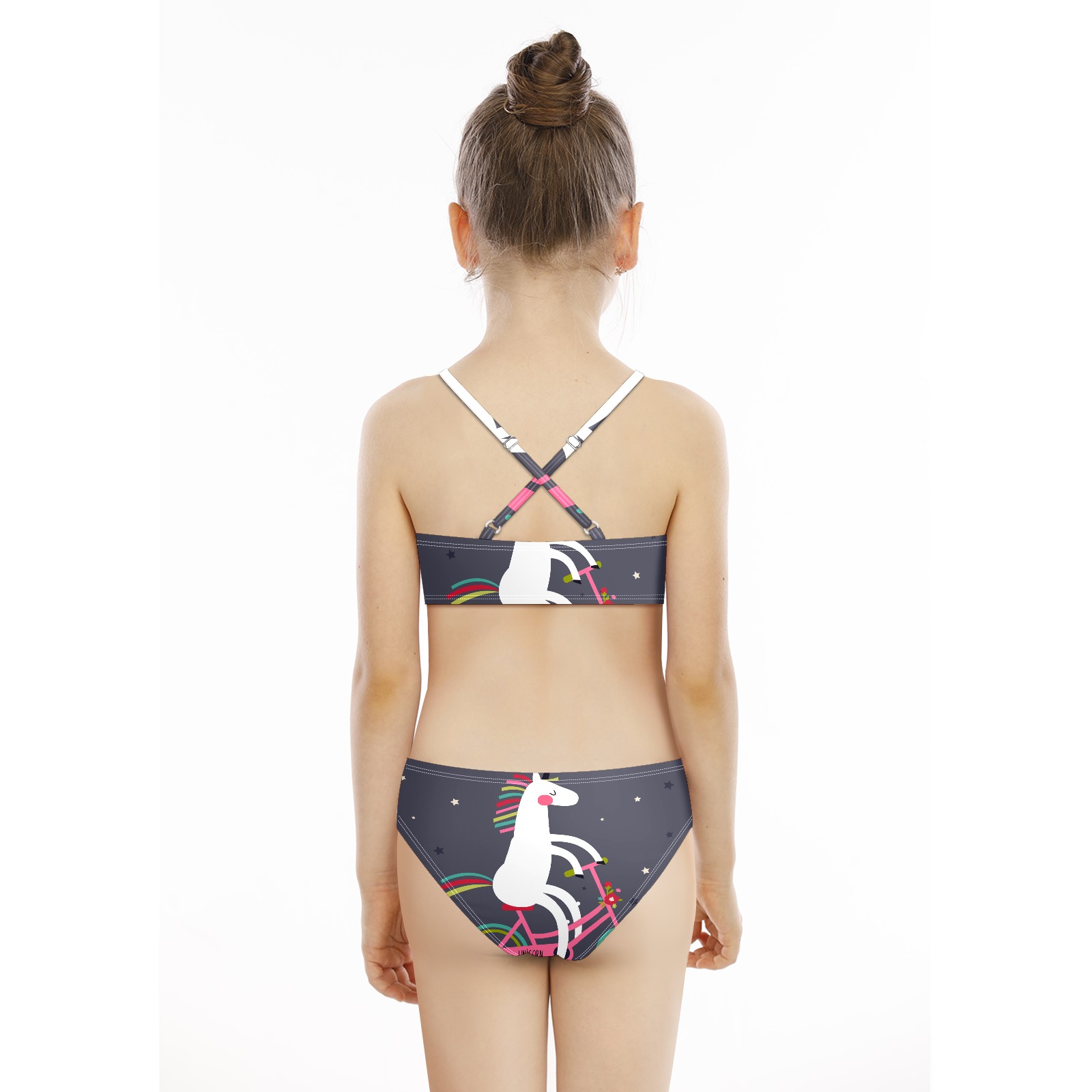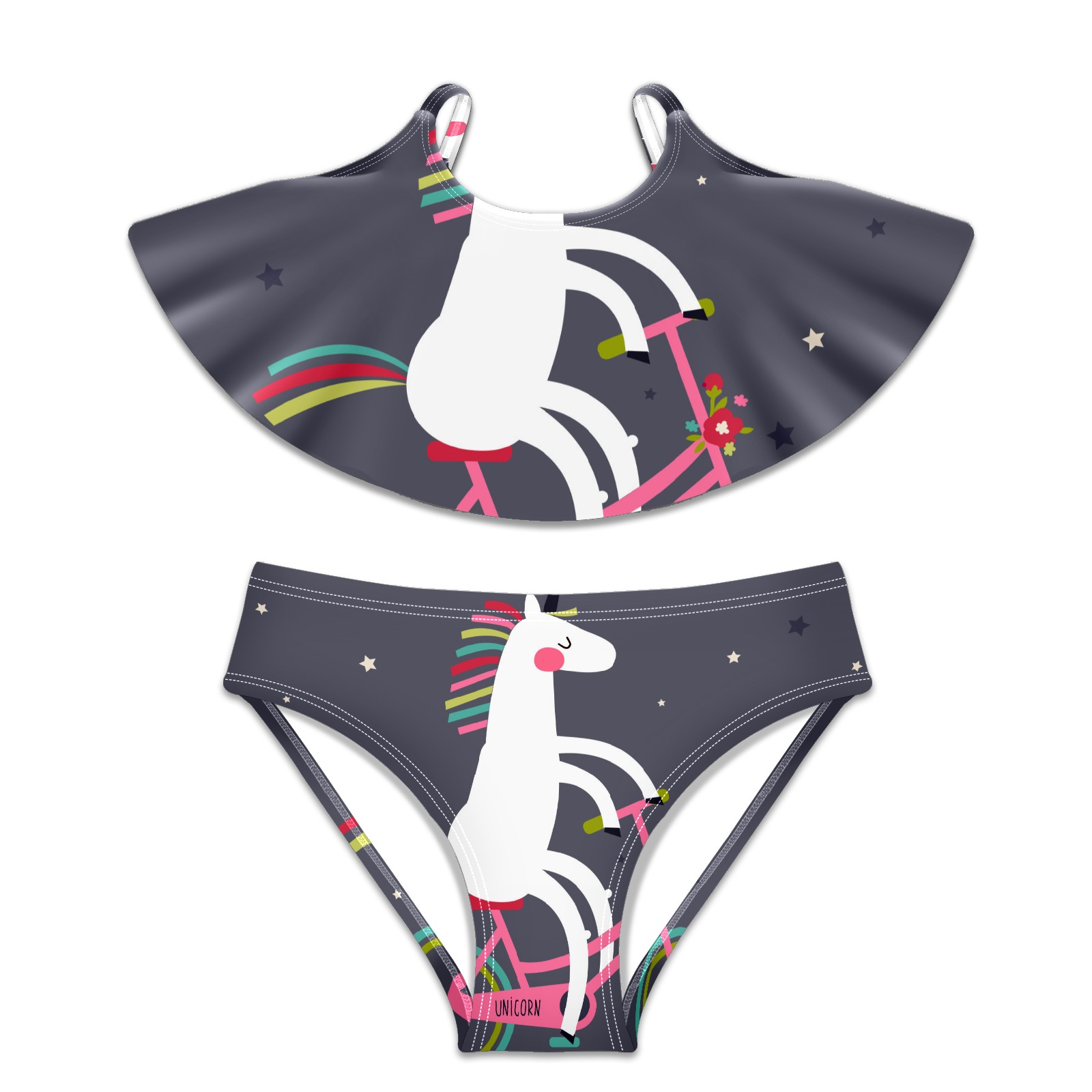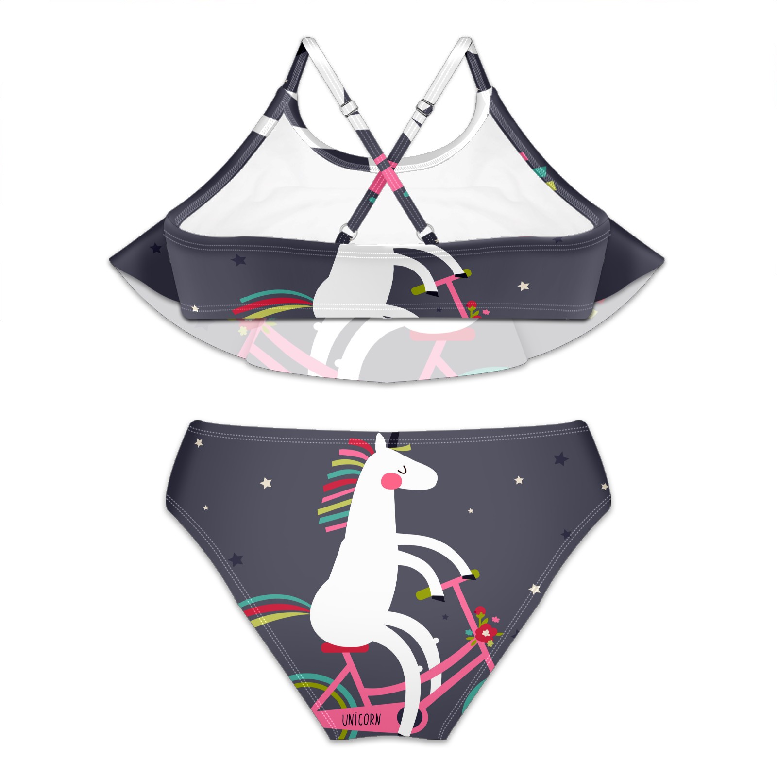Swimsuits for Girls Two Pieces Bathing Suit Quick Dry Swimwear Unicorn Ride A Bike Cute S