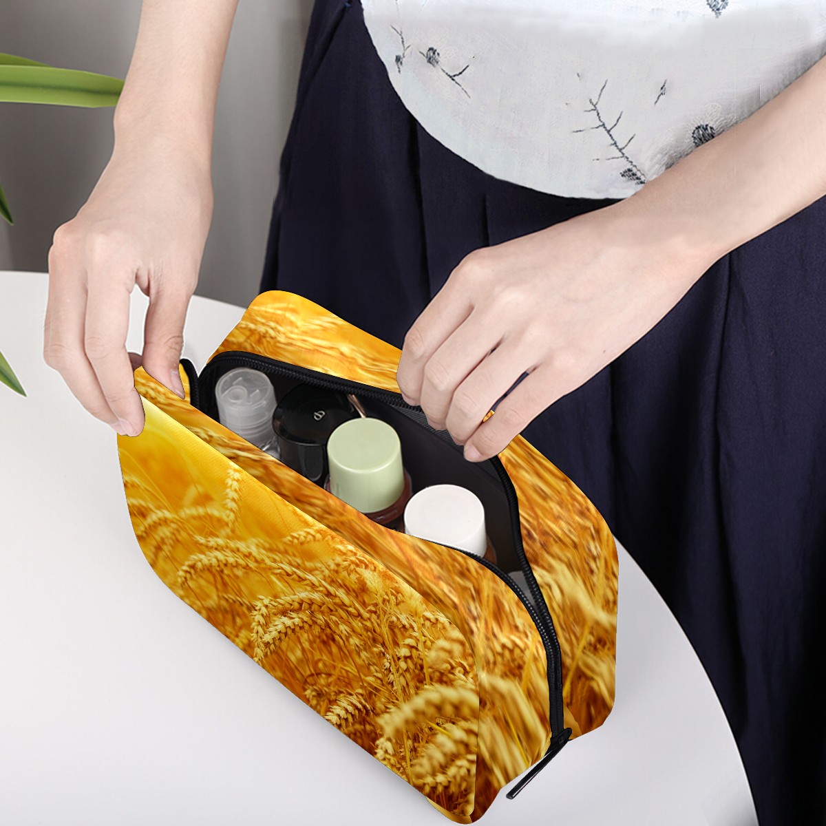 Cosmetic Bag for Women Girls Trave Makeup Bag Toiletry Case Pouch Accessories Organizer Golden Wheat Field