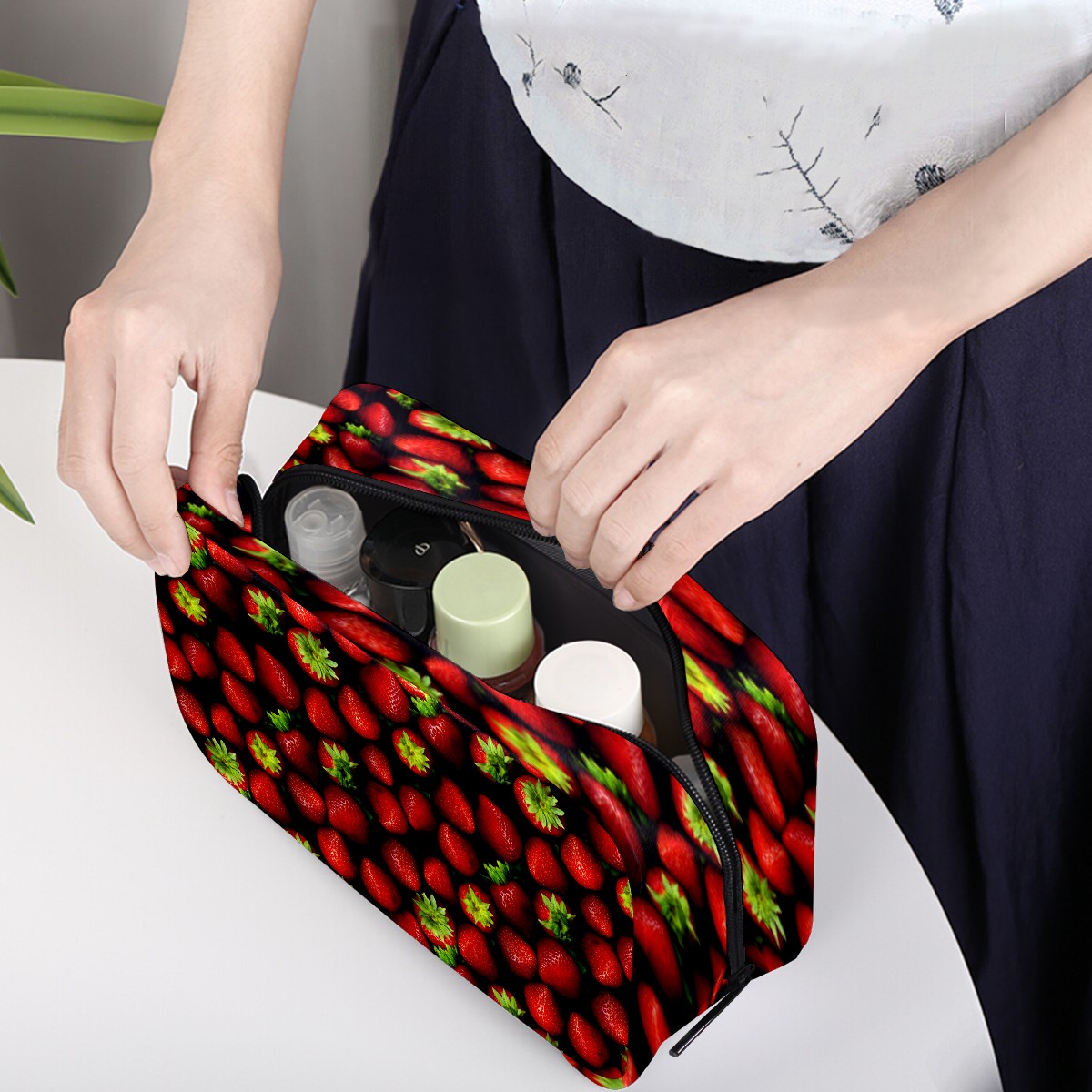 Cosmetic Bag for Women Girls Trave Makeup Bag Toiletry Case Pouch Accessories Organizer Fruits Strawberry Pattern
