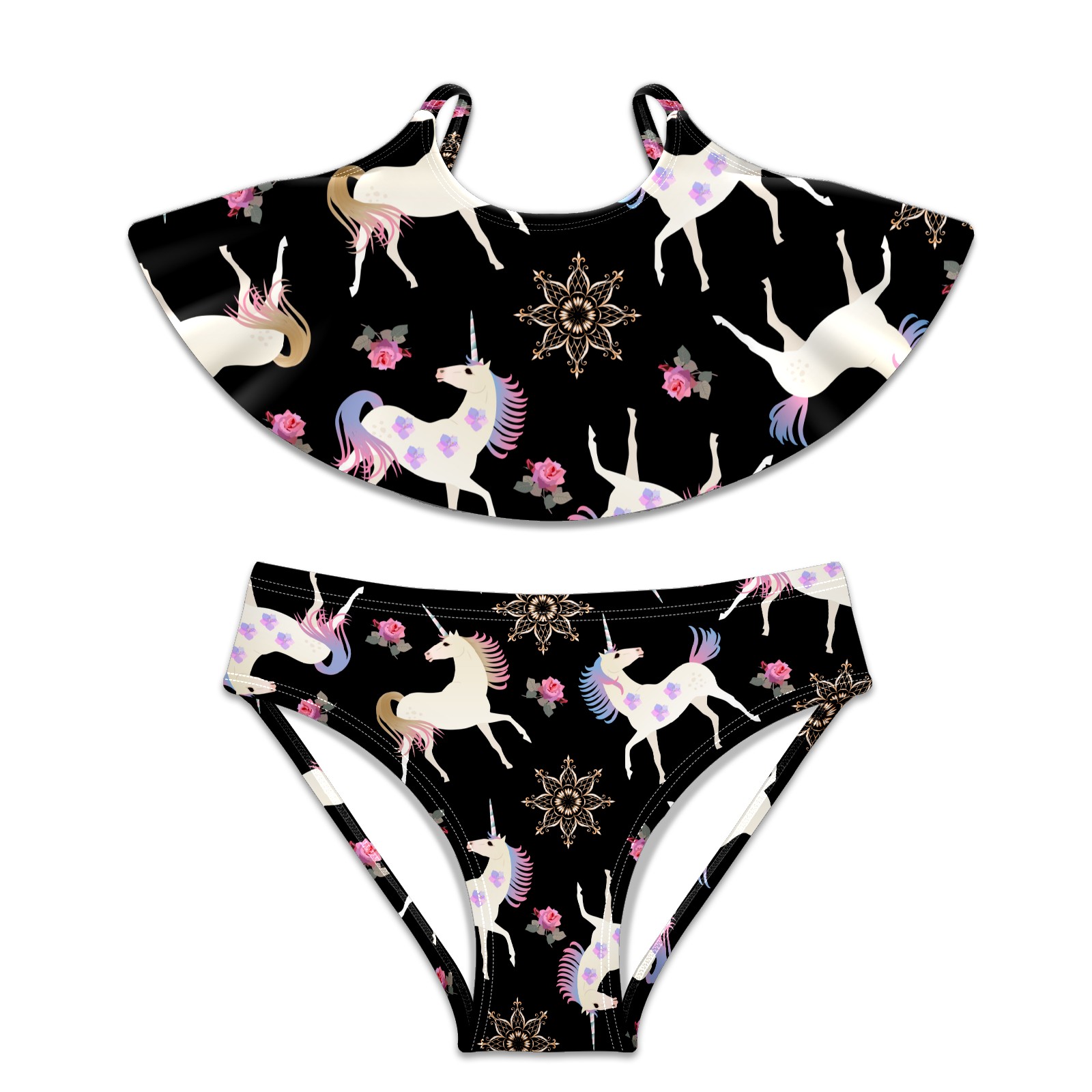 Swimsuits for Girls Two Pieces Bathing Suit Quick Dry Swimwear Unicorn Florals Pattern Cute S