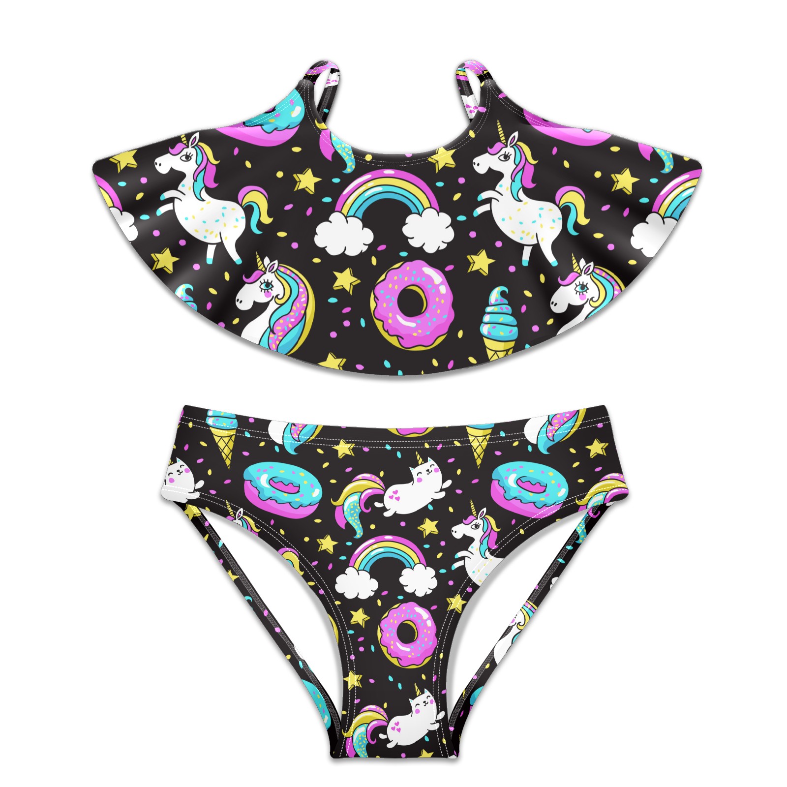 Swimsuits for Girls Two Pieces Bathing Suit Quick Dry Swimwear Unicorn Cat Stars Cute Pattern S