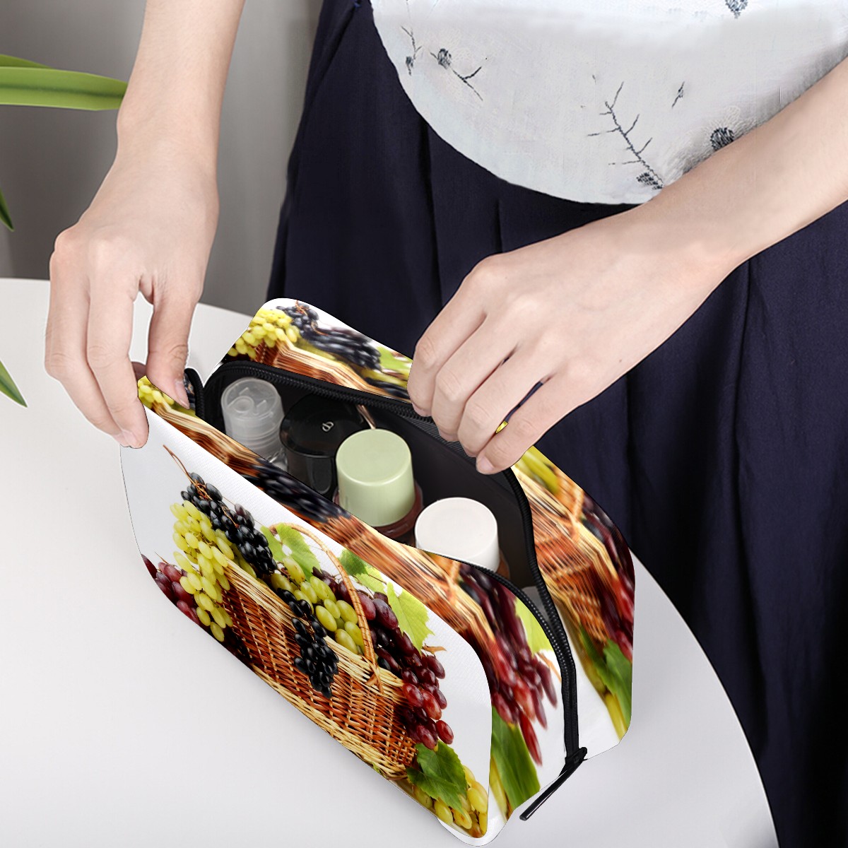 Cosmetic Bag for Women Girls Trave Makeup Bag Toiletry Case Pouch Accessories Organizer Fruits Grapes Basket
