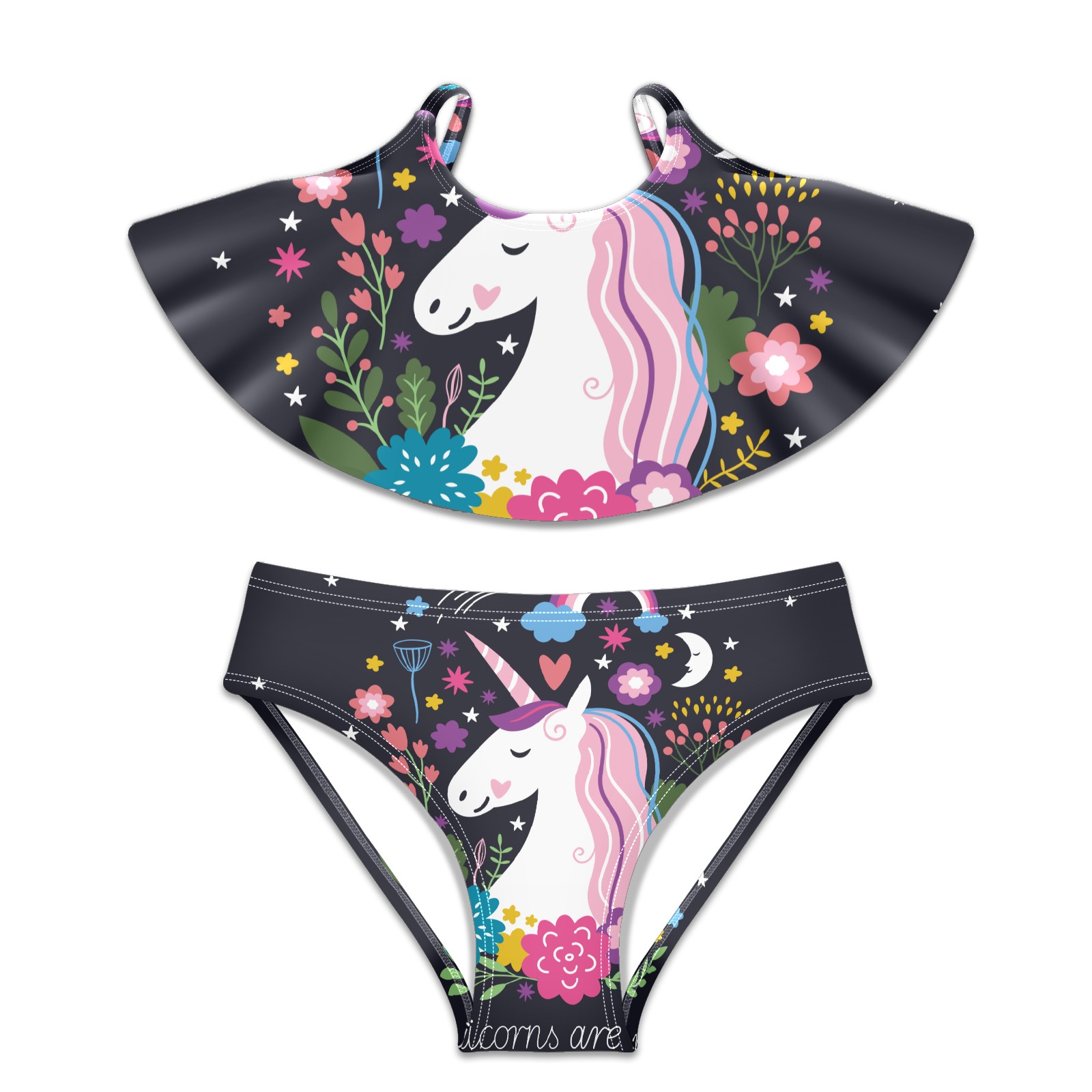 Swimsuits for Girls Two Pieces Bathing Suit Quick Dry Swimwear Unicorn Are Real With Florals S