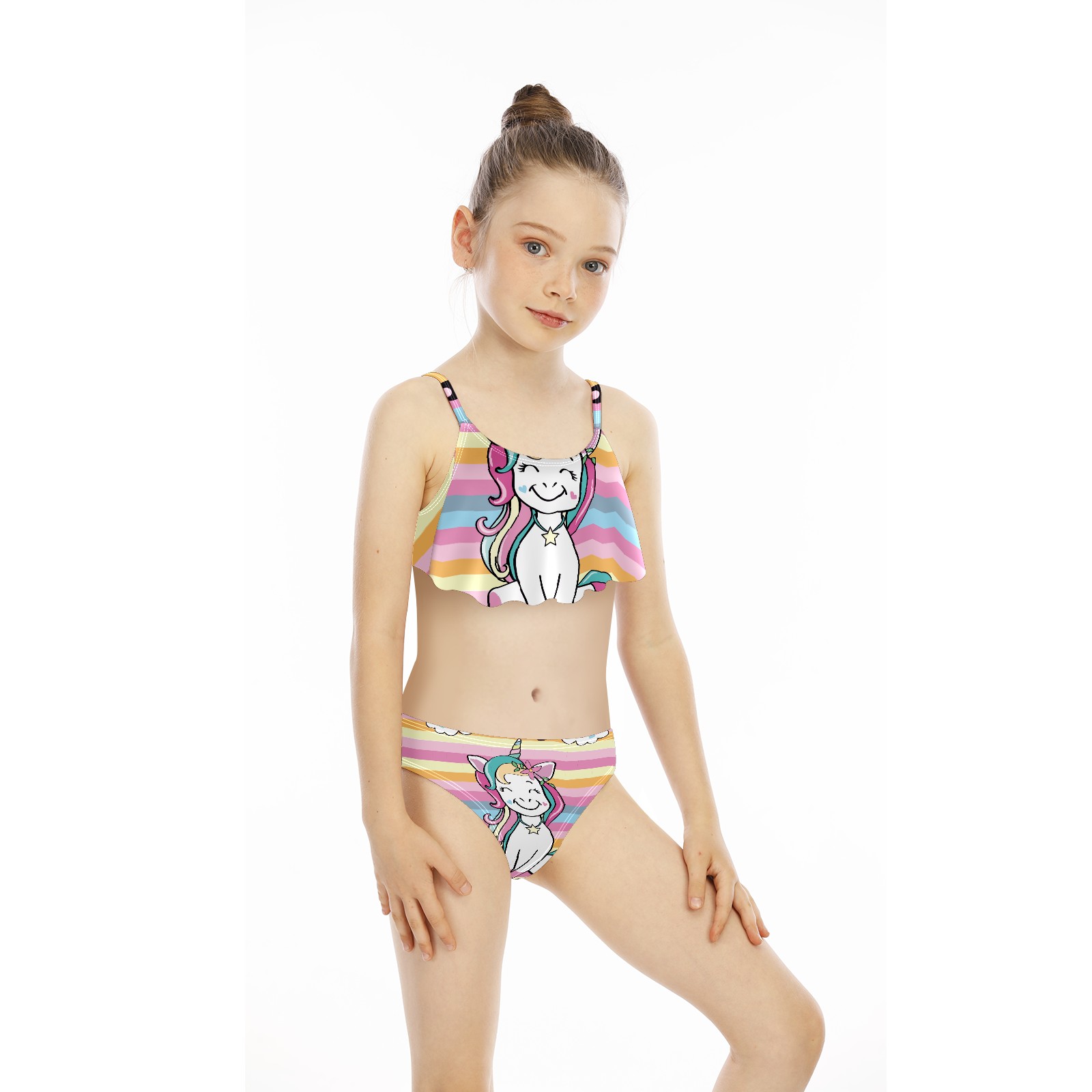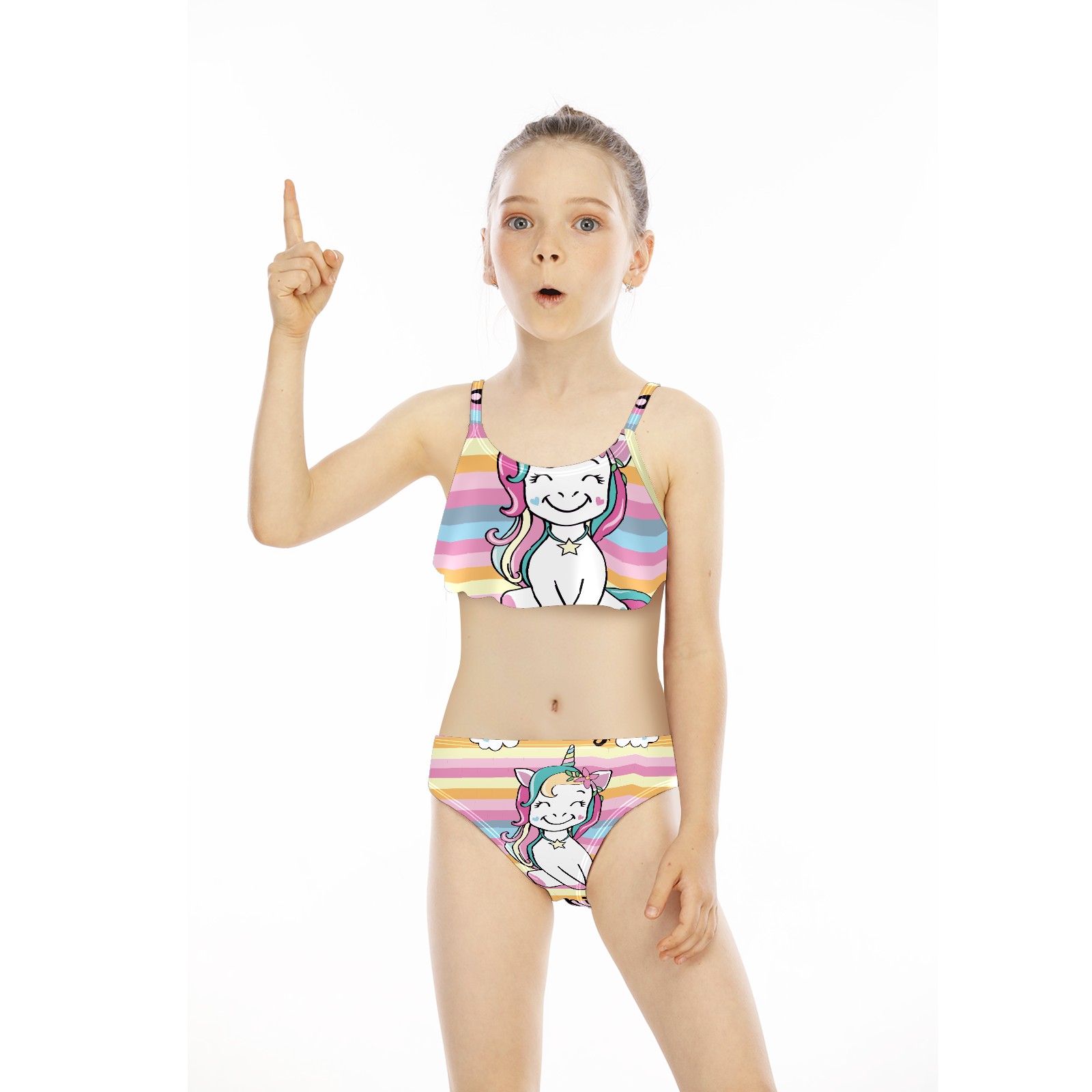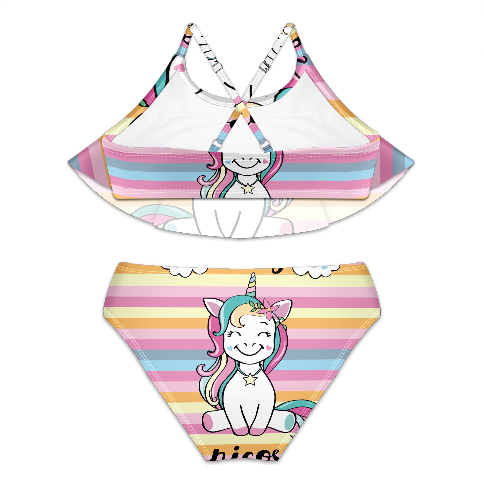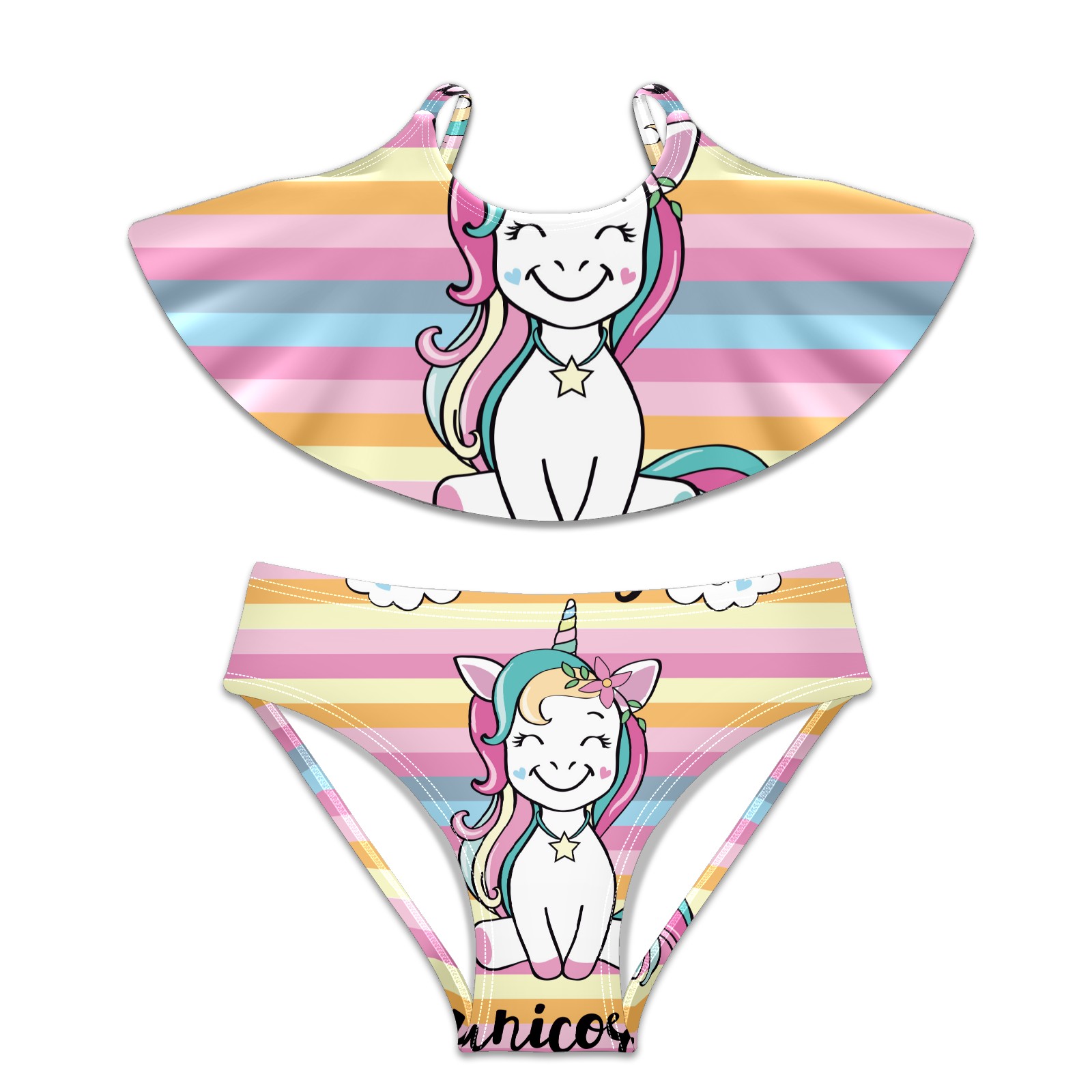 Swimsuits for Girls Two Pieces Bathing Suit Quick Dry Swimwear Stripe Cartooon Unicorn Rainbow S