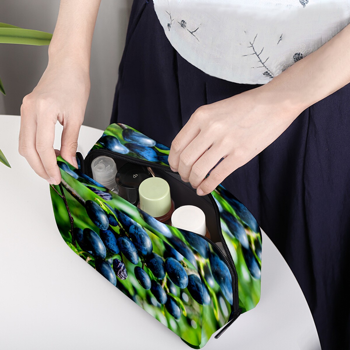 Cosmetic Bag for Women Girls Trave Makeup Bag Toiletry Case Pouch Accessories Organizer Fruit Blueberry