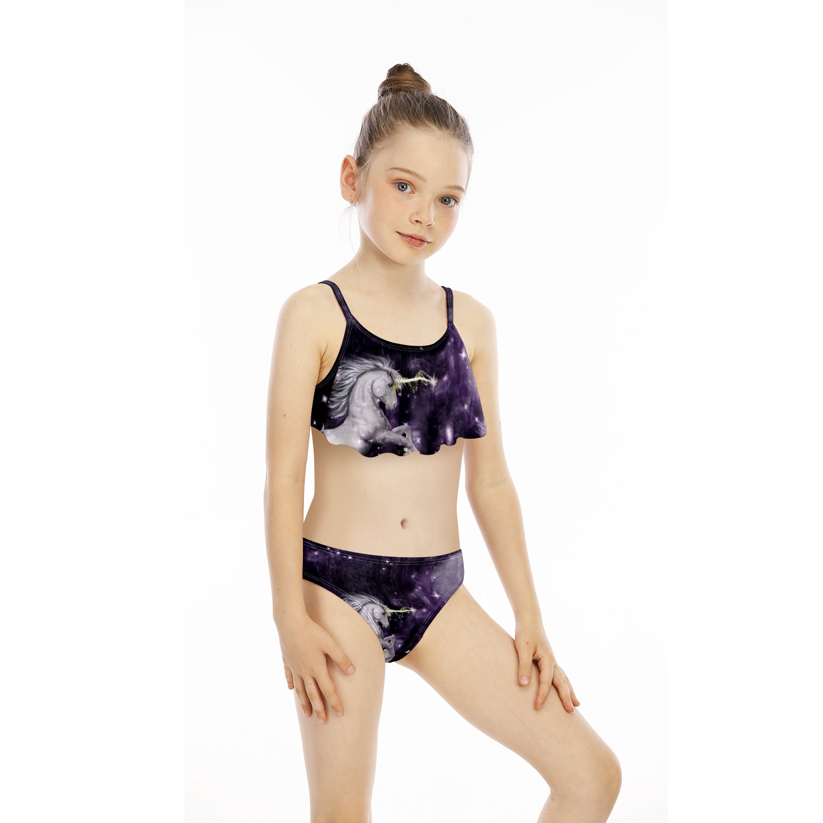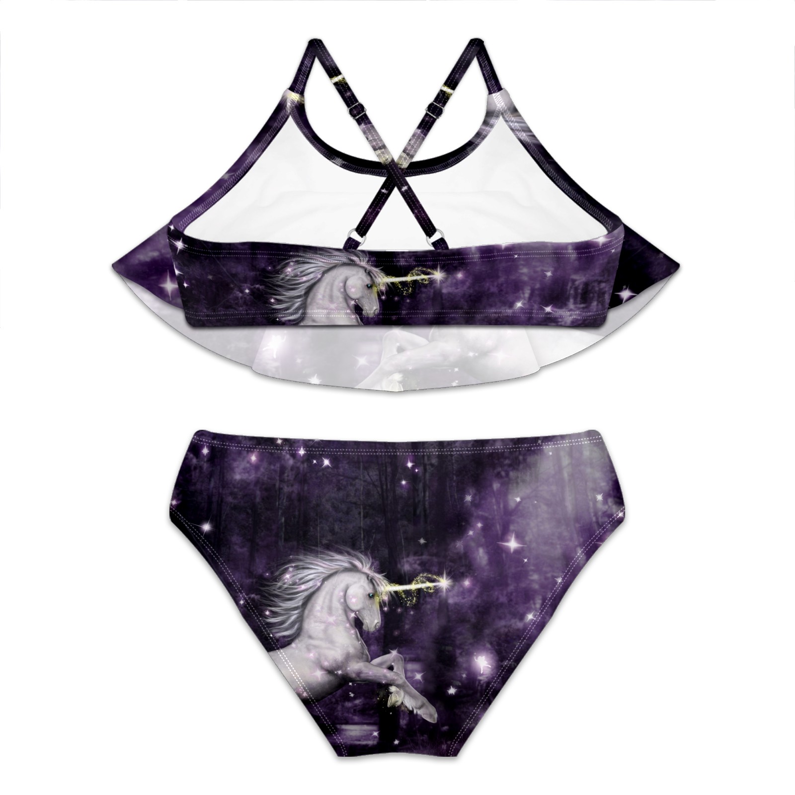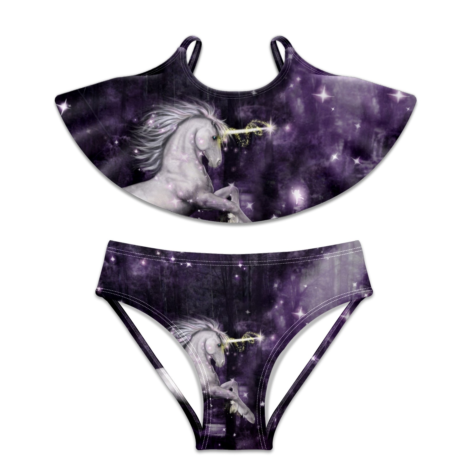 Swimsuits for Girls Two Pieces Bathing Suit Quick Dry Swimwear Magical Unicorn Forest Purple S