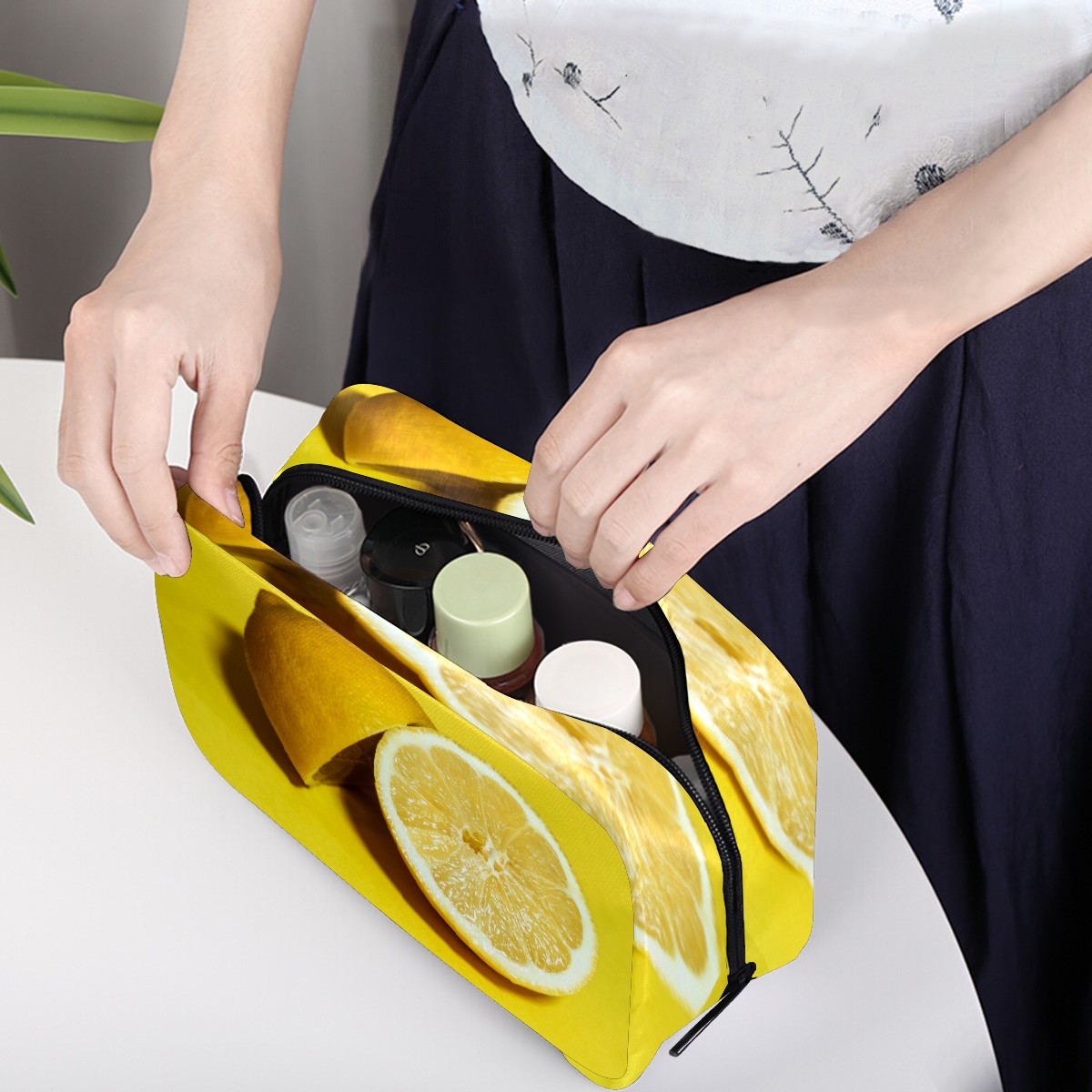 Cosmetic Bag for Women Girls Trave Makeup Bag Toiletry Case Pouch Accessories Organizer Citrus Fruit Lemon