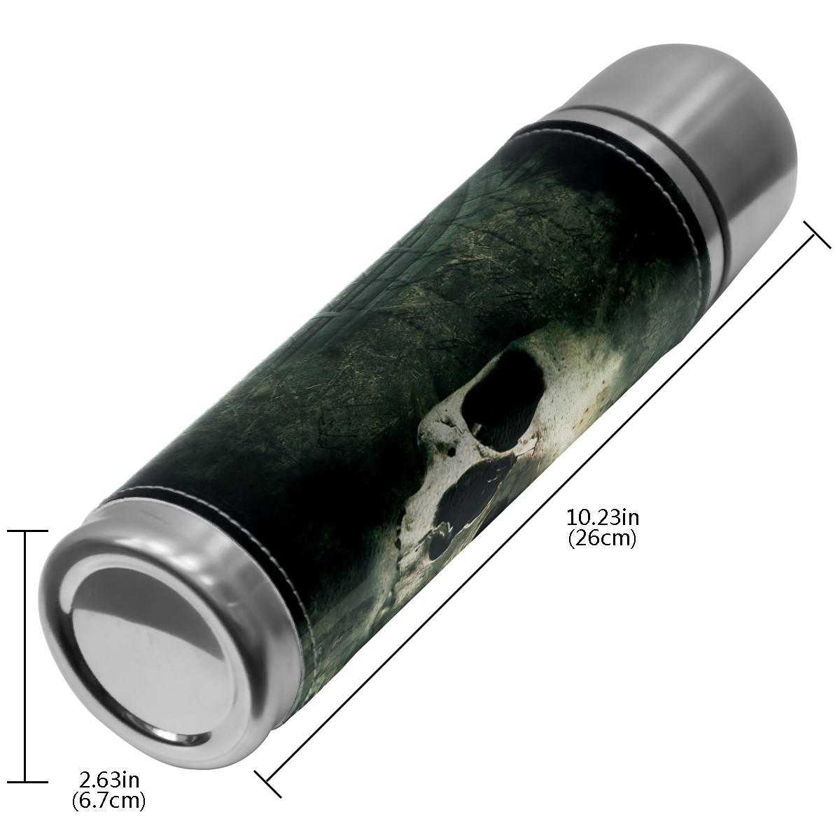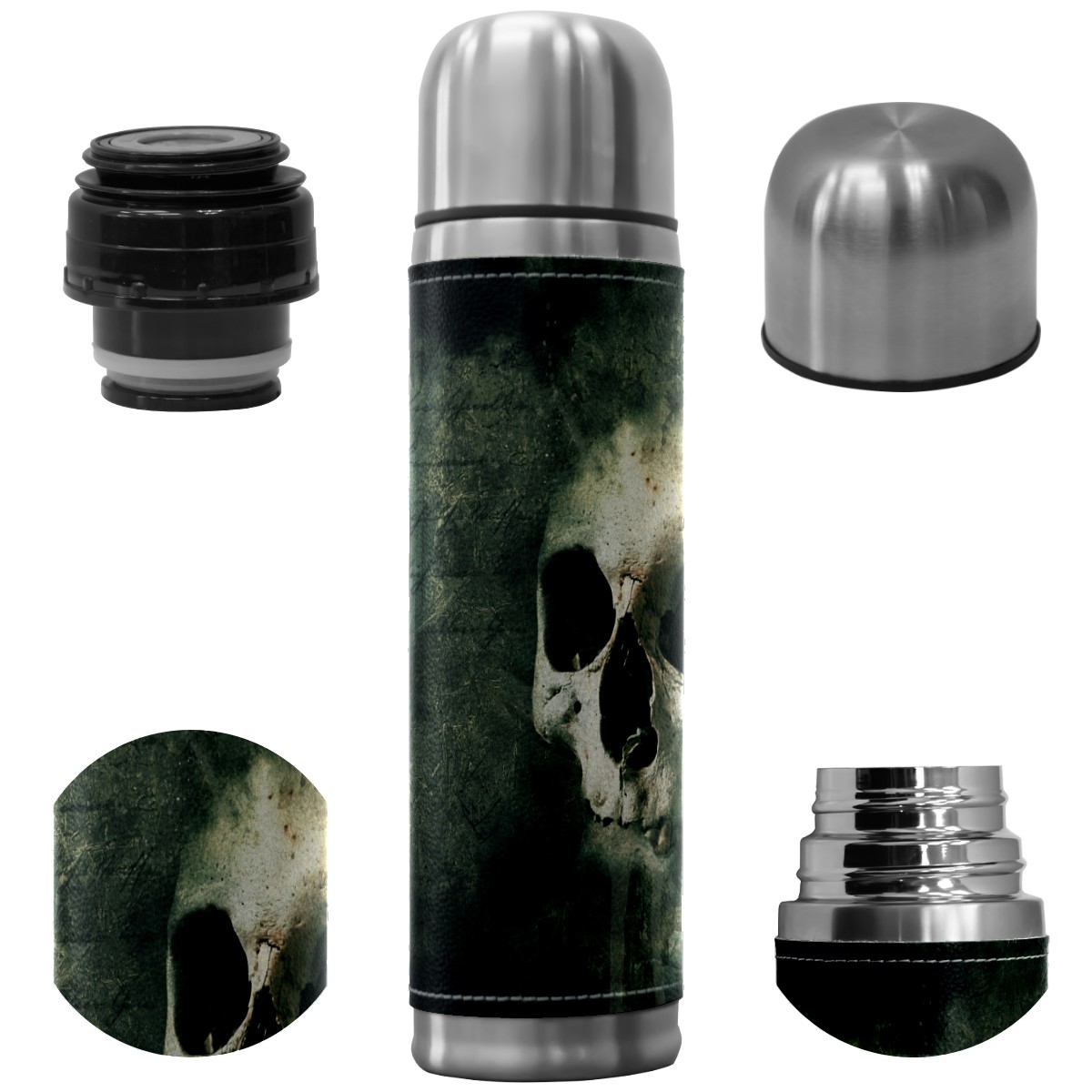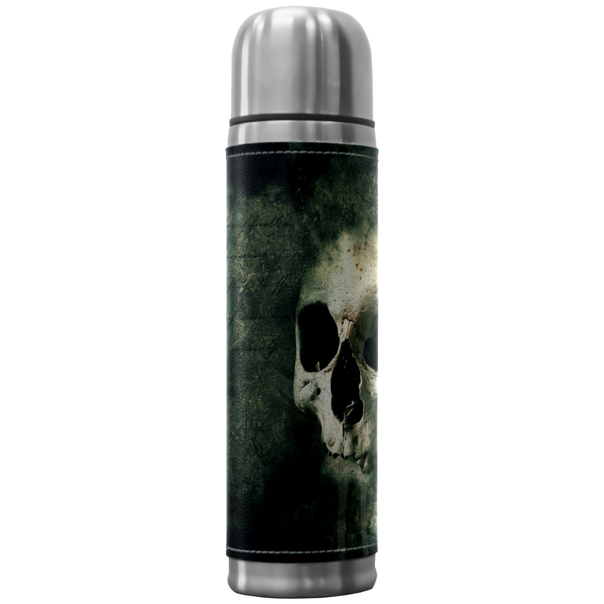 Stainless Steel Coffee Thermos Insulated Water Bottle Dark Gothic Fantasy Horror Skull Sports Coffee Travel Mug Thermos Cup Leather Wrapped Cover Double Wall Vacuum Thermos 17 OZ