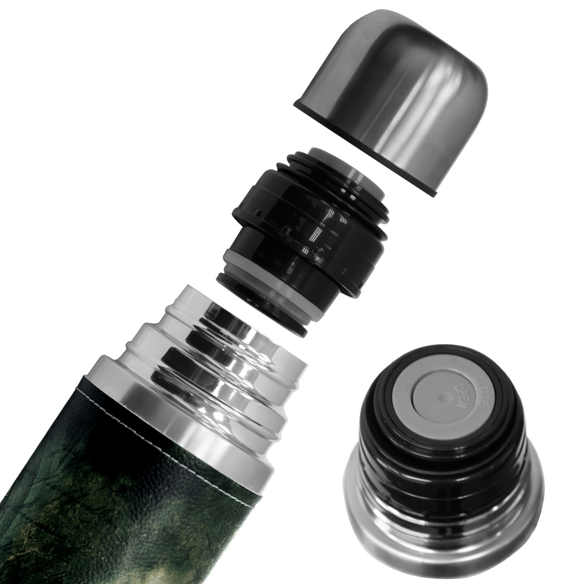 • <p><b>Specification:</b></p><p>Material: Stainless steel+food grade pp+silicone+leather cover</p><p>Design: Business,Travel Thermos cup Gift</p><p>Size(about): 10.23"h x 2.63"w diameter</p><p>Capacity:500ml/17oz</p><p>&nbsp;</p><p><b>Features:</b></p><p>The pot body adopts double-layer stainless steel structure, no tail high-vacuum brazing technology, and the inner tank inner shell increases the copper plating process to make the heat preservation effect better. The insulation life is up to 8 years.</p><p><br></p><p>Easy-to-clean nonstick coated interior.</p><p>&nbsp;</p><p>Stopper disassembles for thorough cleaning.</p><p>&nbsp;</p><p>Air vent design on the opening allows for beverages to flow out smoothly.</p><p>&nbsp;</p><p>Compact design takes minimal space while maximizing Capacity.</p><p>&nbsp;</p><p>For convenience: Your insulated water bottle will keep your drinks cool or hot. Easy fit for cup holders, bike Racks, back packs. 17oz/500 ML means longer time between fills.</p>